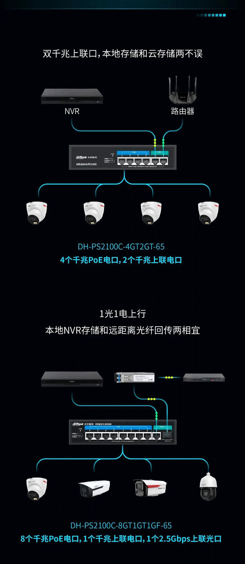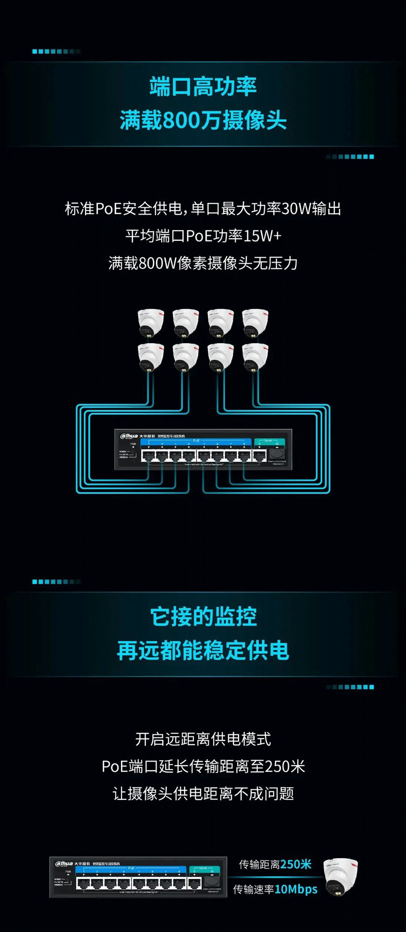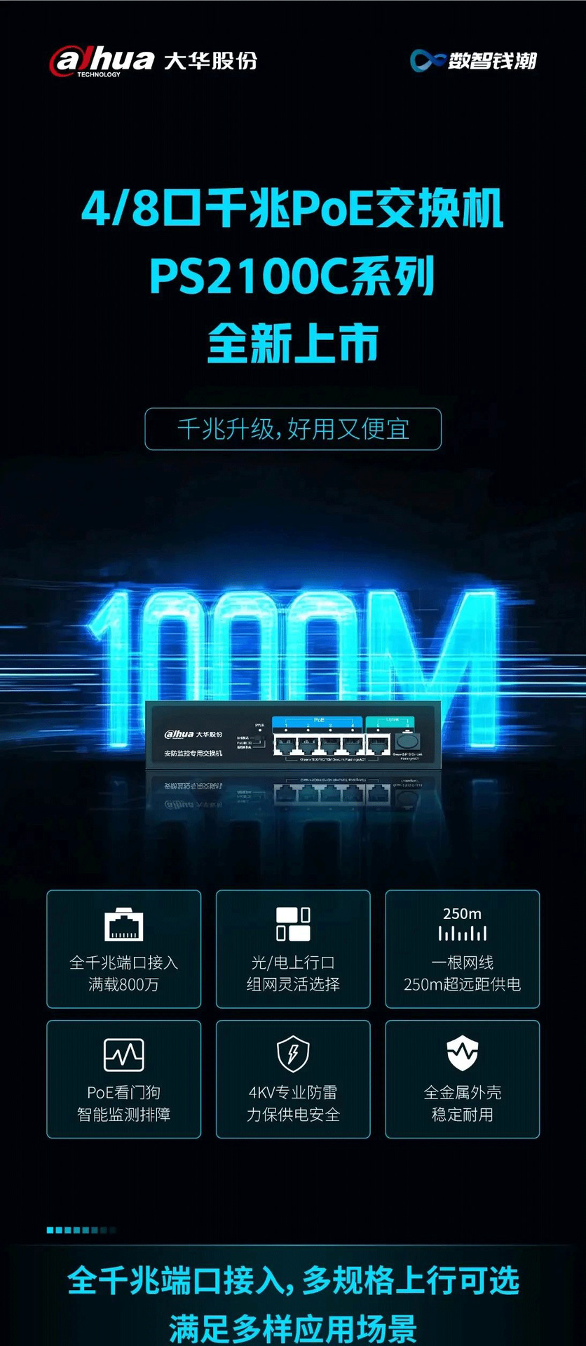 大华千兆POE网络监控交换机远距离800万摄像机看门狗DH-PS2100C