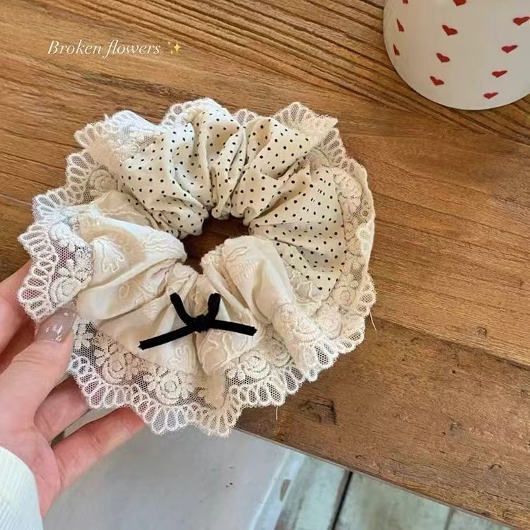 赵露思同款大号蕾丝发圈双层花边绝美法式浪漫镂空大肠圈发饰