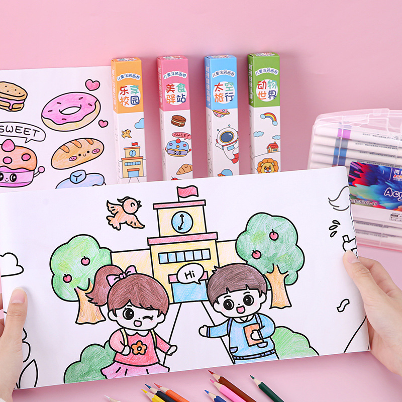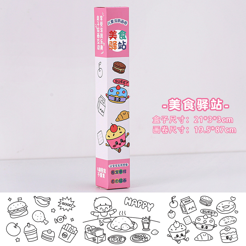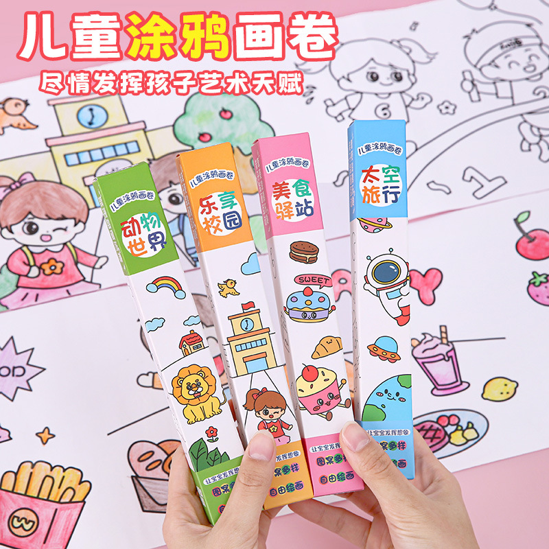 儿童DIY涂鸦画卷 幼儿园益智奖励小礼品卡通手工填色画布长画卷