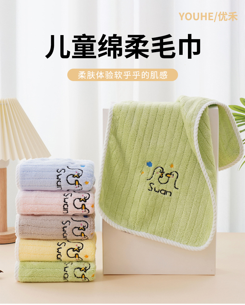 儿童毛巾珊瑚绒柔软不掉毛洗脸巾卡通小天鹅可爱刺绣幼儿园擦手巾