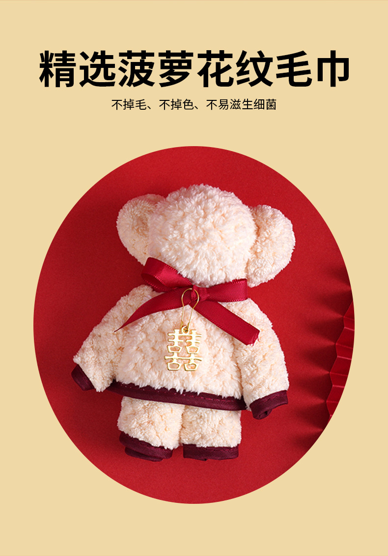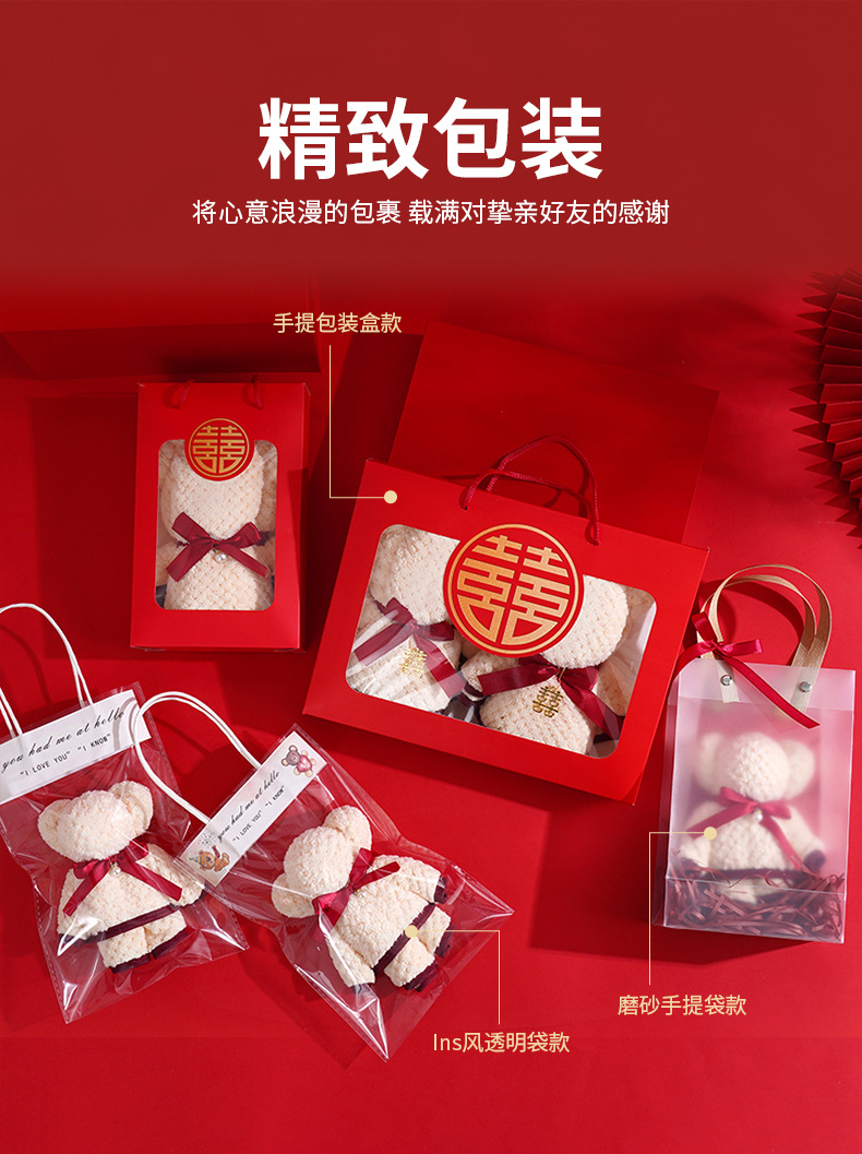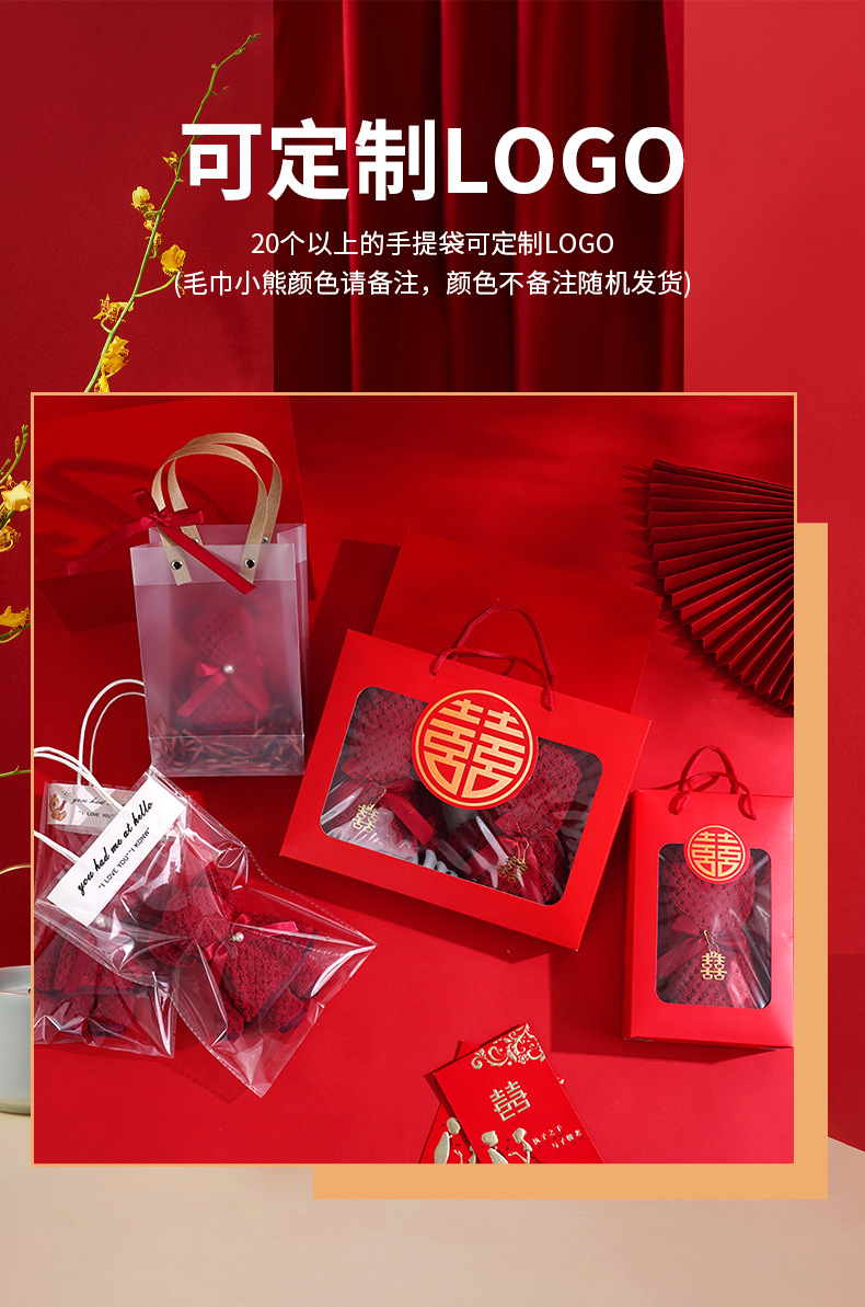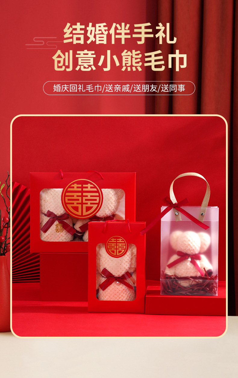 珊瑚绒婚礼毛巾伴手礼小熊结婚礼盒陪嫁喜帕喜庆批发礼物套装毛巾
