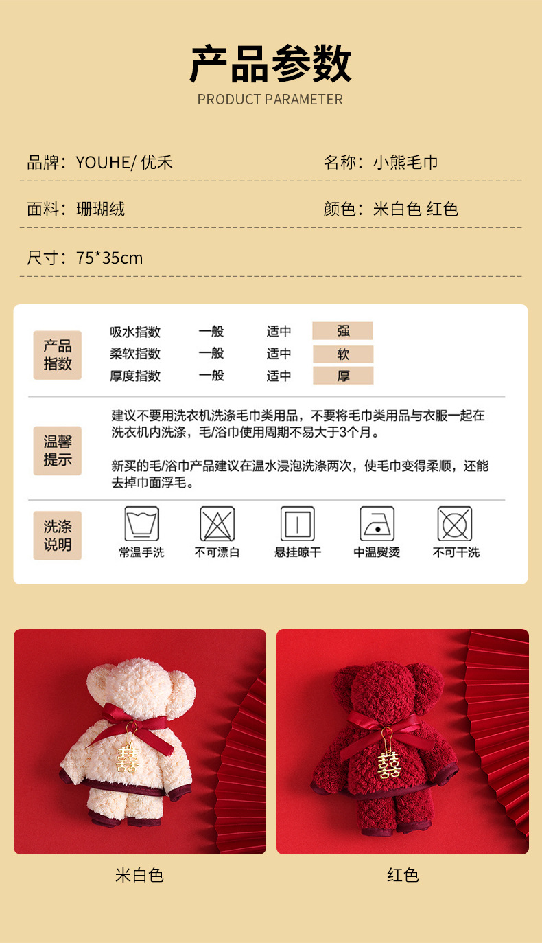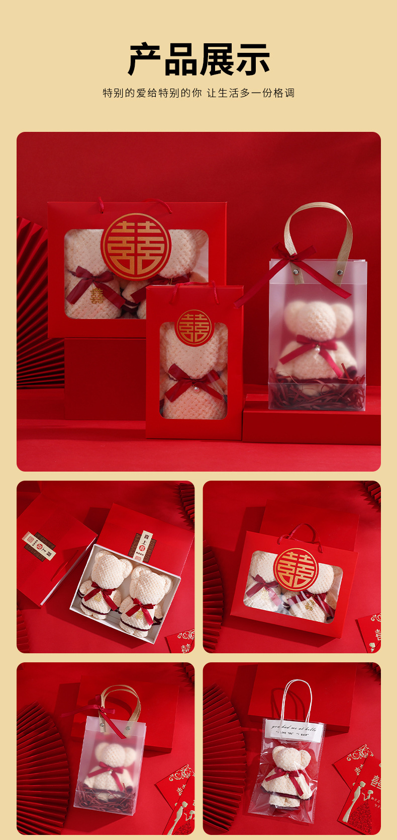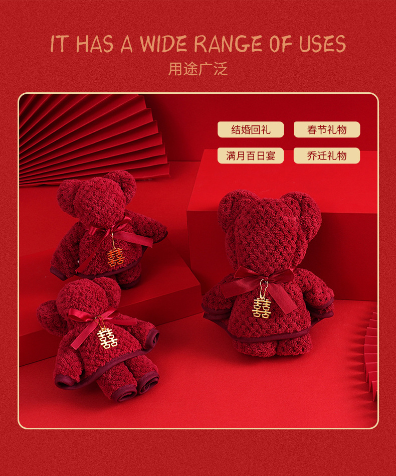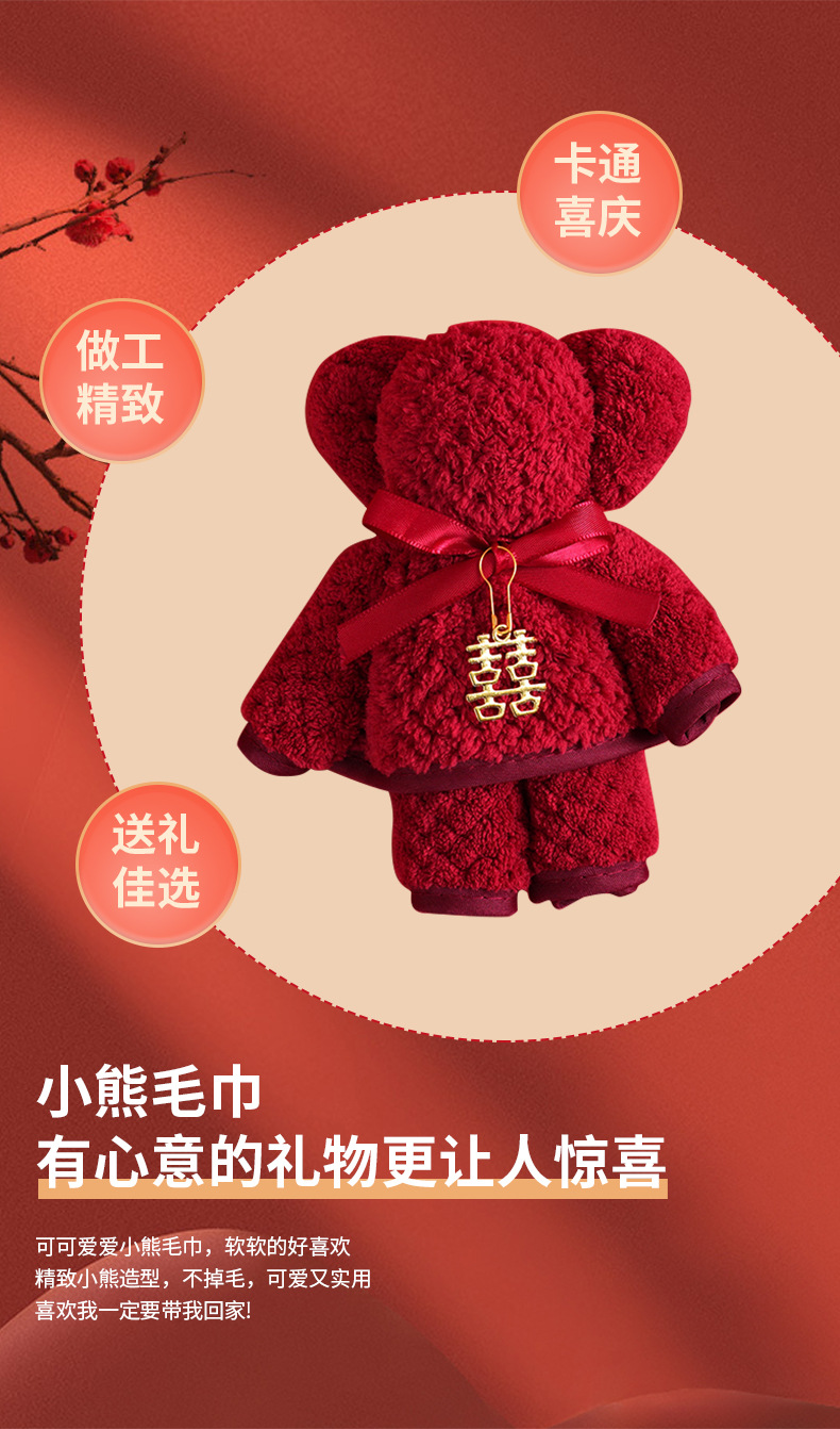 珊瑚绒婚礼毛巾伴手礼小熊结婚礼盒陪嫁喜帕喜庆批发礼物套装毛巾