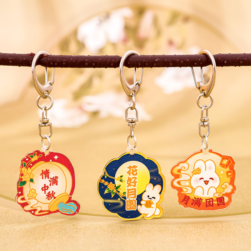中秋节钥匙扣 卡通桂香中秋钥匙圈挂饰可爱亚克力包包挂件小礼品