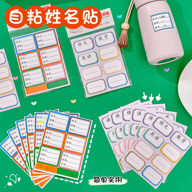 简约手写防水姓名贴 小学生自粘彩色便签贴标签不干胶分类指示贴
