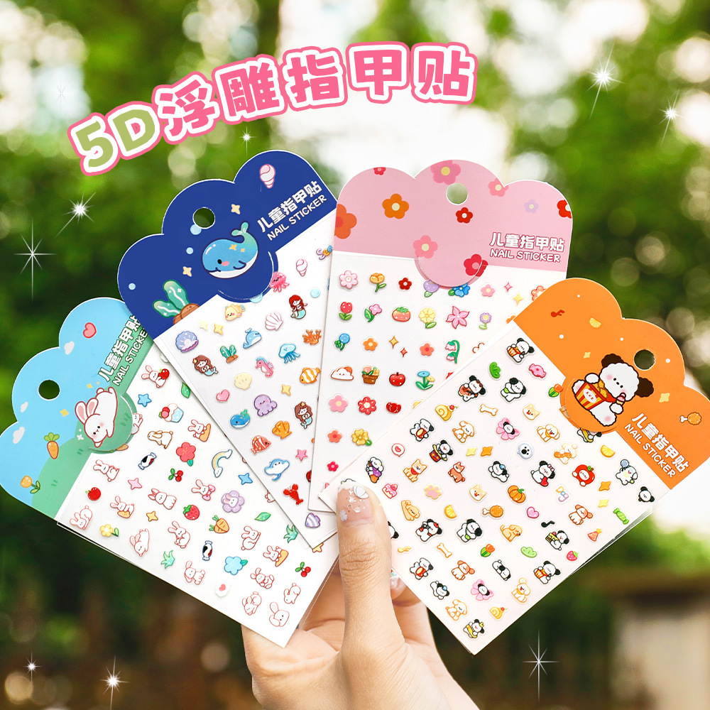 儿童卡通5D浮雕指甲贴 儿童节立体贴纸小礼品ins可爱女孩美甲贴