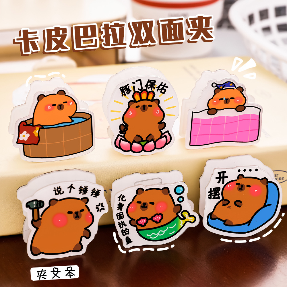 卡皮巴拉双面便签夹 ins可爱水豚手账pp夹子学生卡通试卷收纳夹