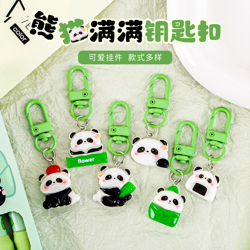 可爱熊猫树脂钥匙扣 小学生卡通背包DIY配饰钥匙链公仔挂件小礼品
