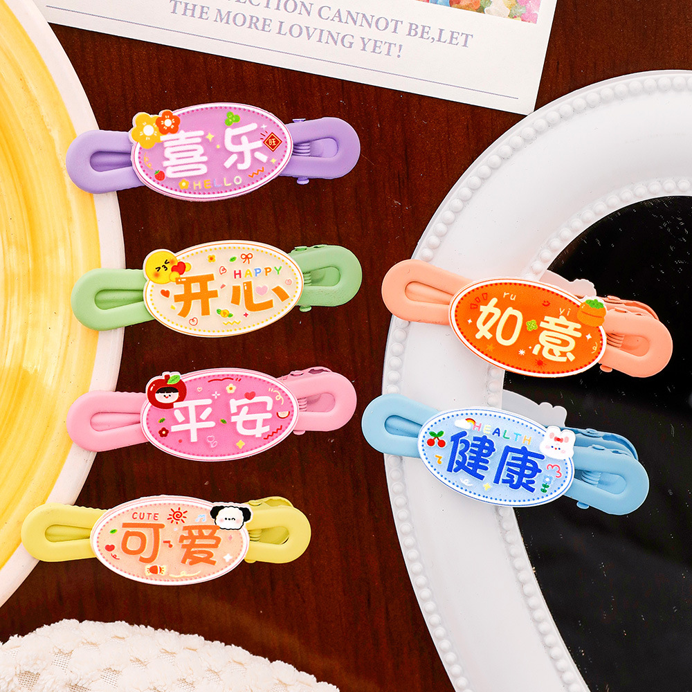 ins可爱文字发夹 儿童卡通甜美鸭嘴夹发饰小清新碎发侧边夹发卡