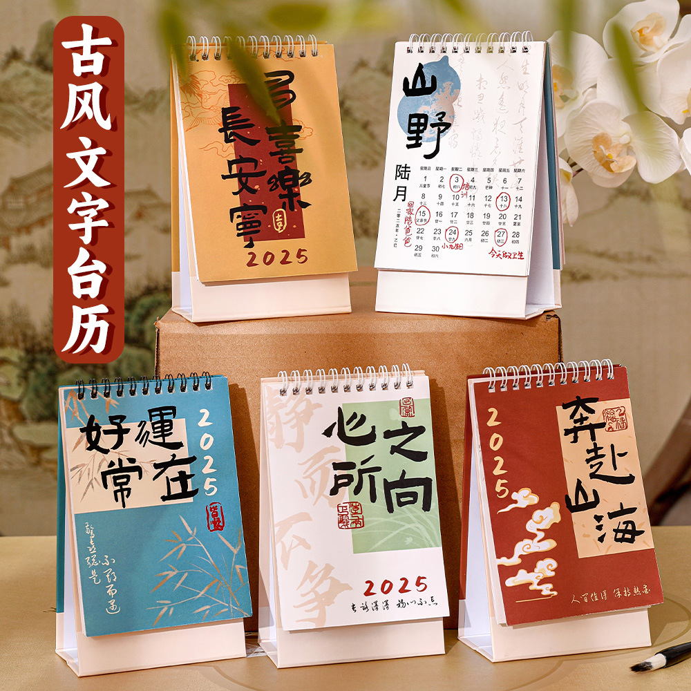 2025年古风台历 创意打卡计划桌面摆件年历复古书法文字加厚日历