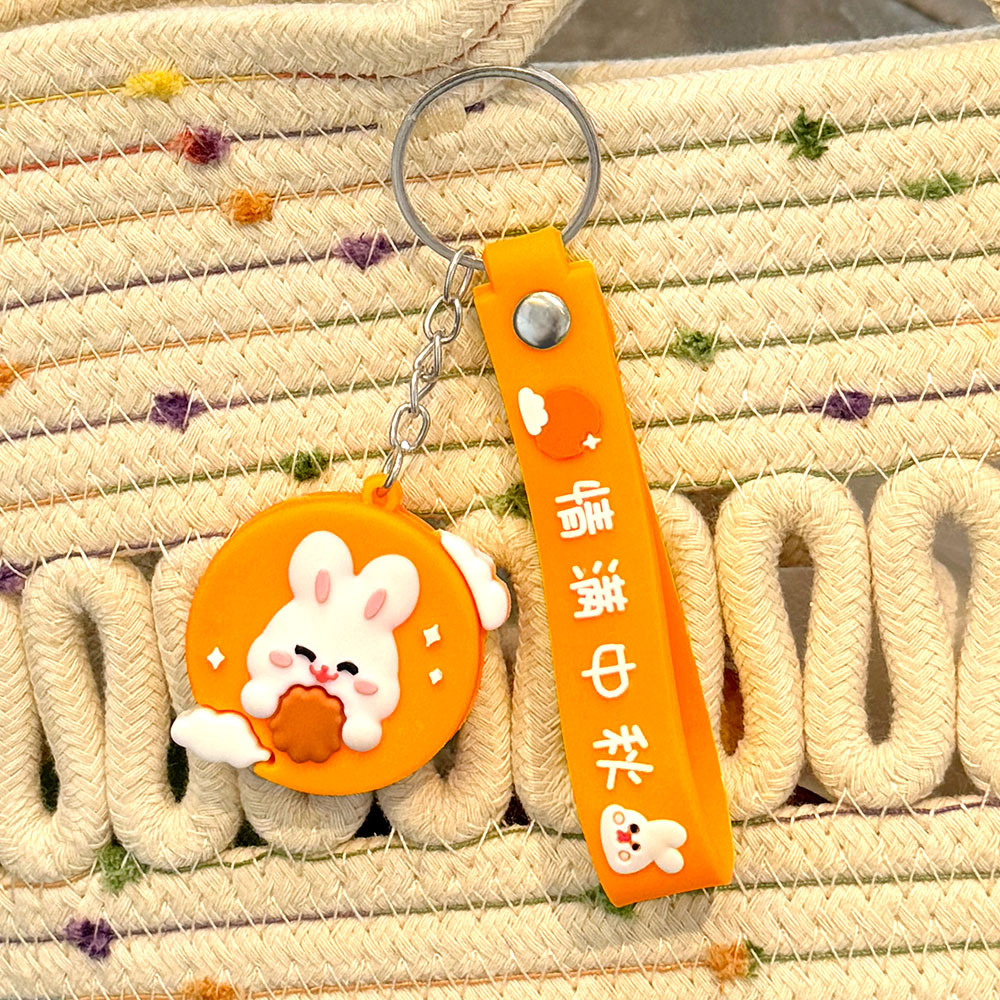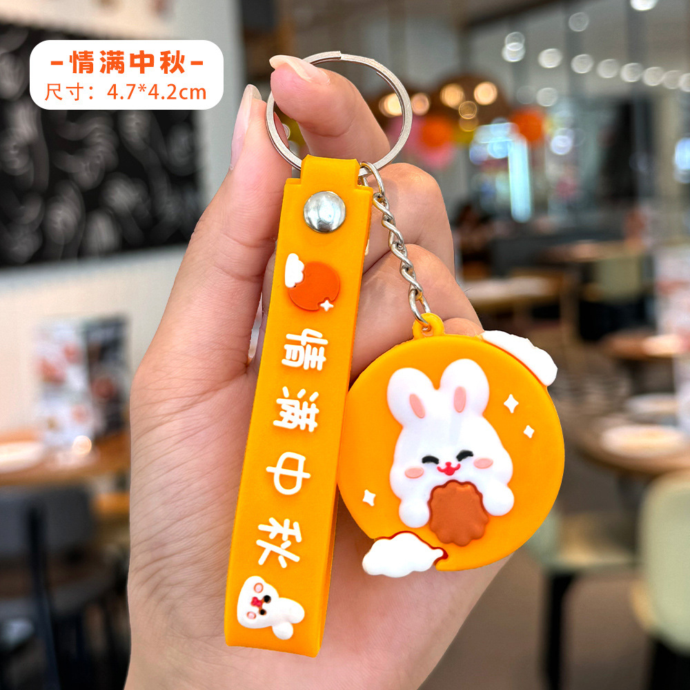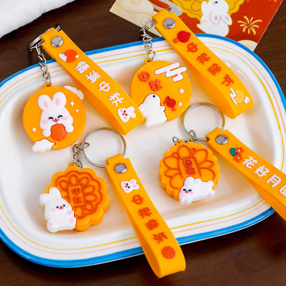 中秋节玉兔钥匙扣 小兔子硅胶钥匙圈DIY挂件中秋钥匙链奖励小礼品