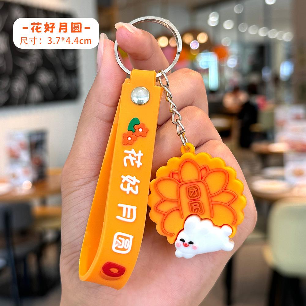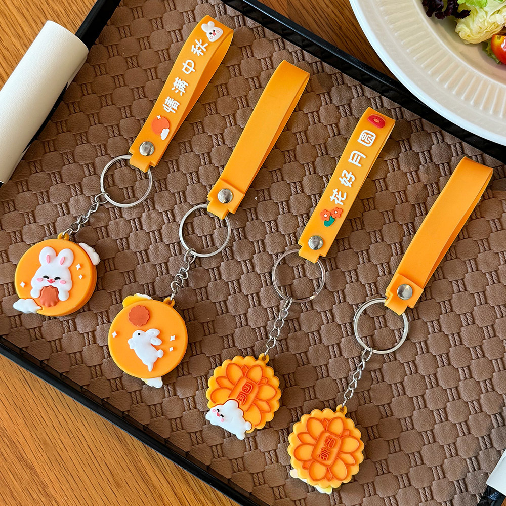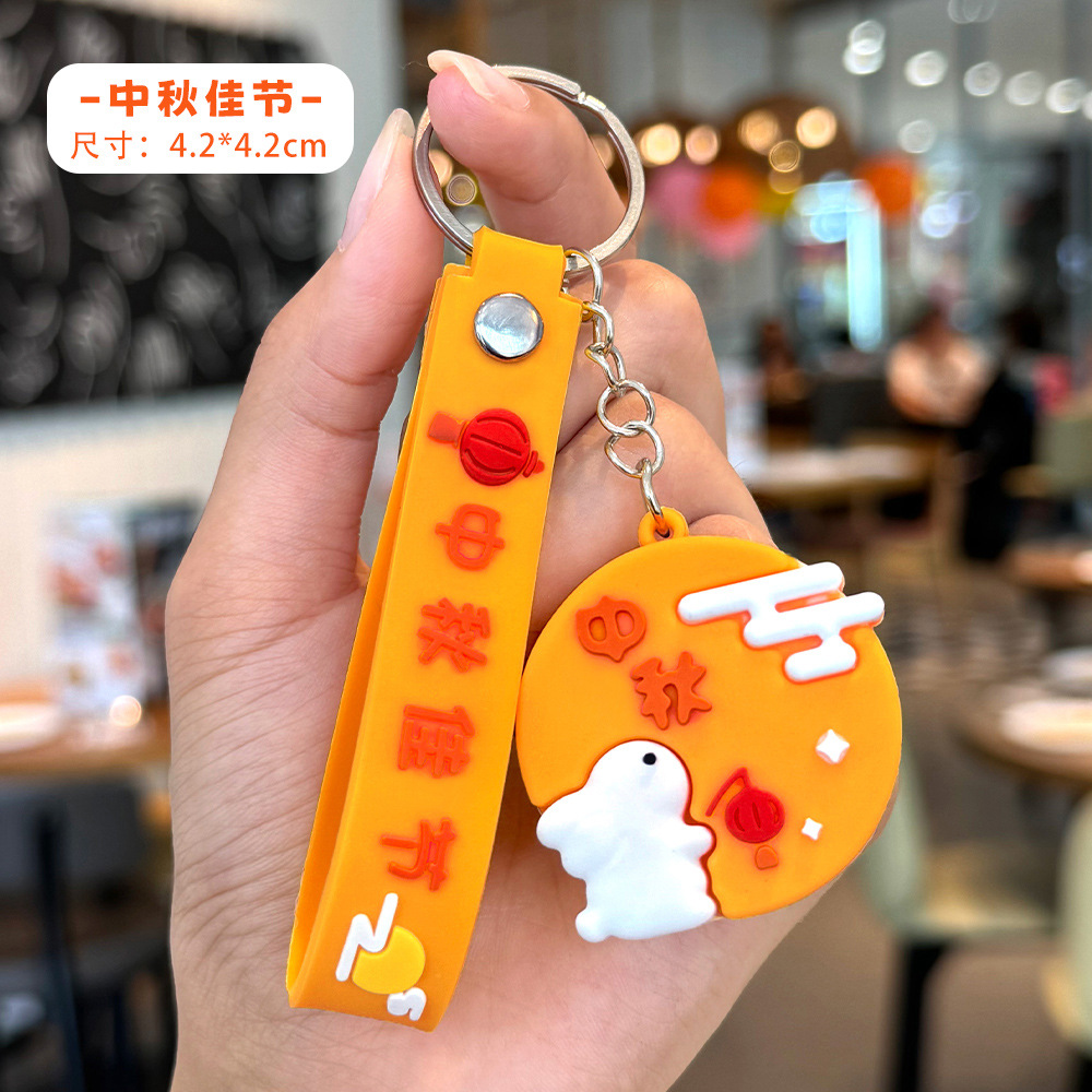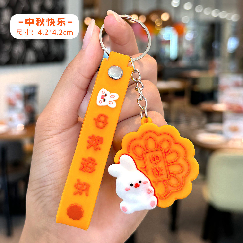 中秋节玉兔钥匙扣 小兔子硅胶钥匙圈DIY挂件中秋钥匙链奖励小礼品