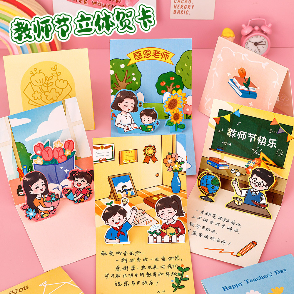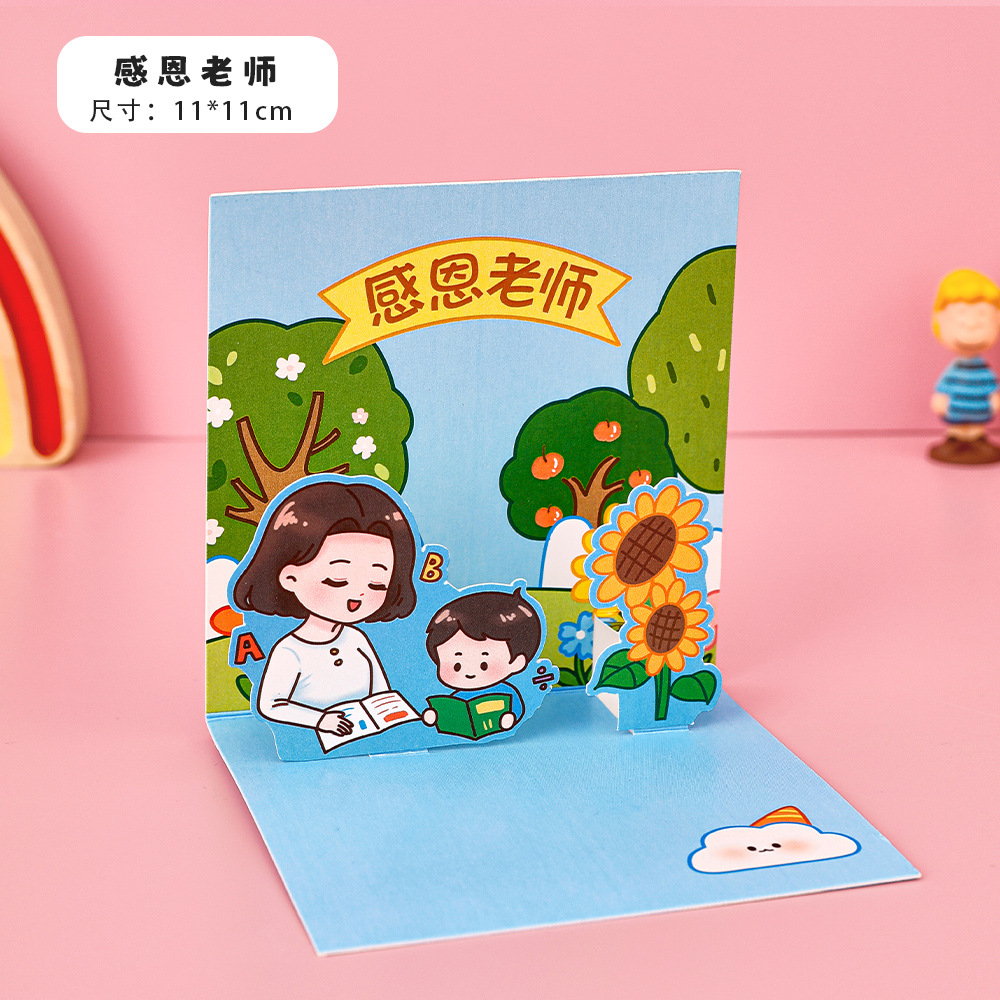 教师节立体DIY贺卡 开学季卡通花束卡片高颜值感恩祝福教师小卡片
