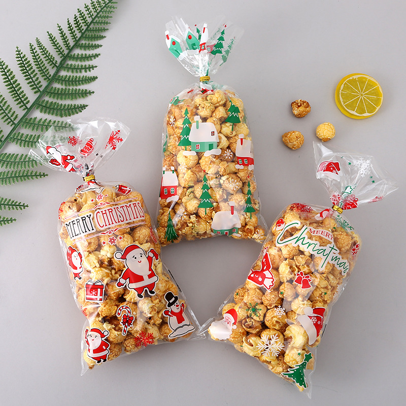 2023新款跨境圣诞节糖果袋opp袋烘培食品饼干生日束口扎绳礼品袋