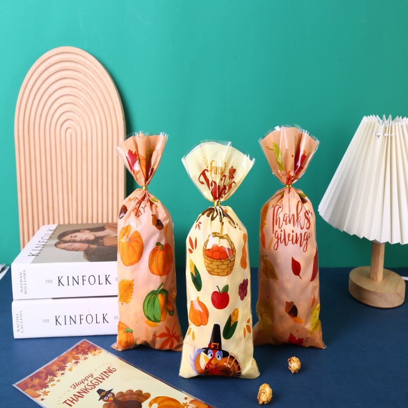 2023跨境感恩节糖果袋节日派对礼品袋透明opp平口袋喜糖袋批发