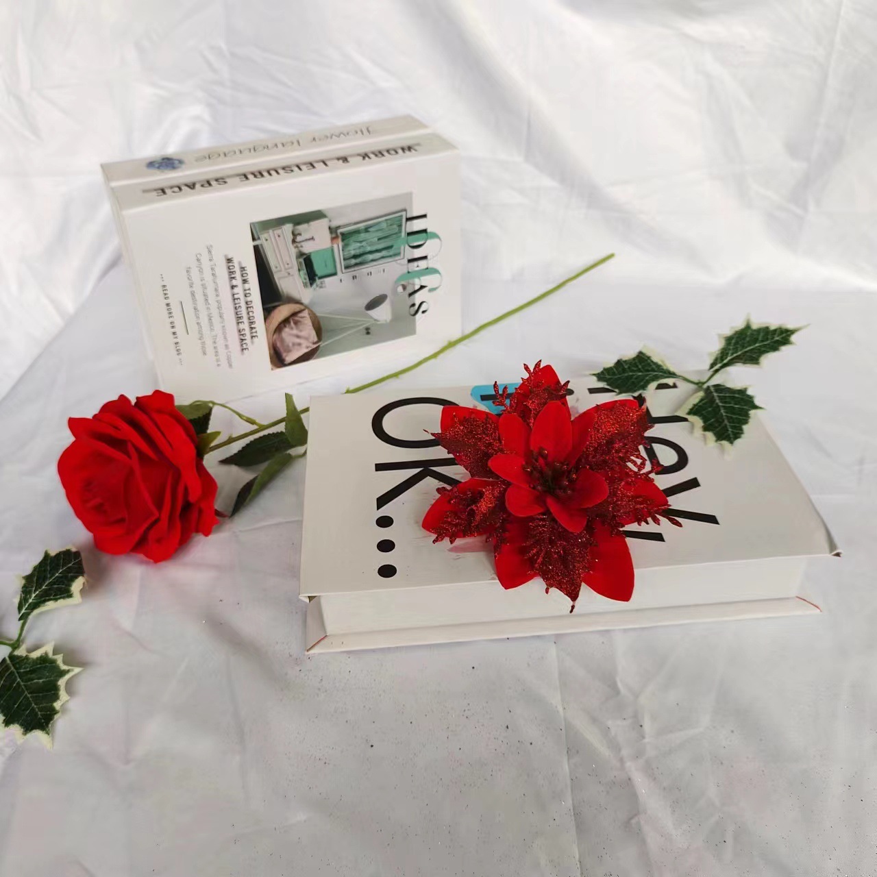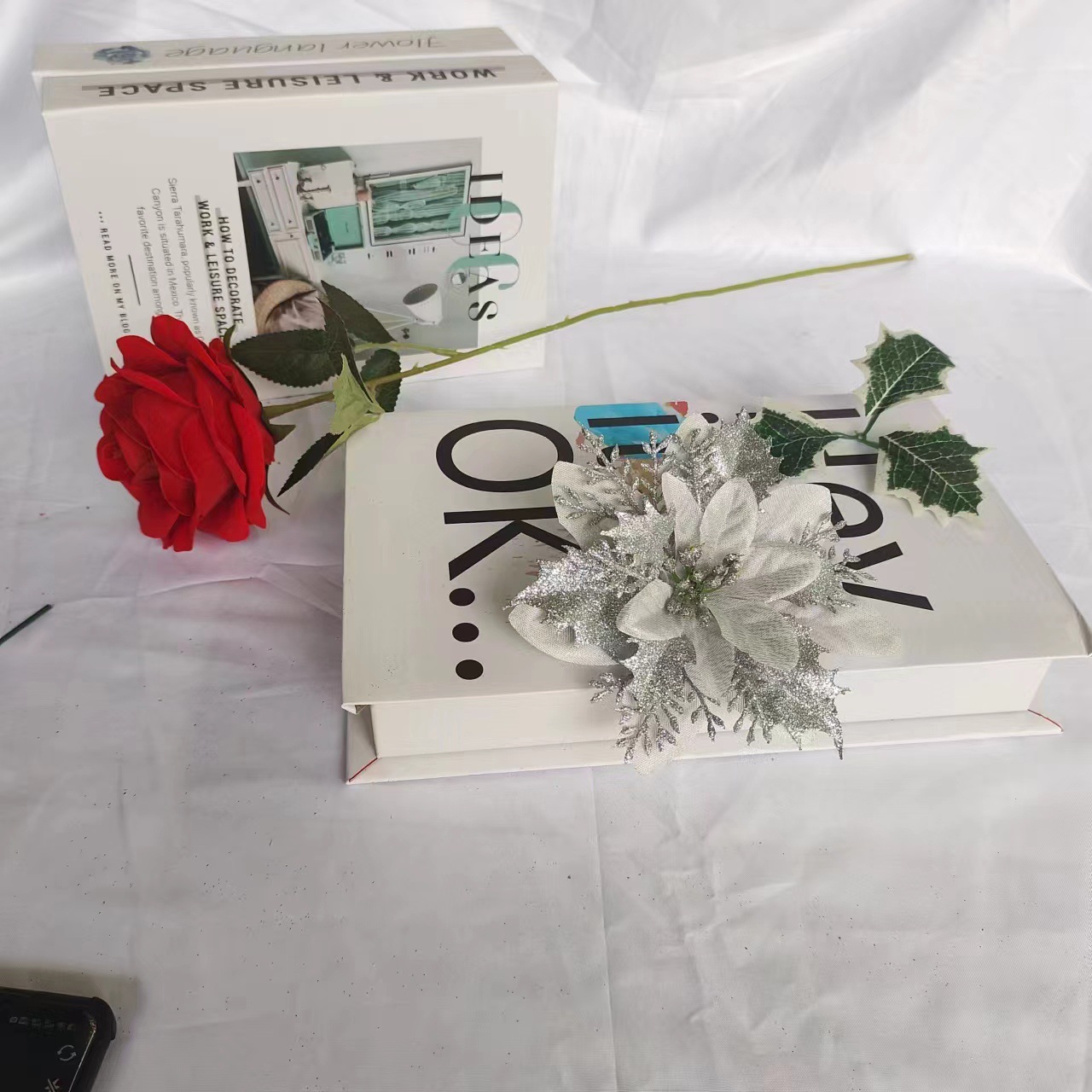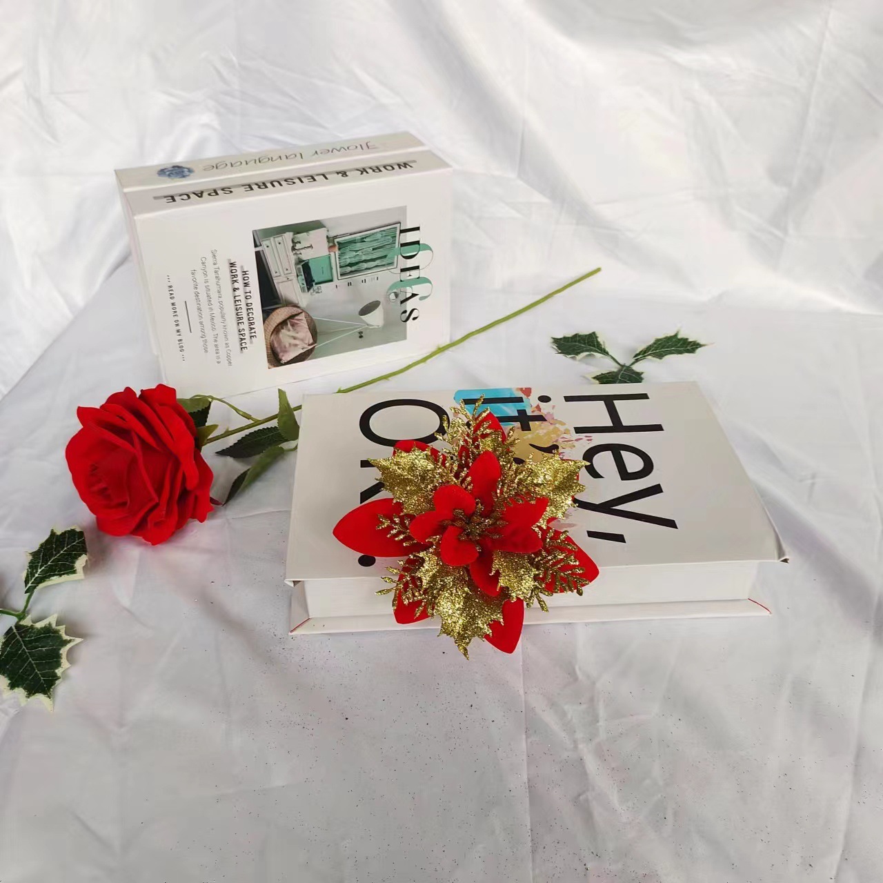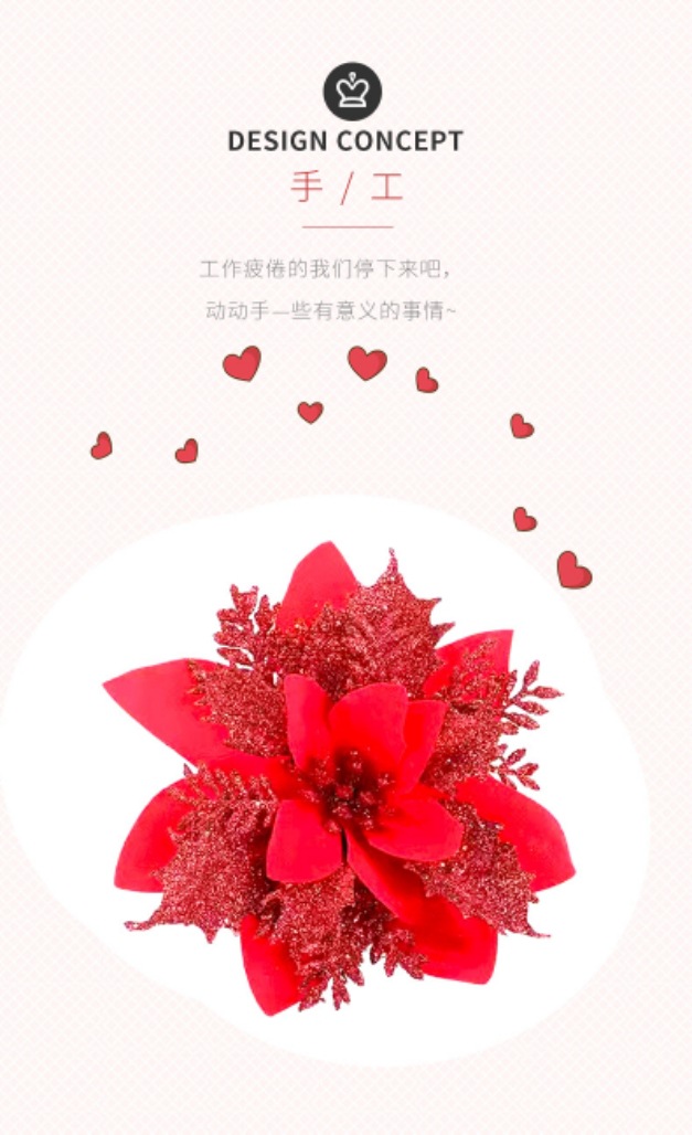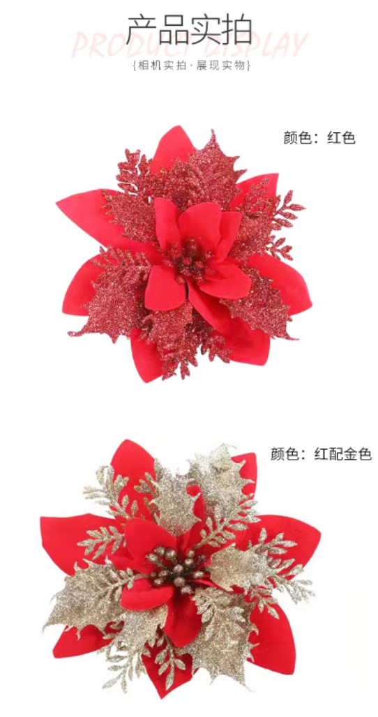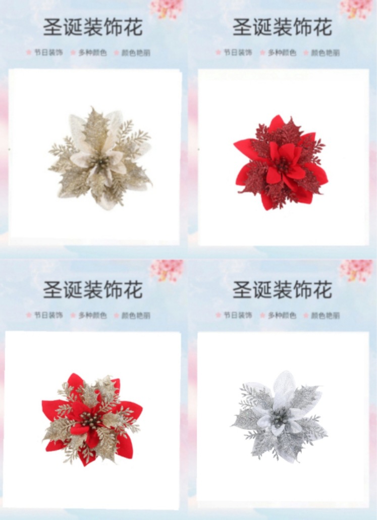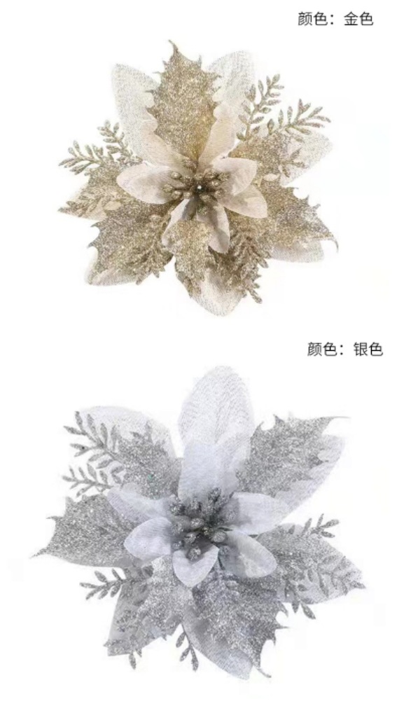 现货14CM三层金粉圣诞花仿真花金粉花圣诞树挂件节日礼品花环配件