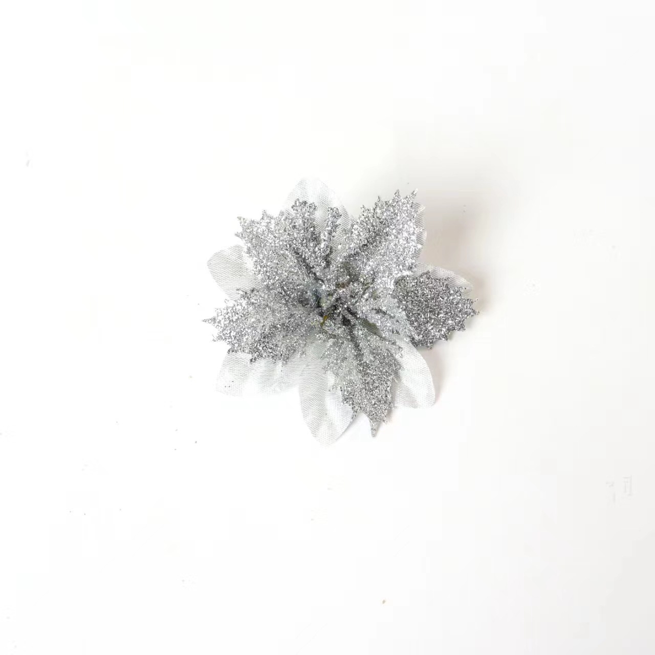 厂家现货批发金粉圣诞花仿真花金粉花圣诞树挂件节日礼品花环配件