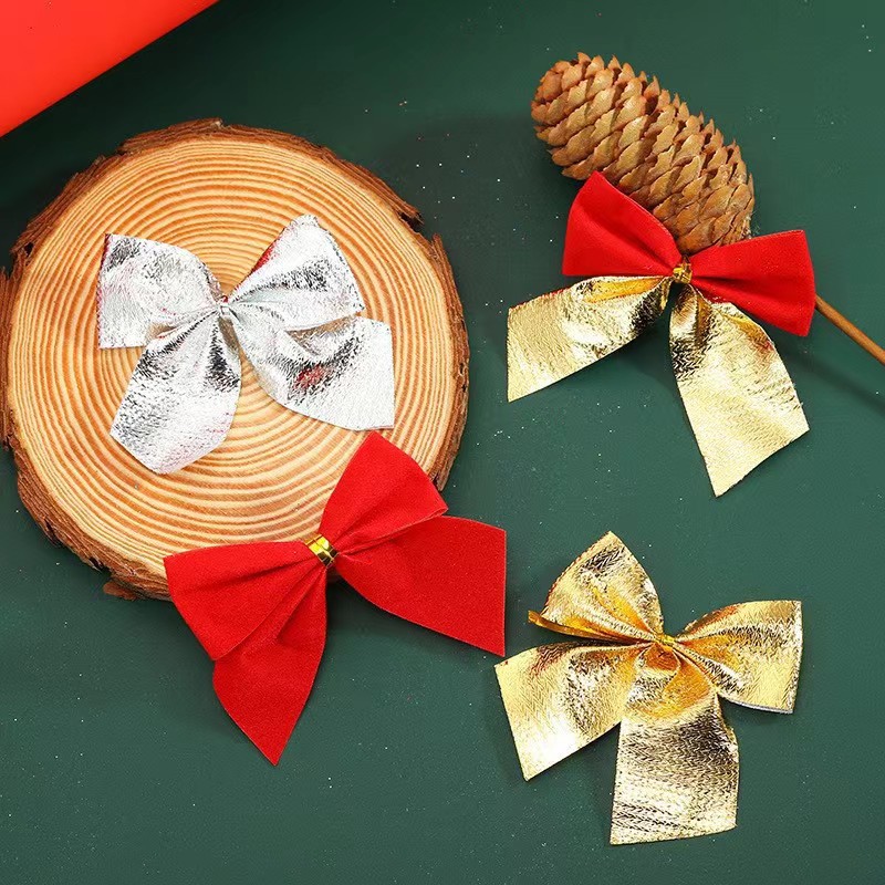 批发圣诞红色金色小蝴蝶结圣诞树挂件圣诞节配件拼接蝴蝶结挂饰品