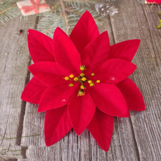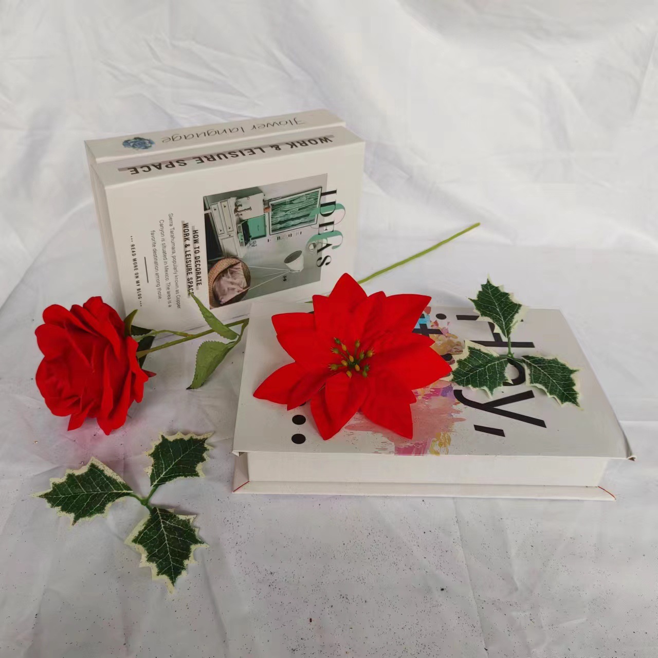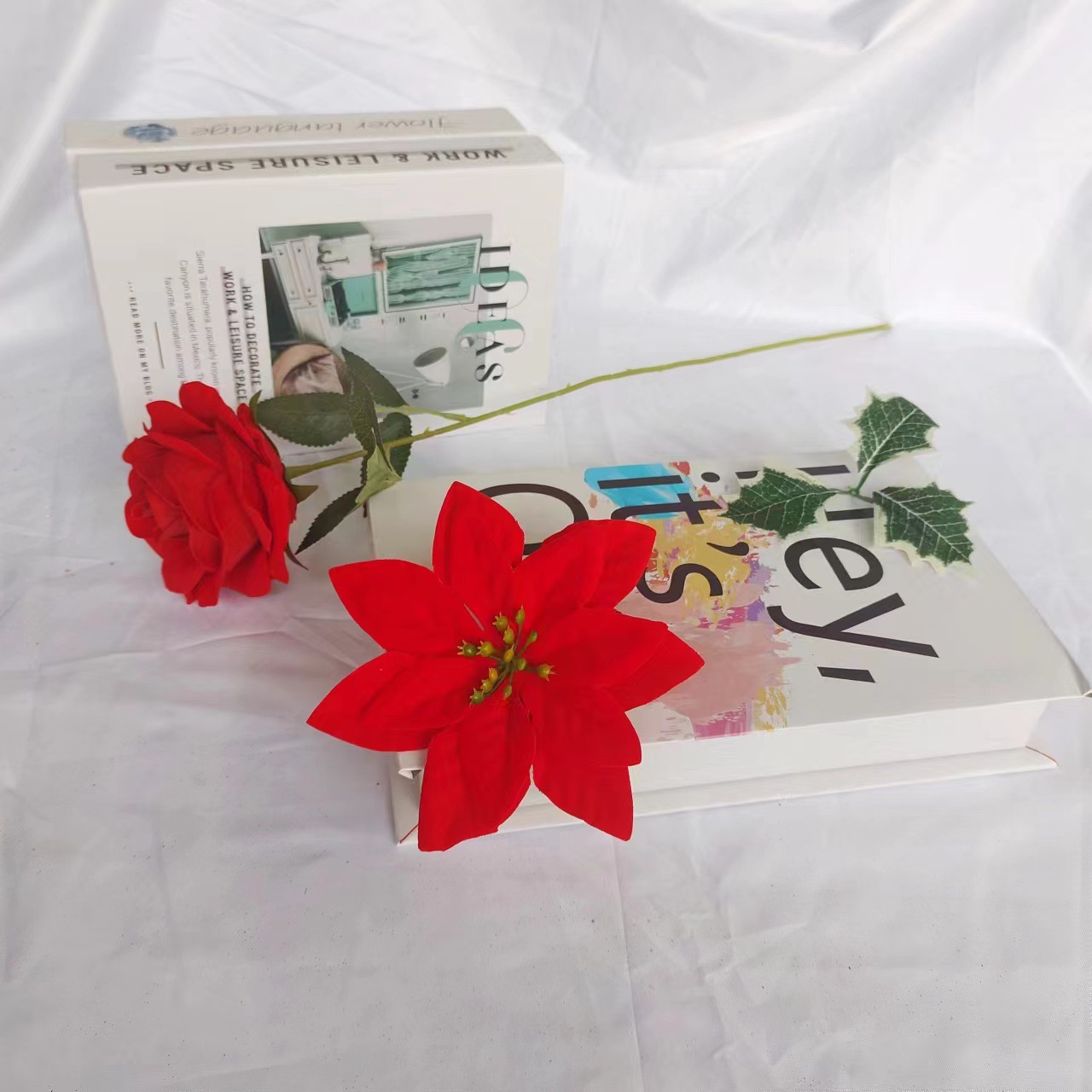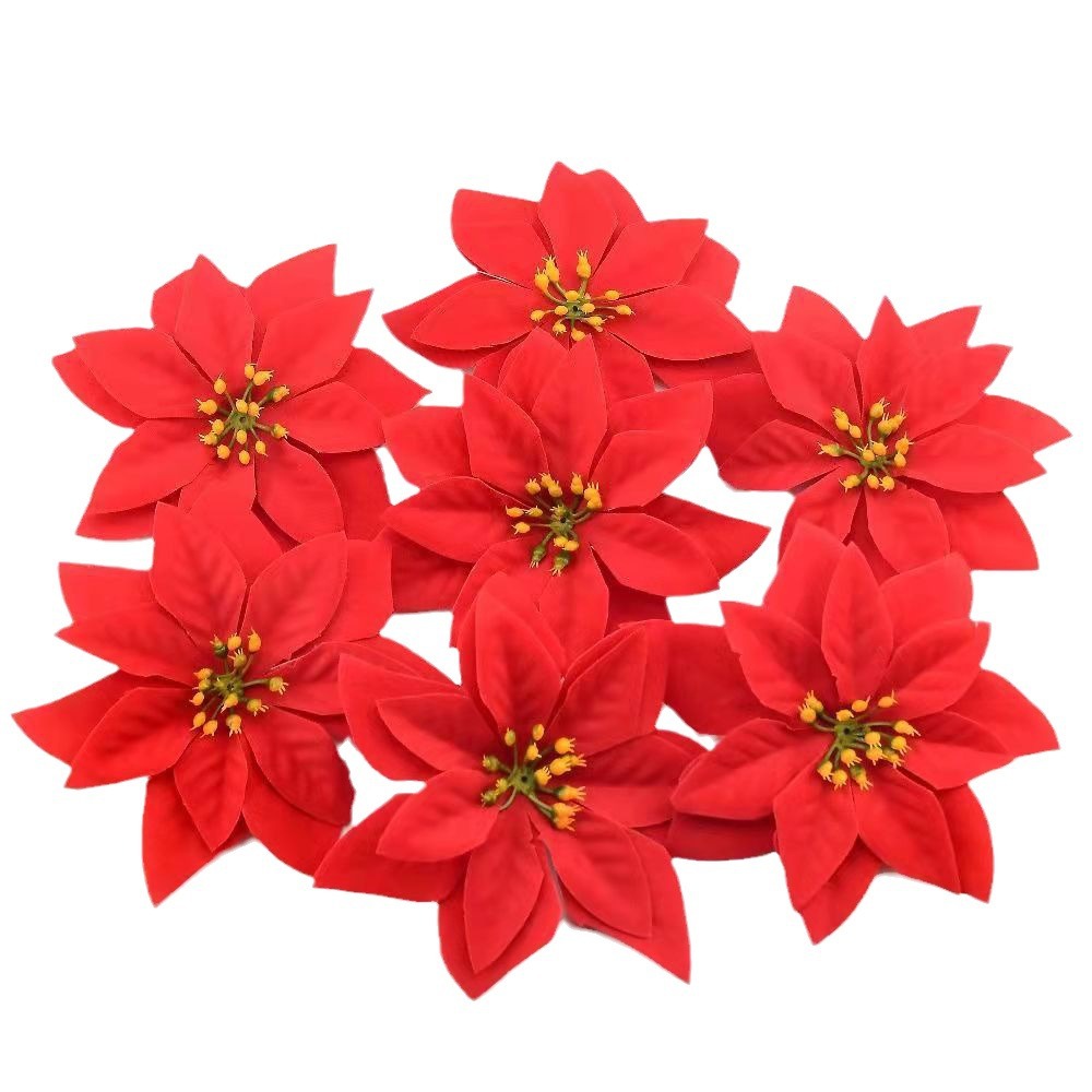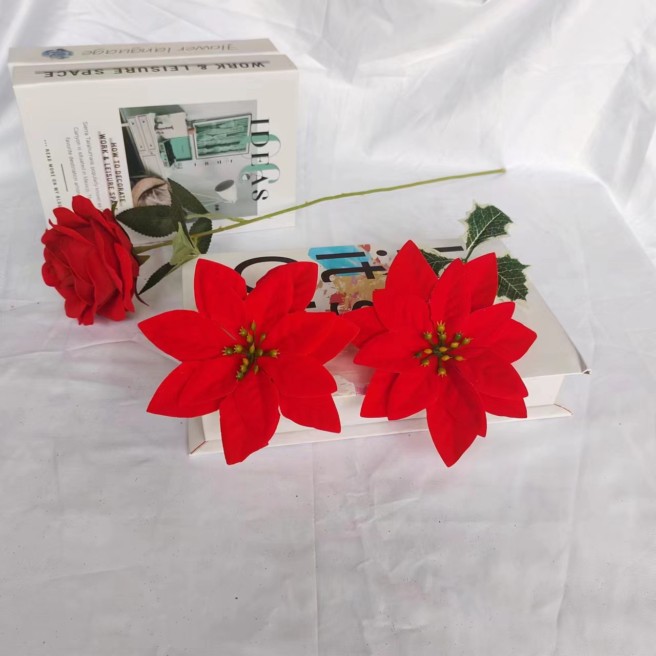 现货批发一品红色绒布圣诞花仿真花圣诞树挂件装饰花节日花环配件