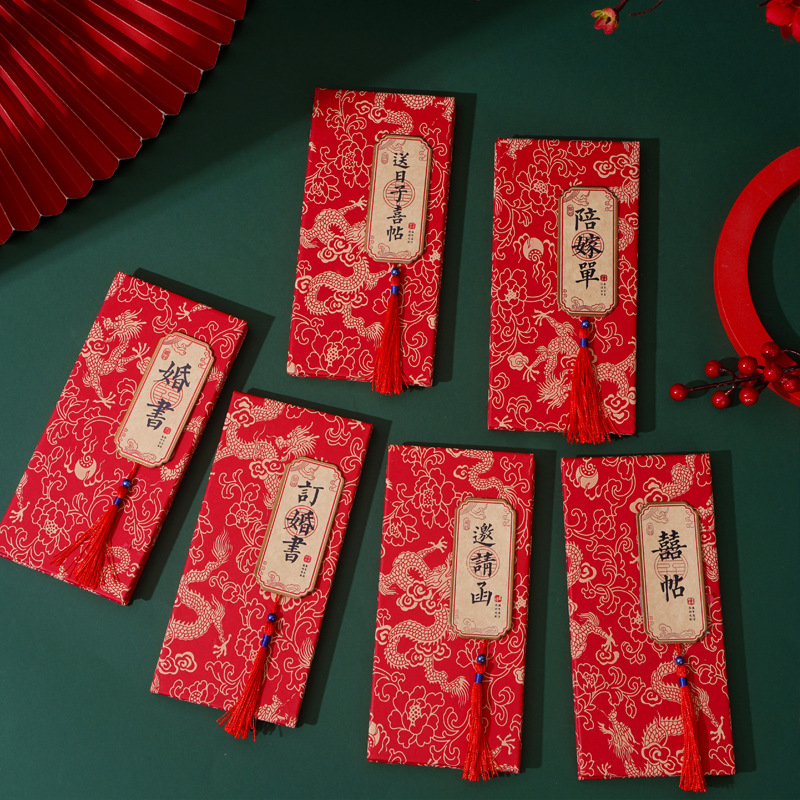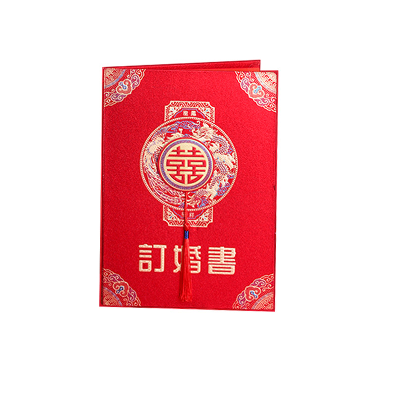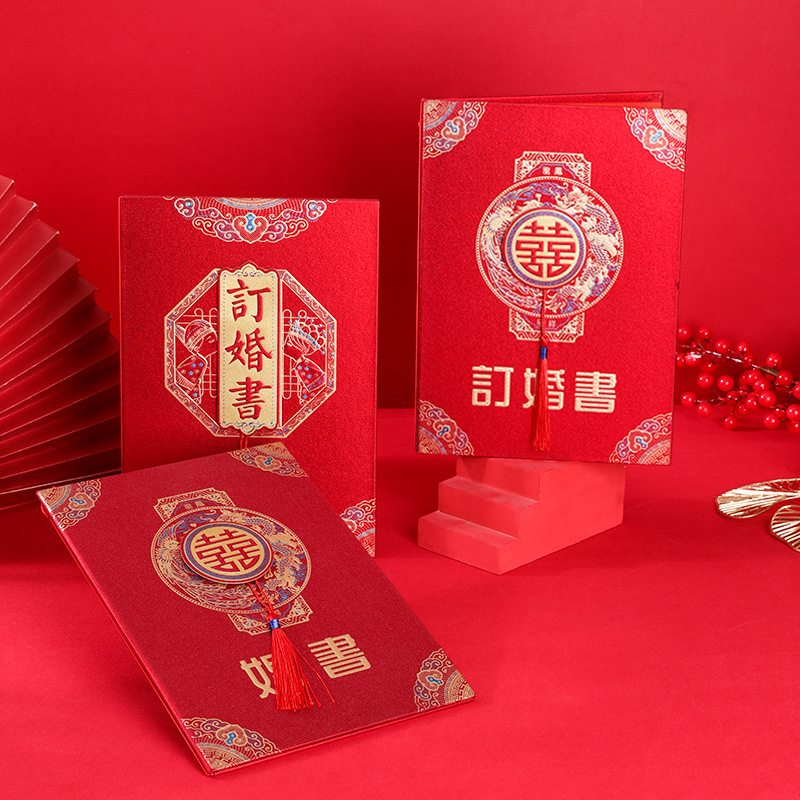 网红金葱订婚书批发 中国风结婚订婚送日子书陪嫁单 折叠奏折婚书
