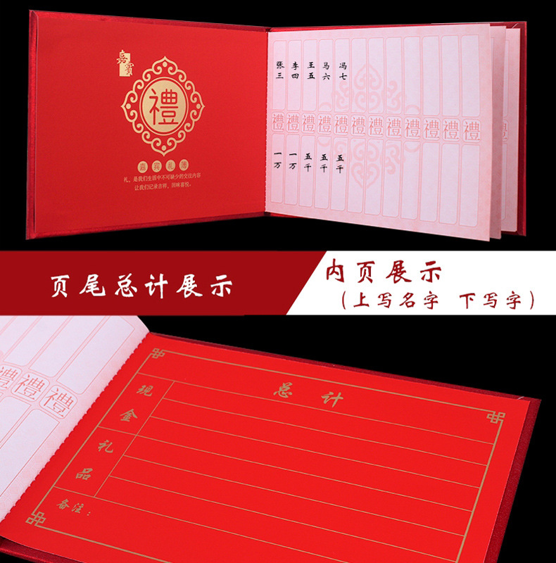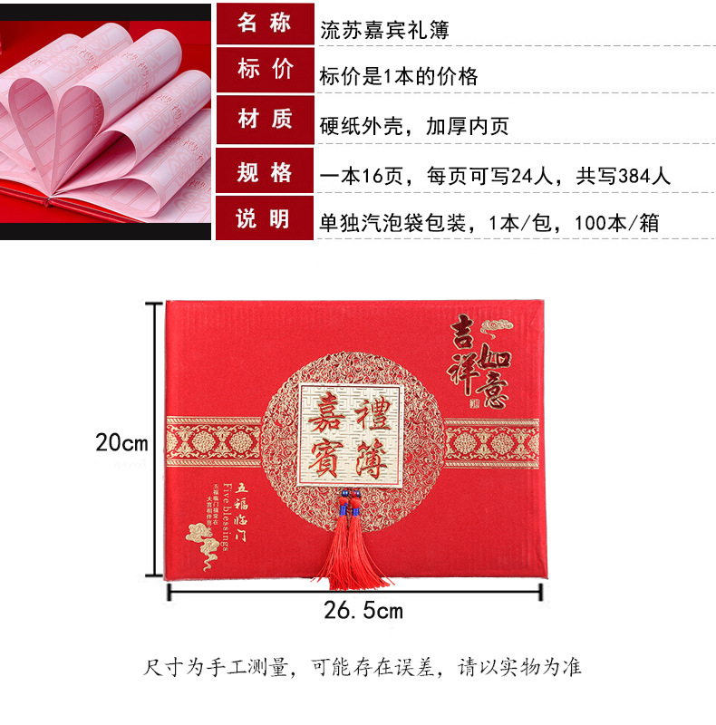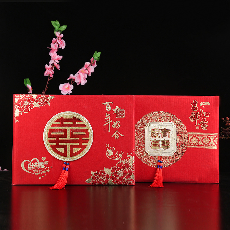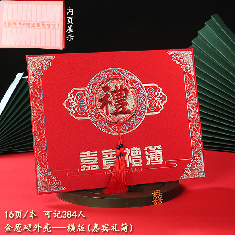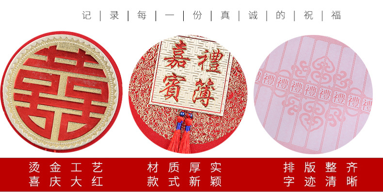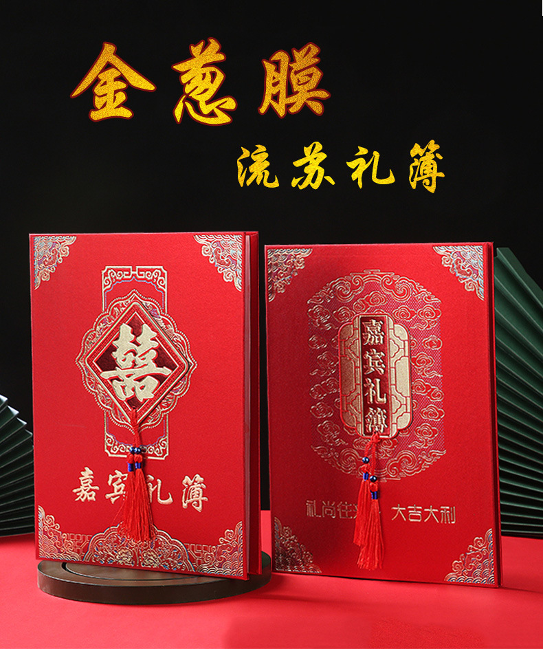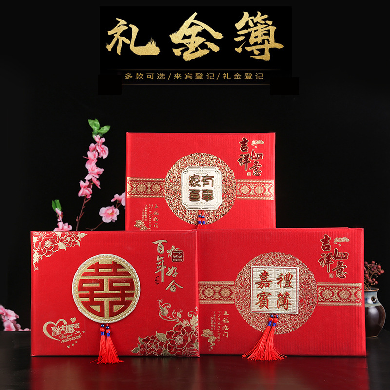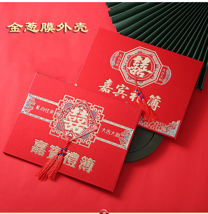 硬壳寿字烫金流苏礼单本嘉宾礼薄人情登记账本婚庆批发结婚礼金簿