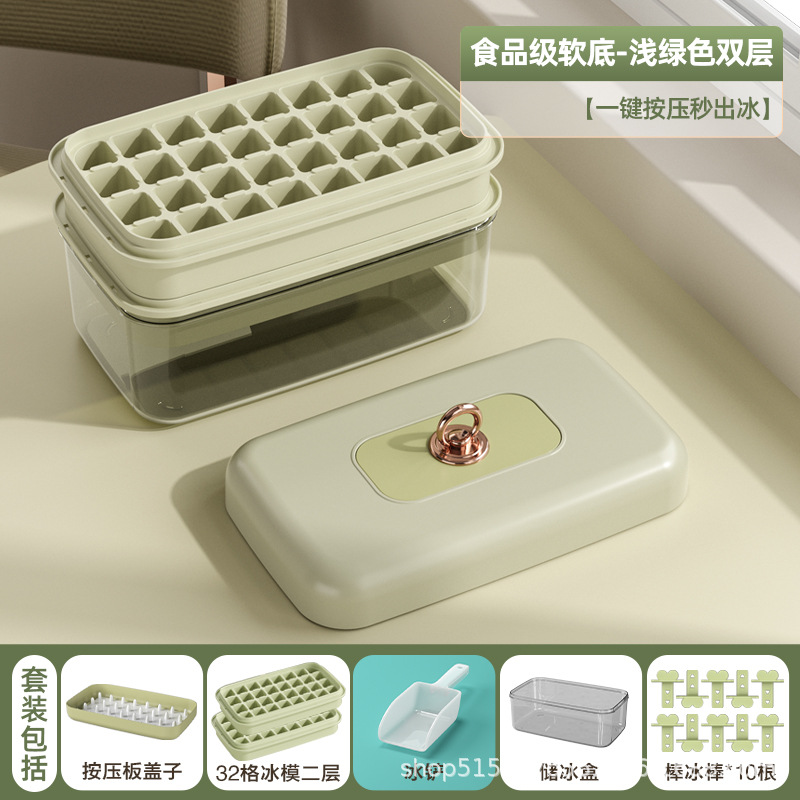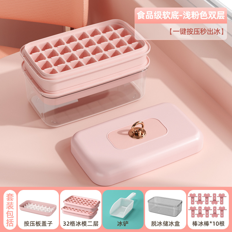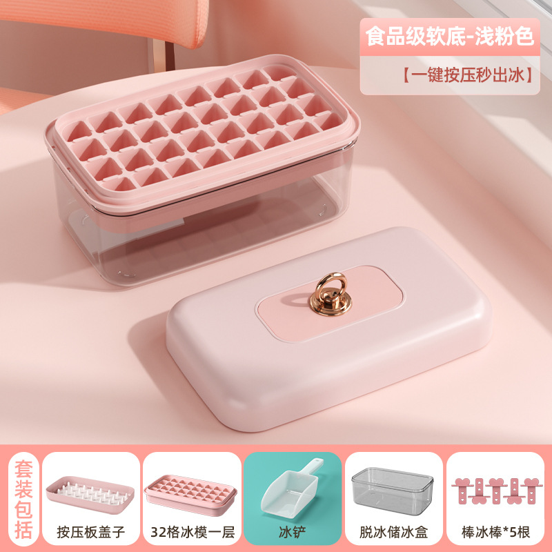 冰块模具速冻大容量网红冰格带盖按压易脱落冰格硅胶制储冰盒家用