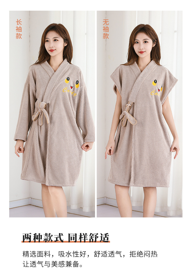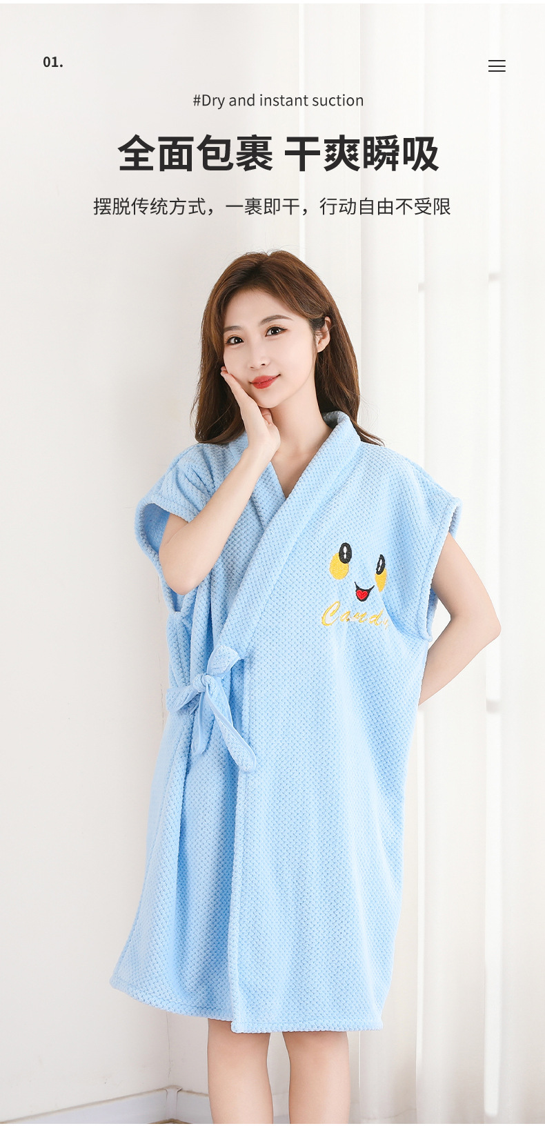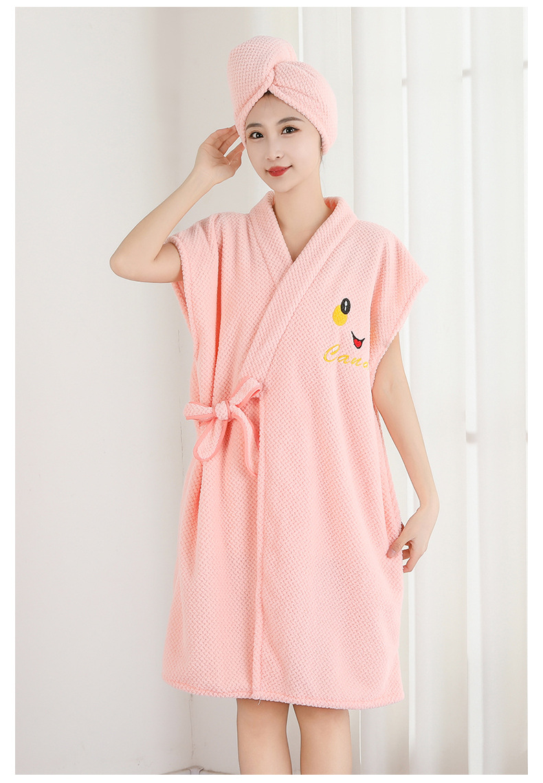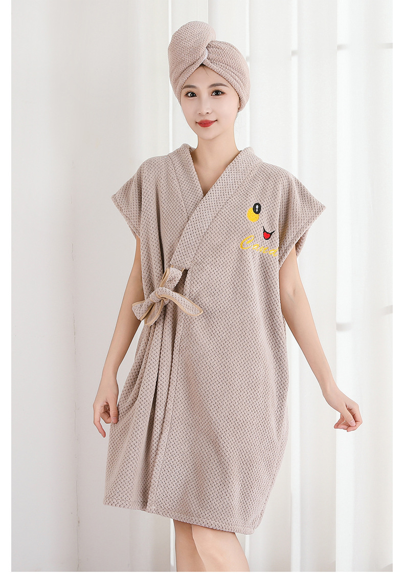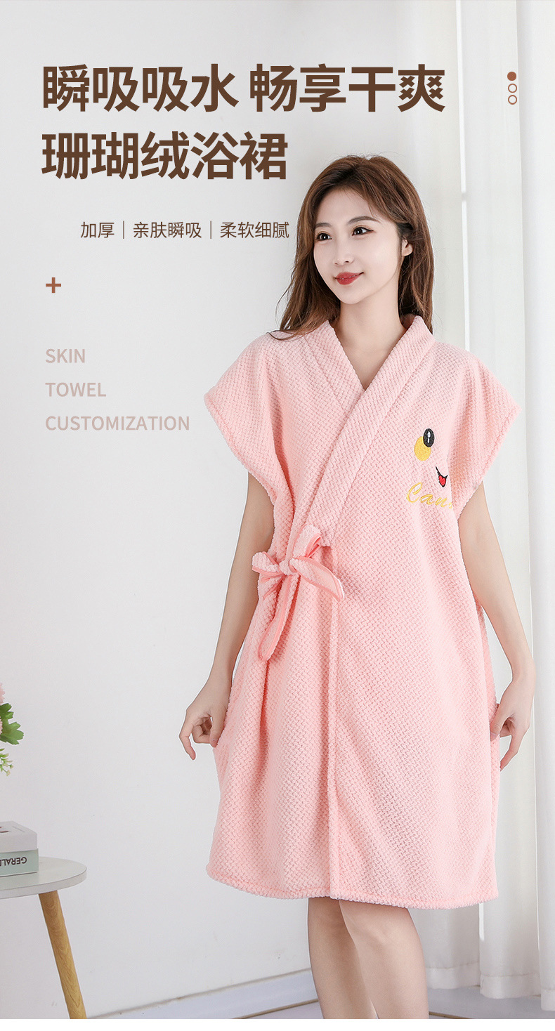新款菠萝格浴袍女吸水速干加厚可穿式浴巾珊瑚绒交叉绑带浴裙批发