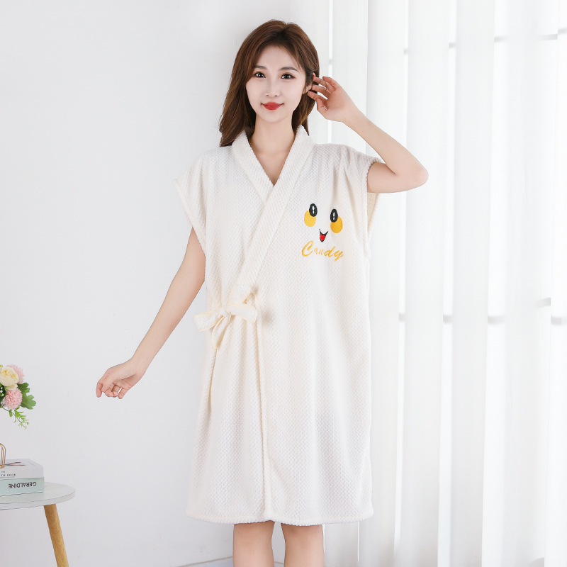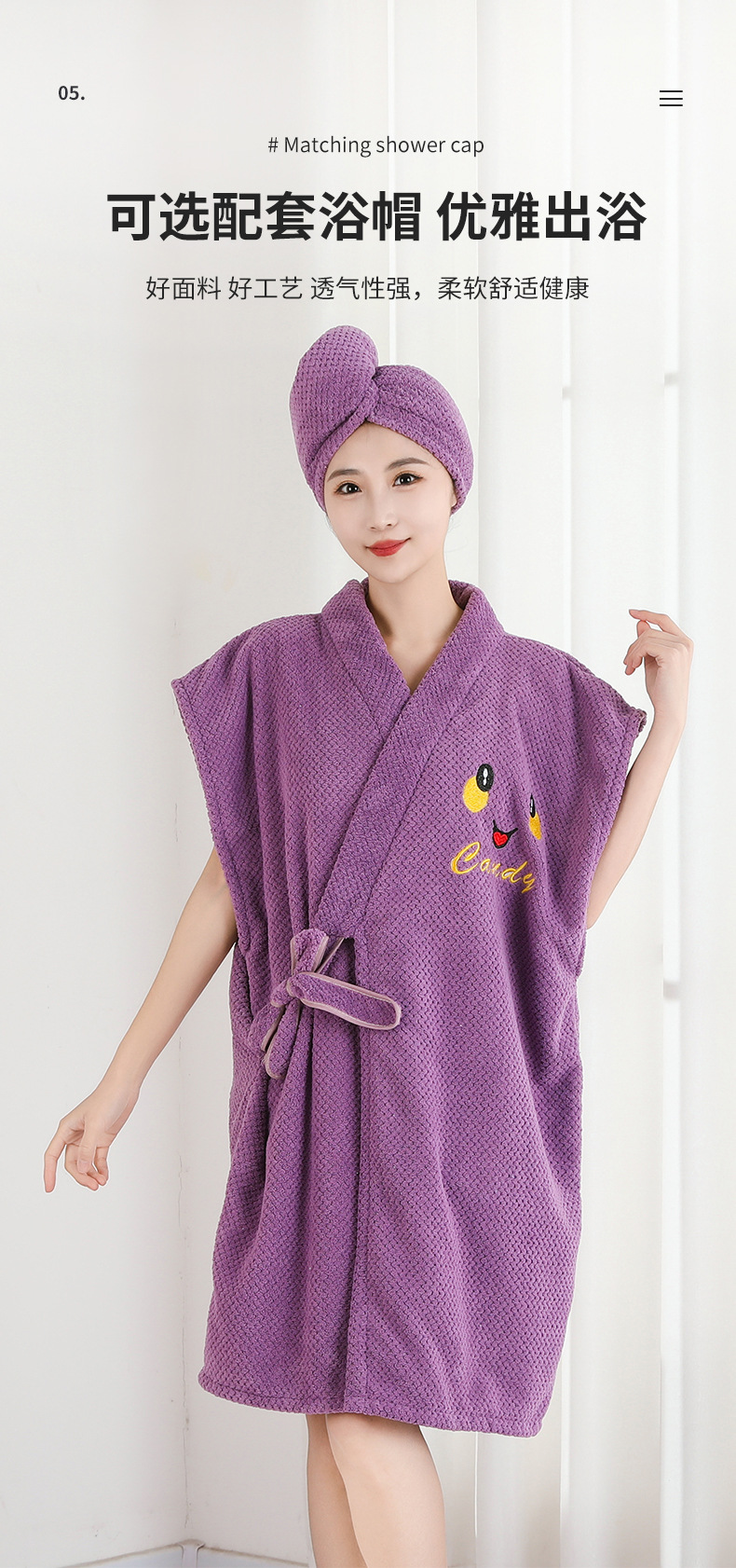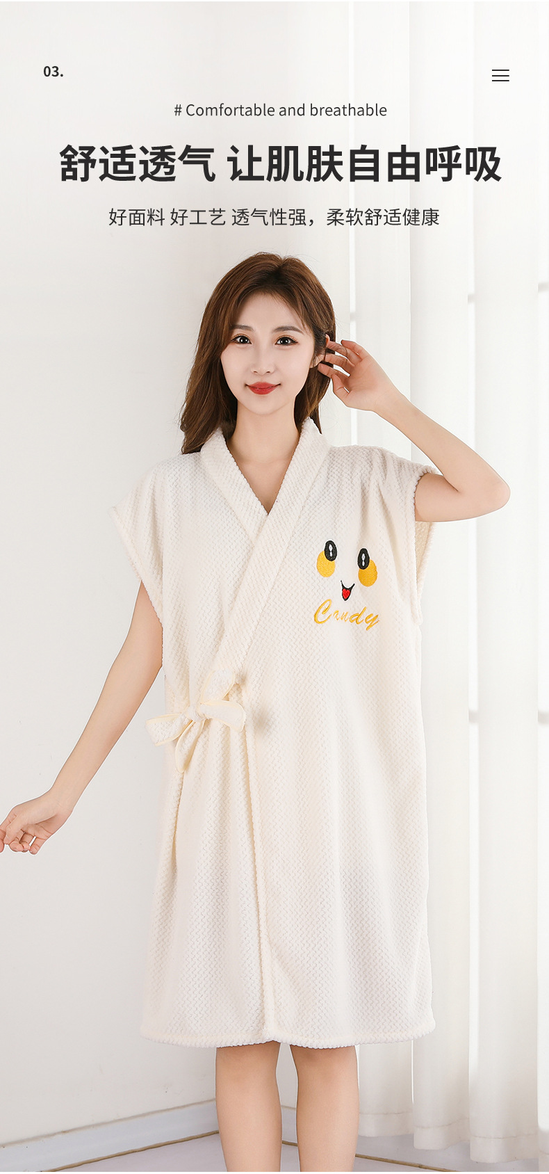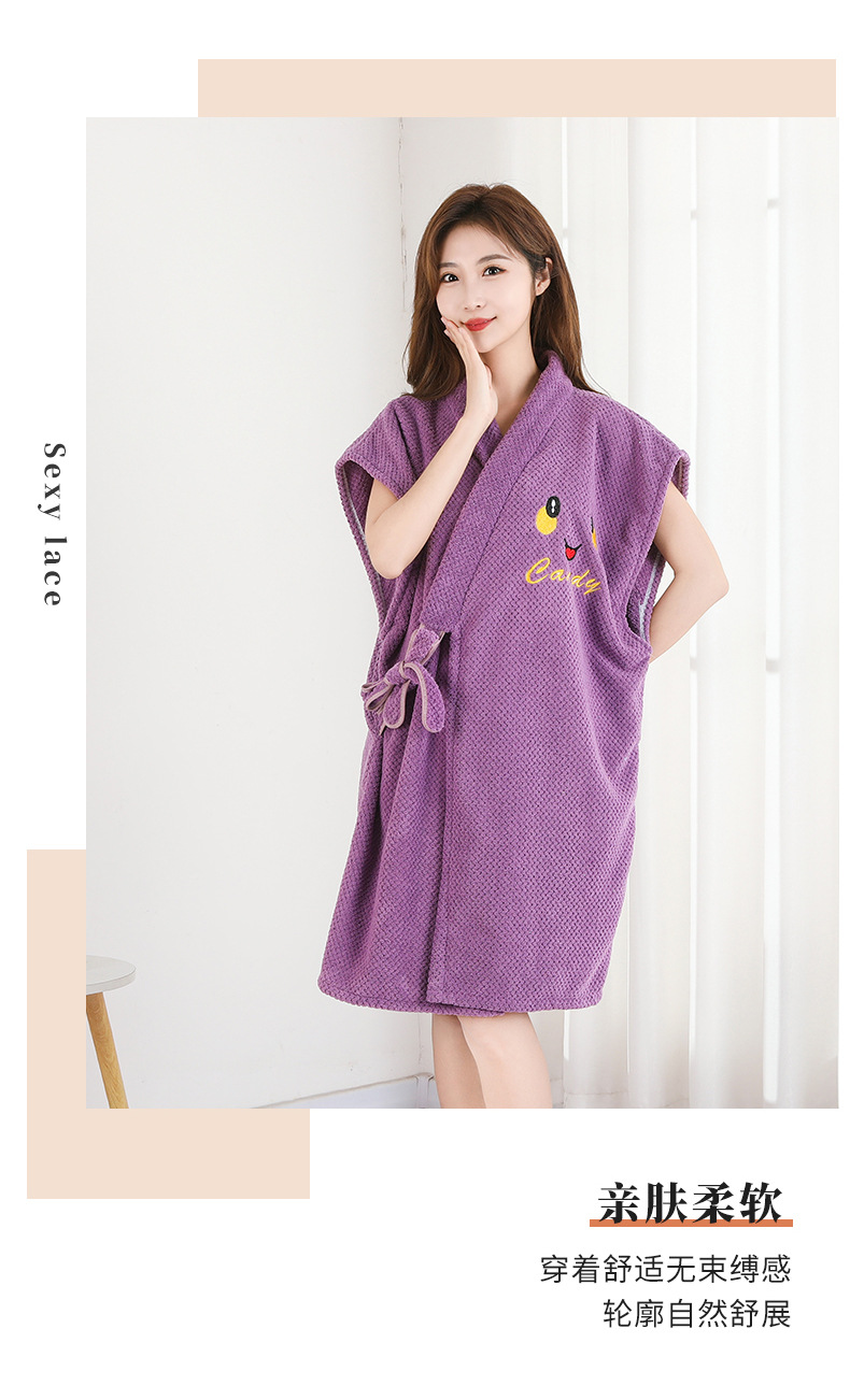 新款菠萝格浴袍女吸水速干加厚可穿式浴巾珊瑚绒交叉绑带浴裙批发