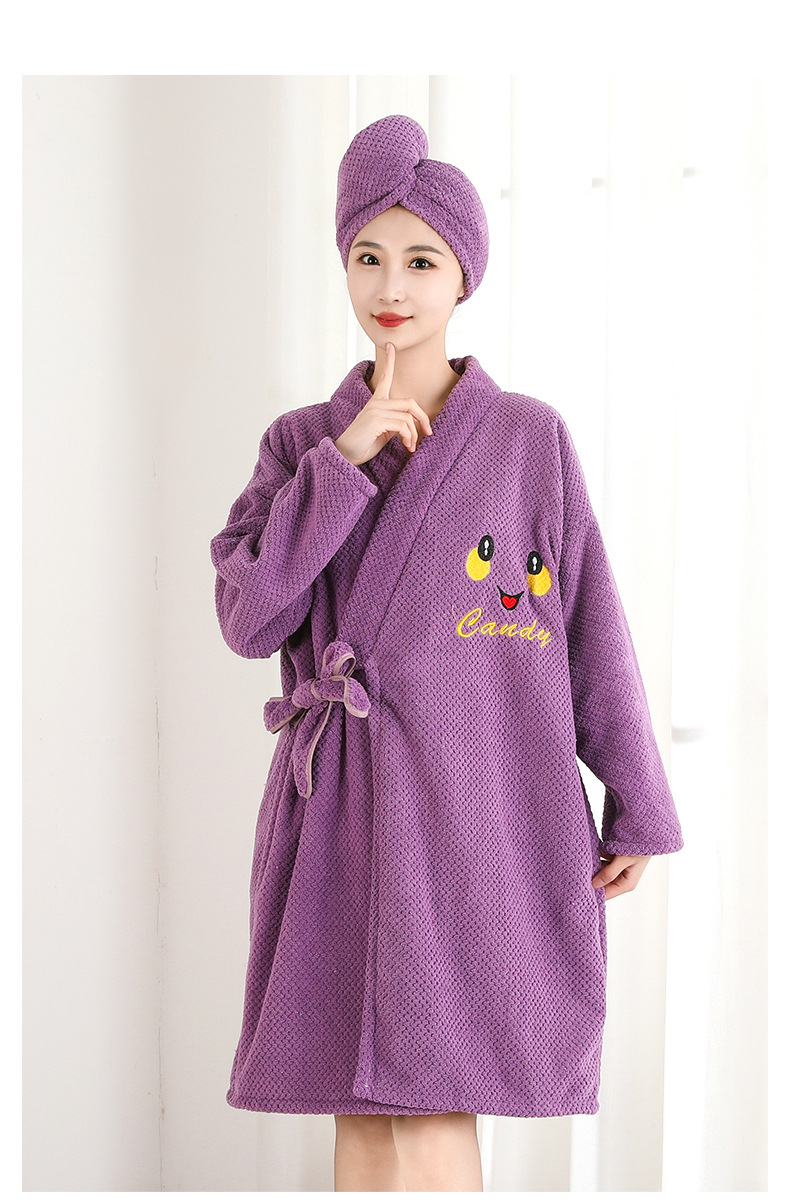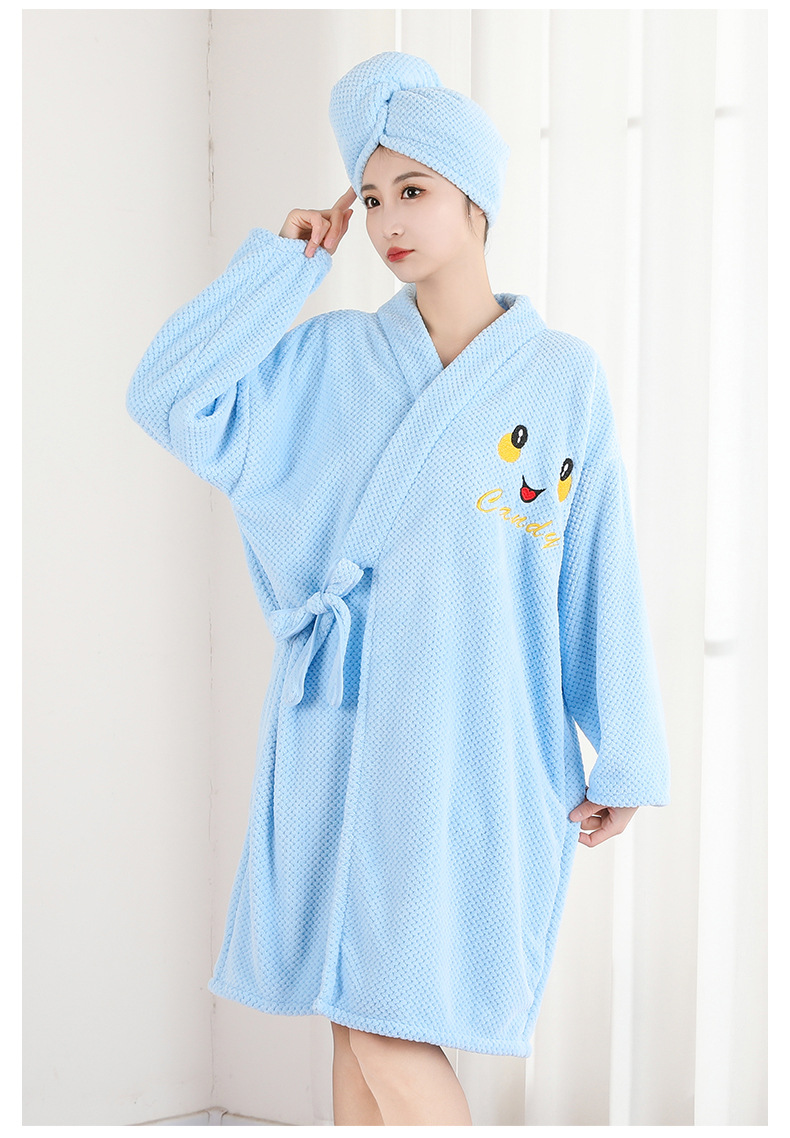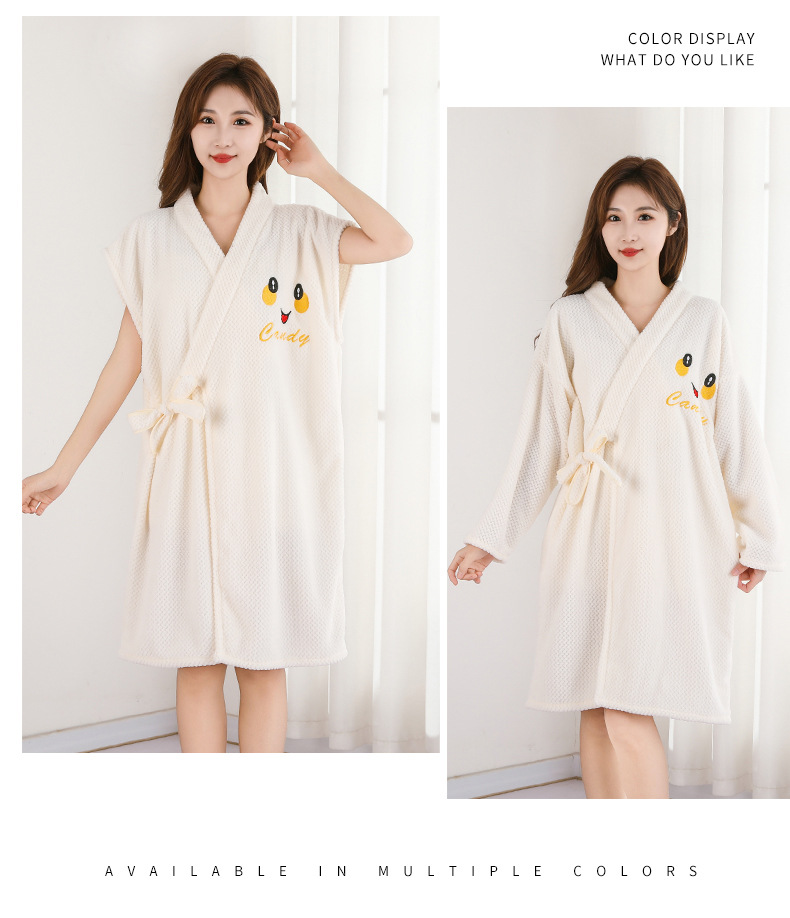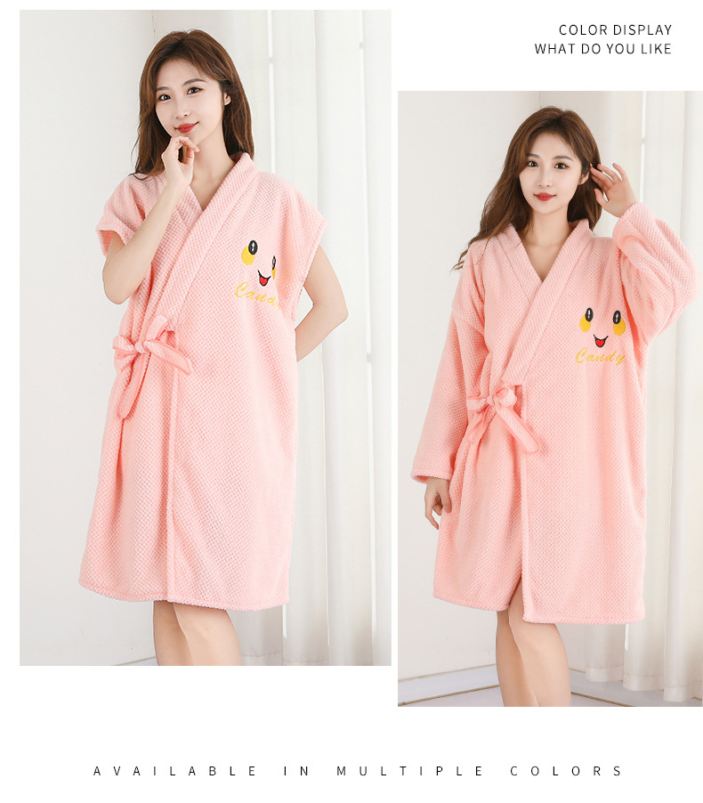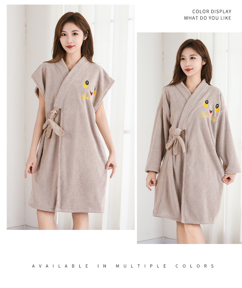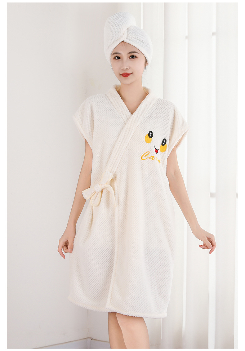 新款菠萝格浴袍女吸水速干加厚可穿式浴巾珊瑚绒交叉绑带浴裙批发