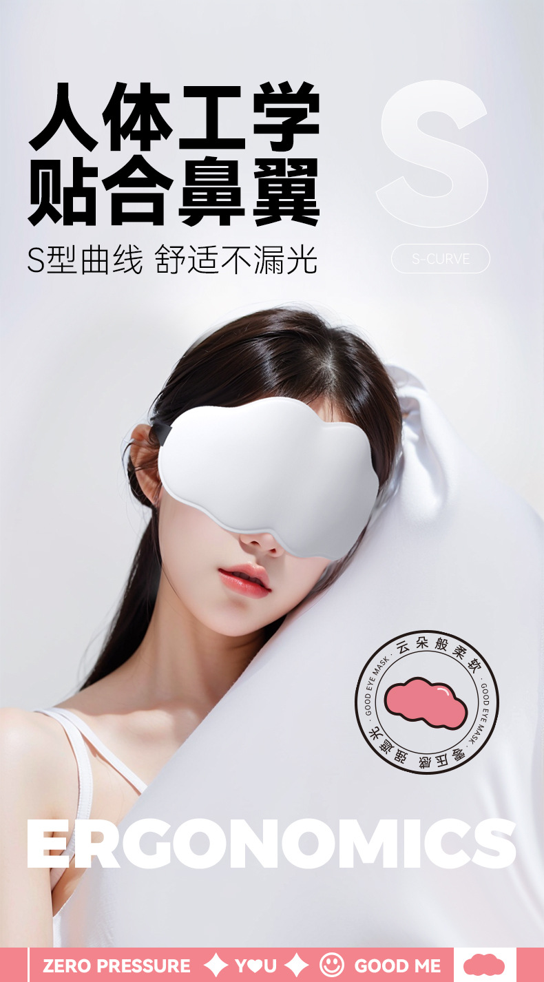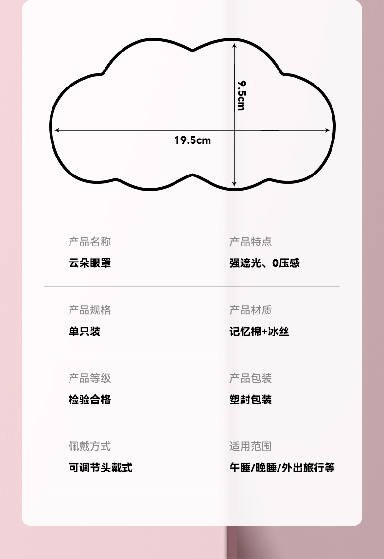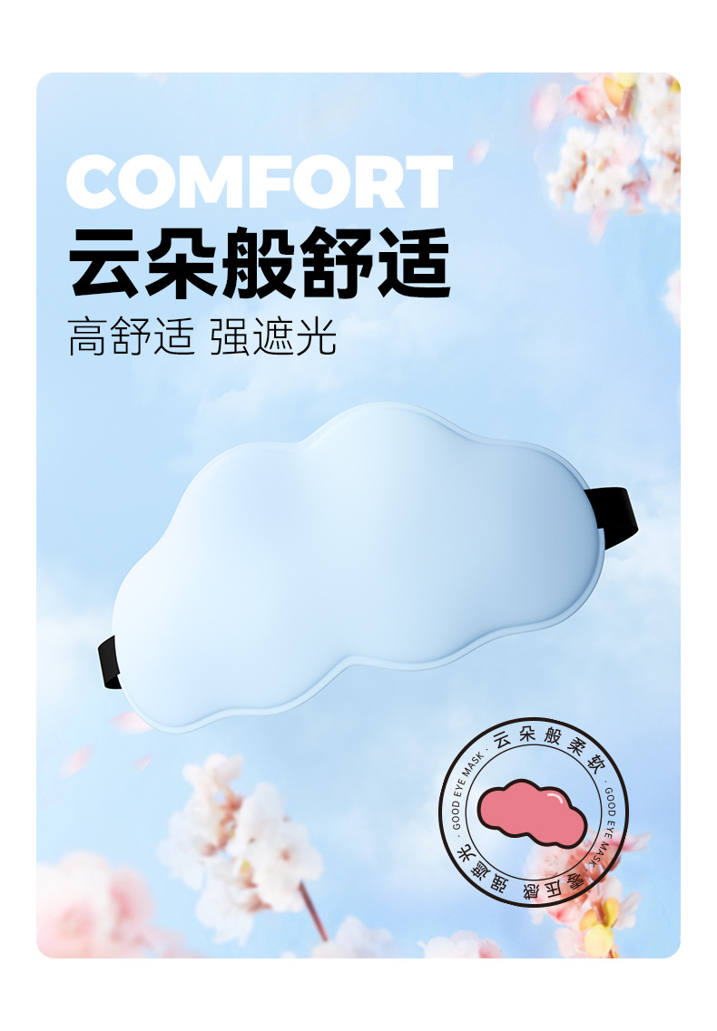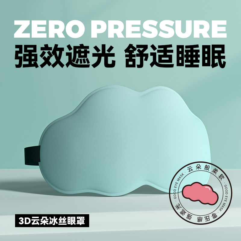 3D云朵睡眠眼罩可爱软妹少女立体遮光学生睡觉冰丝儿童不勒挂耳式