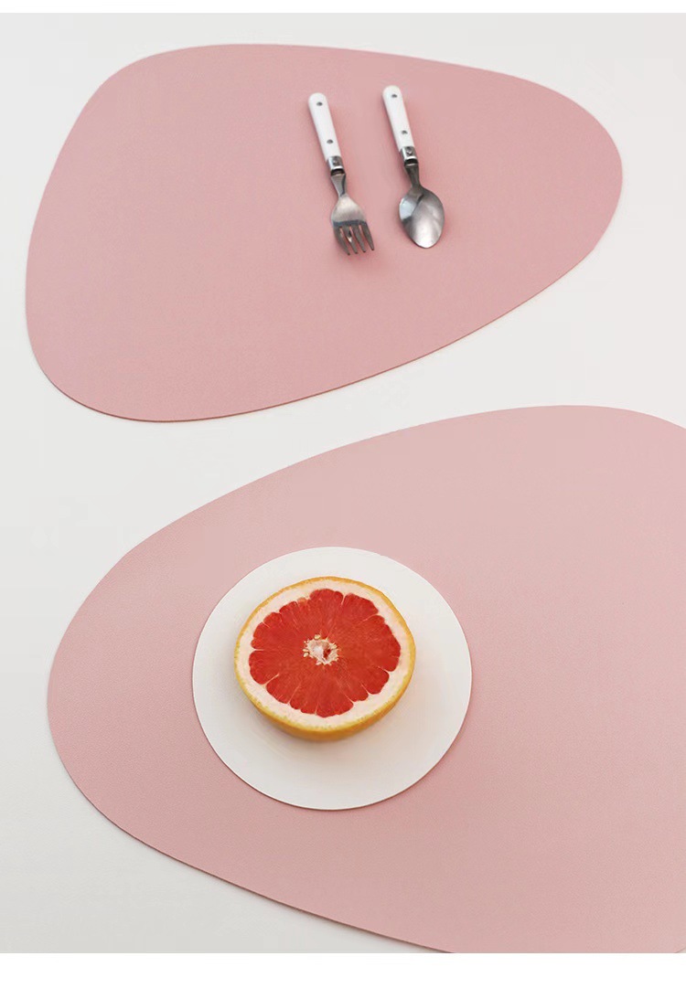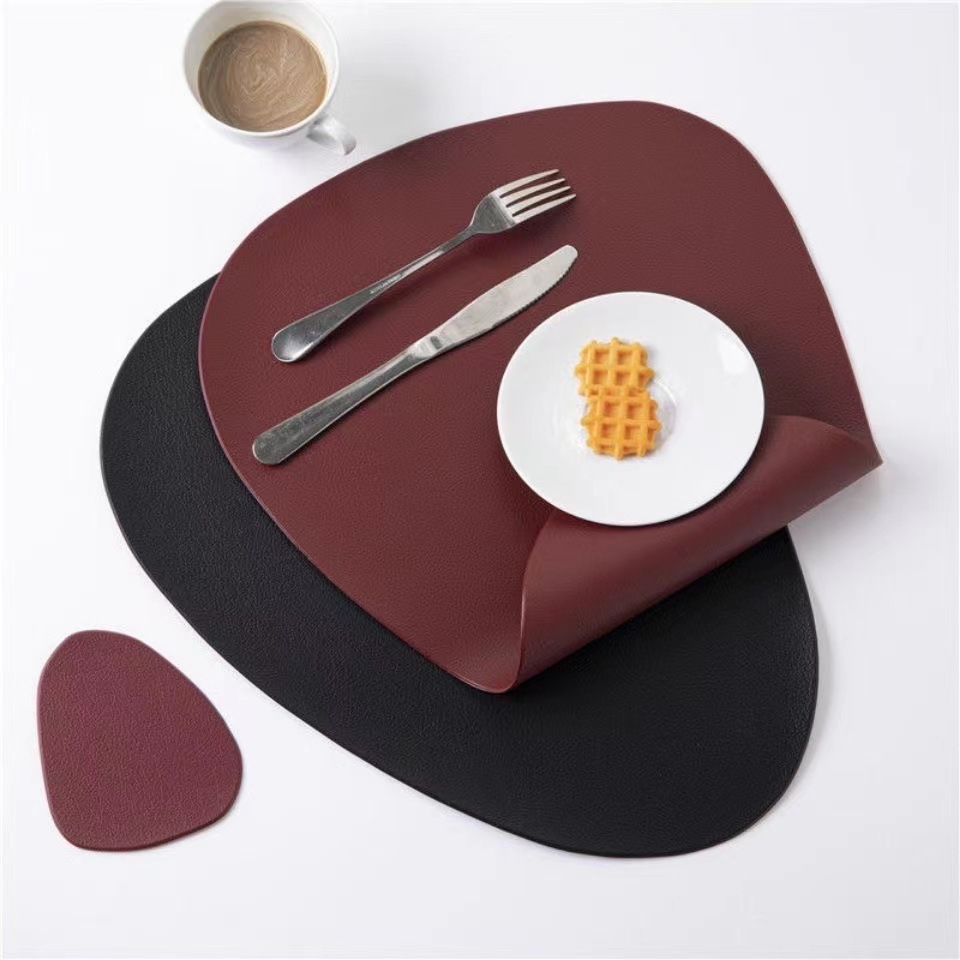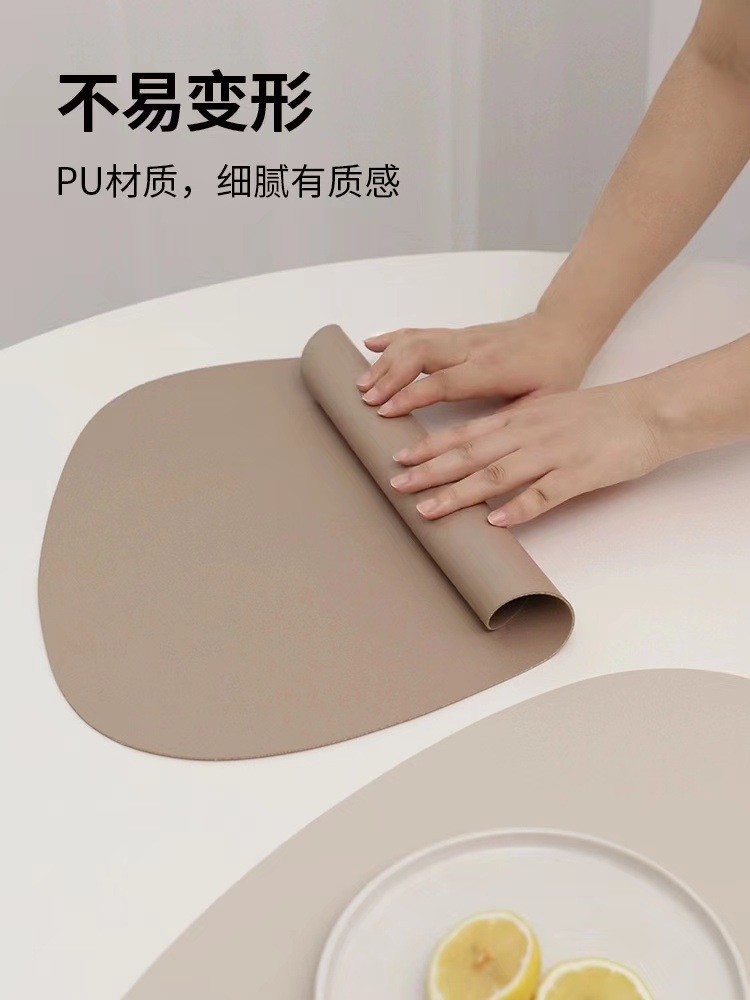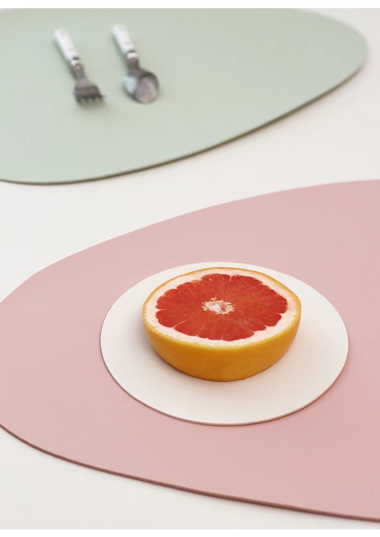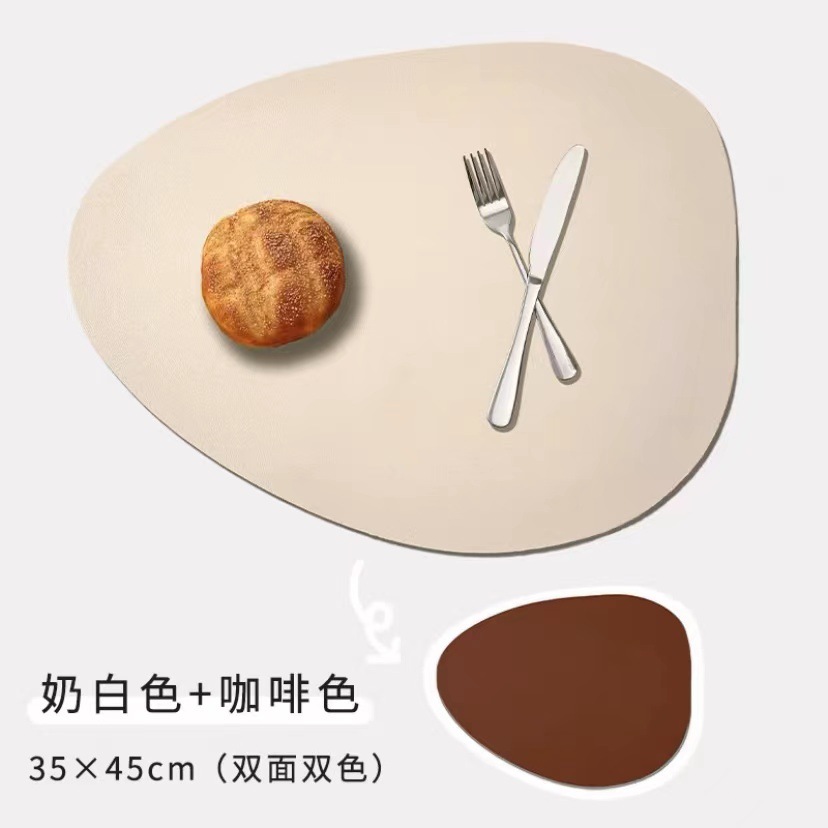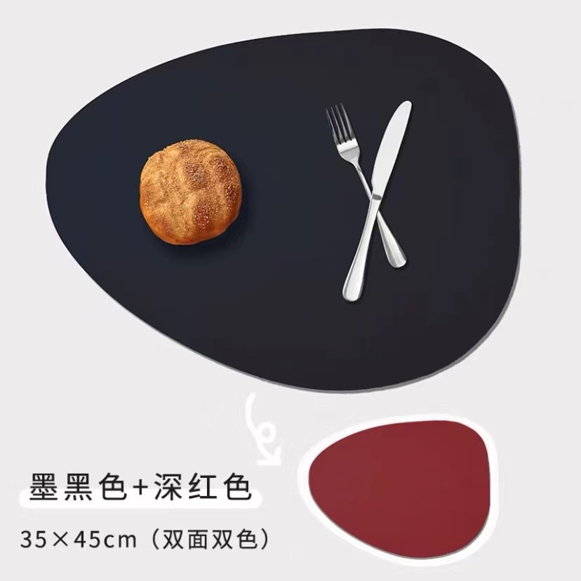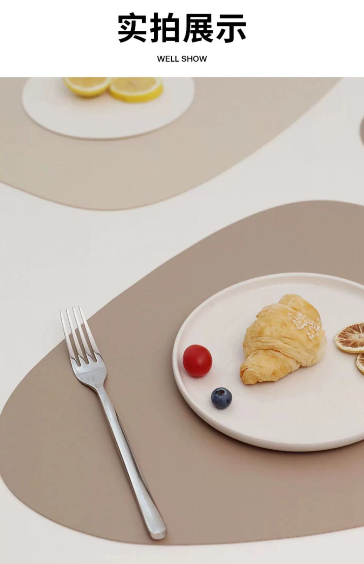 北欧风皮革不规则西餐垫椭圆双色双面隔热垫家用防滑防水防油杯垫