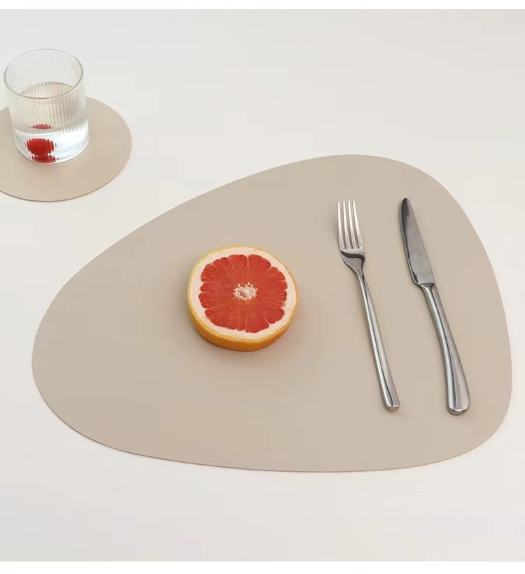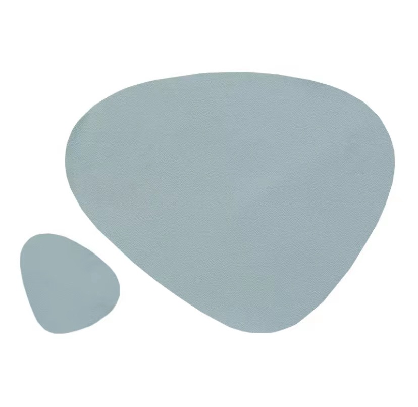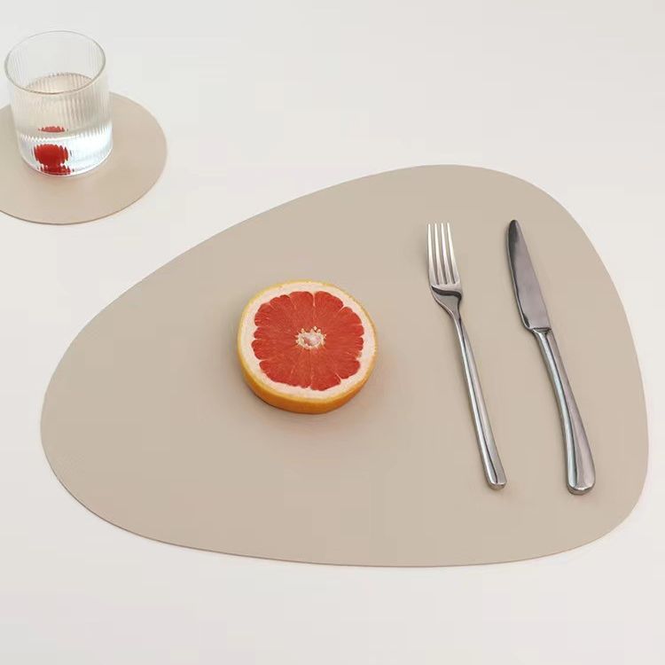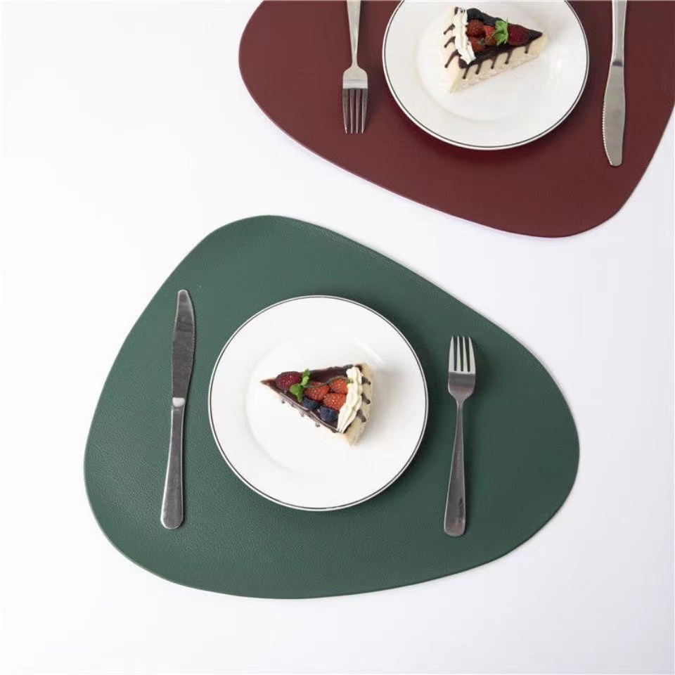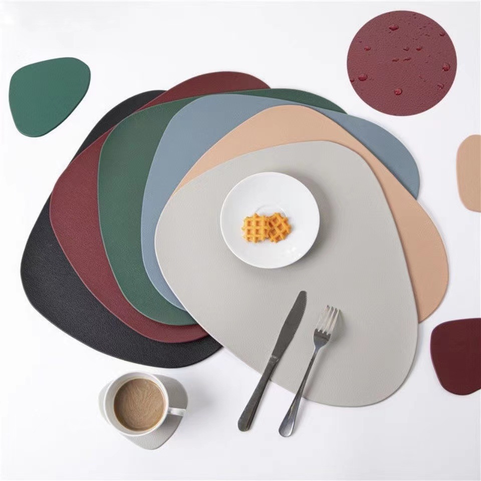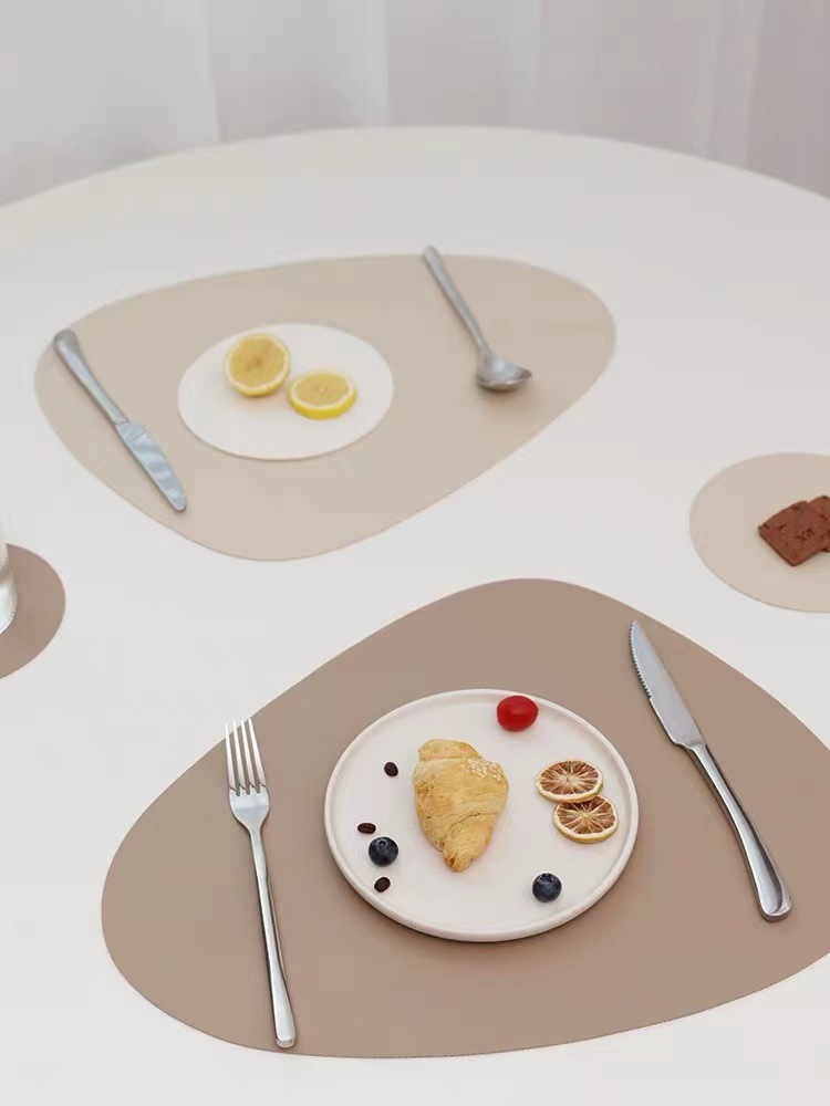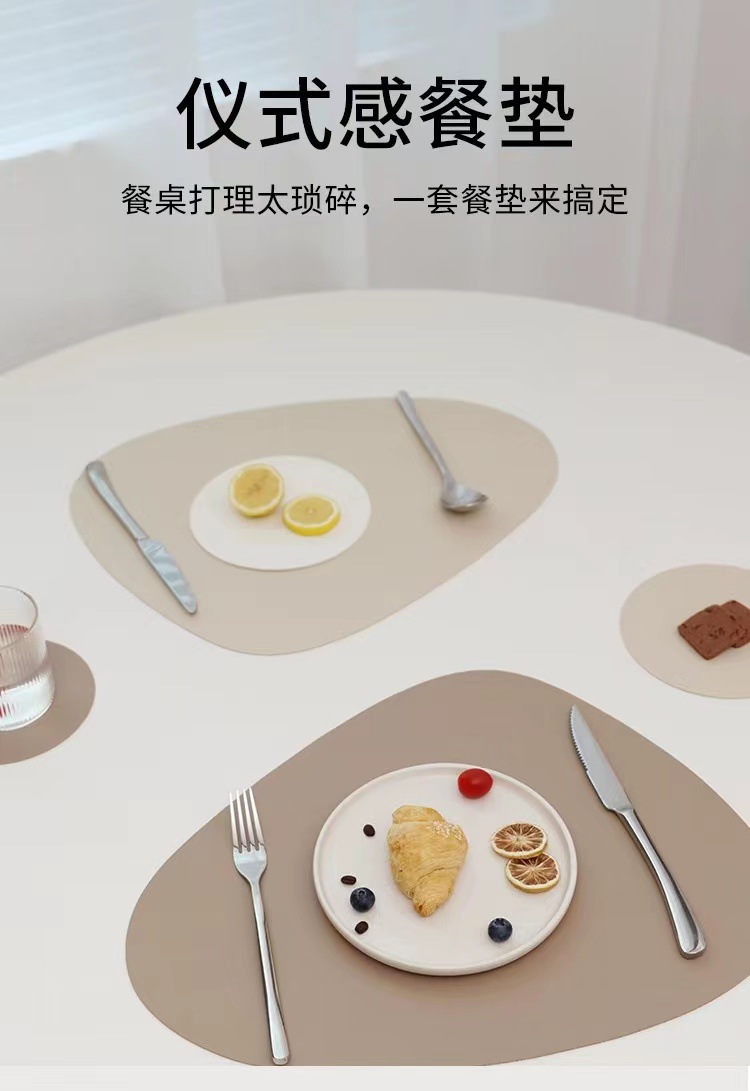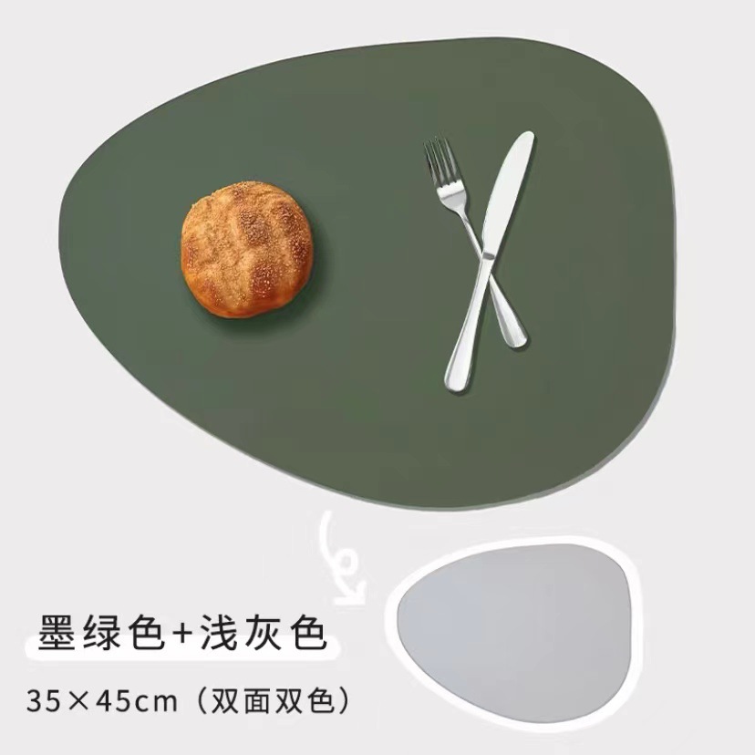 北欧风皮革不规则西餐垫椭圆双色双面隔热垫家用防滑防水防油杯垫