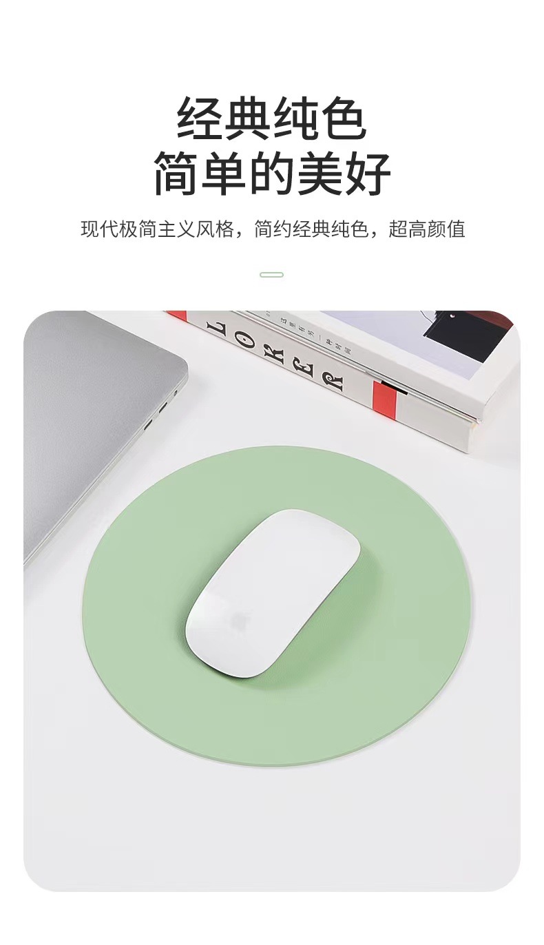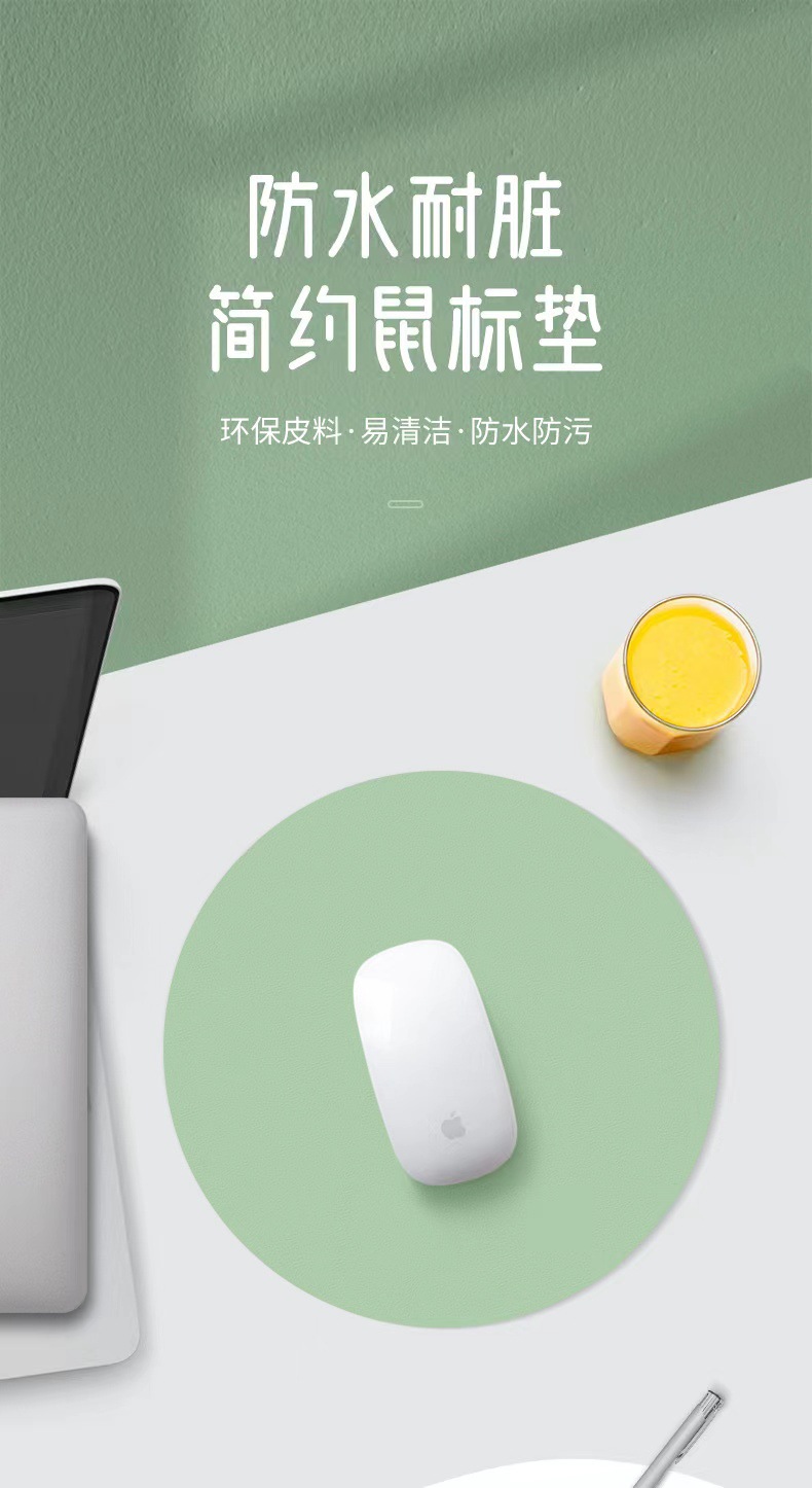 圆形皮革鼠标垫印刷各种图案笔记本无线鼠标垫单面双面纯色多尺寸