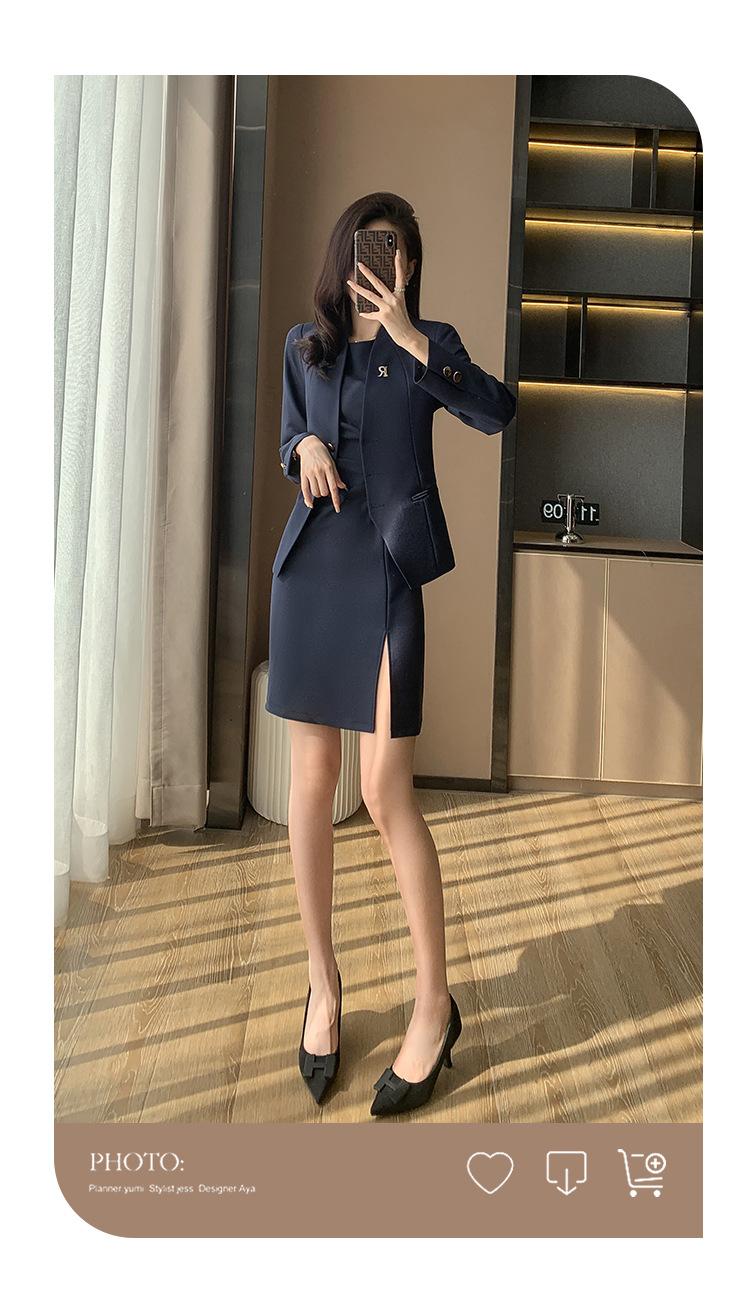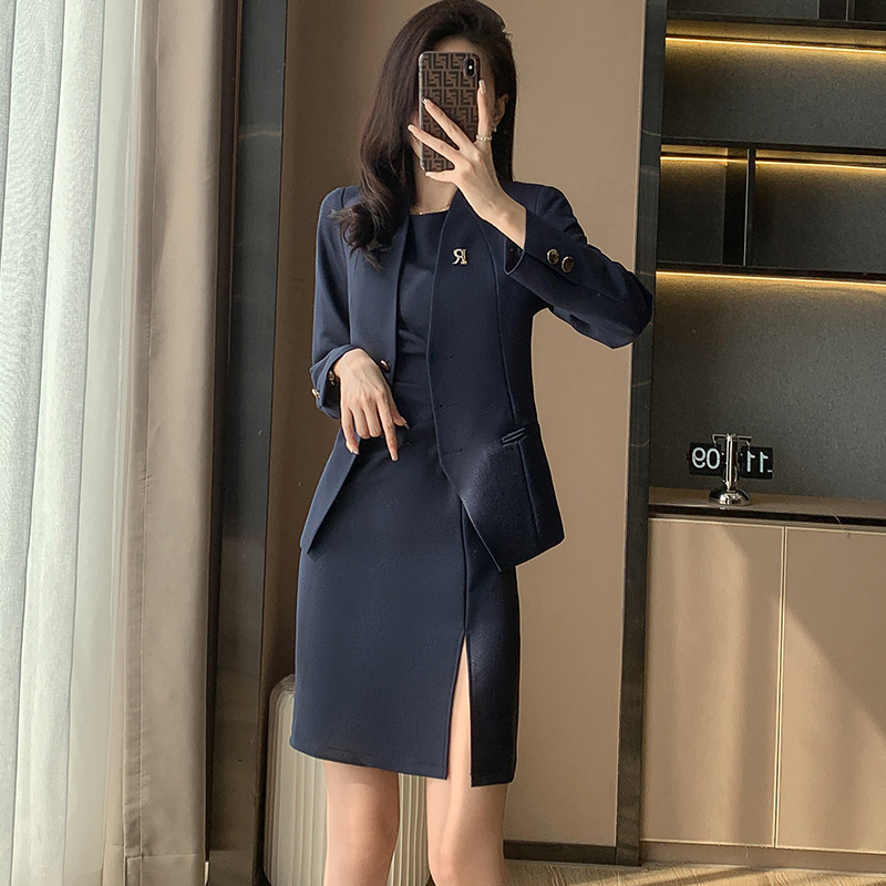 高端名媛OL职业套装女气质女神范西装连衣裙两件套酒店珠宝店工装