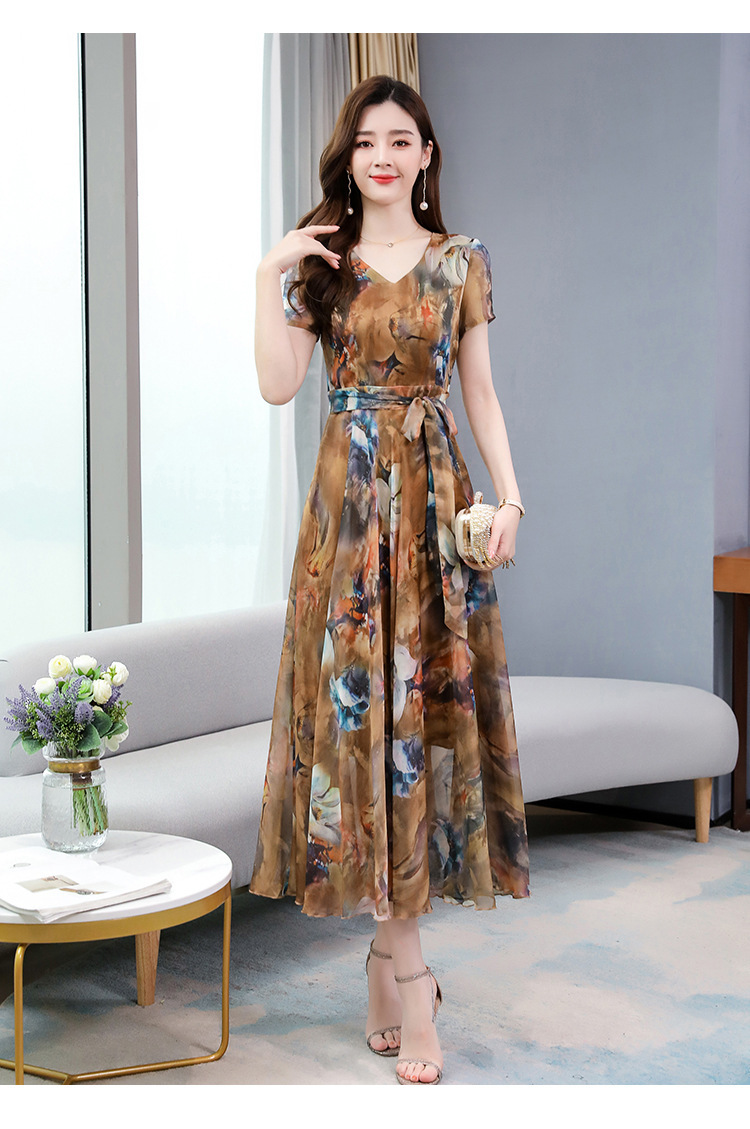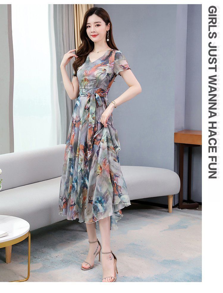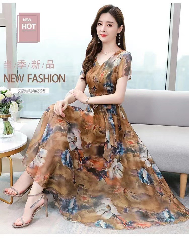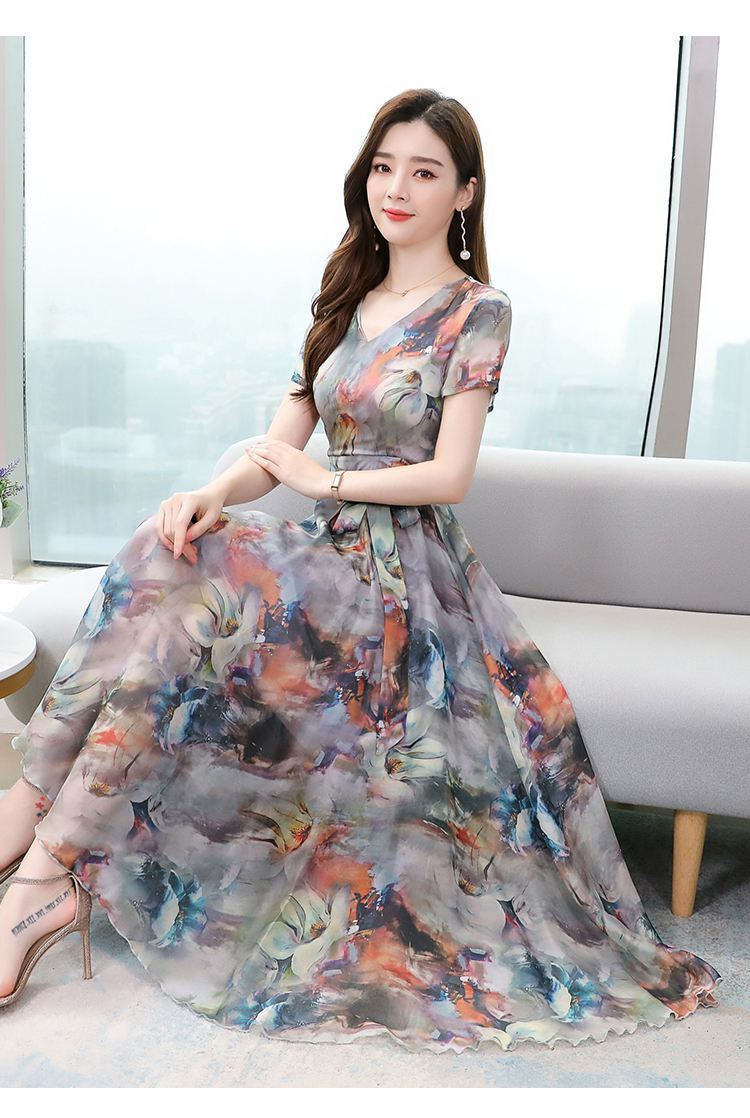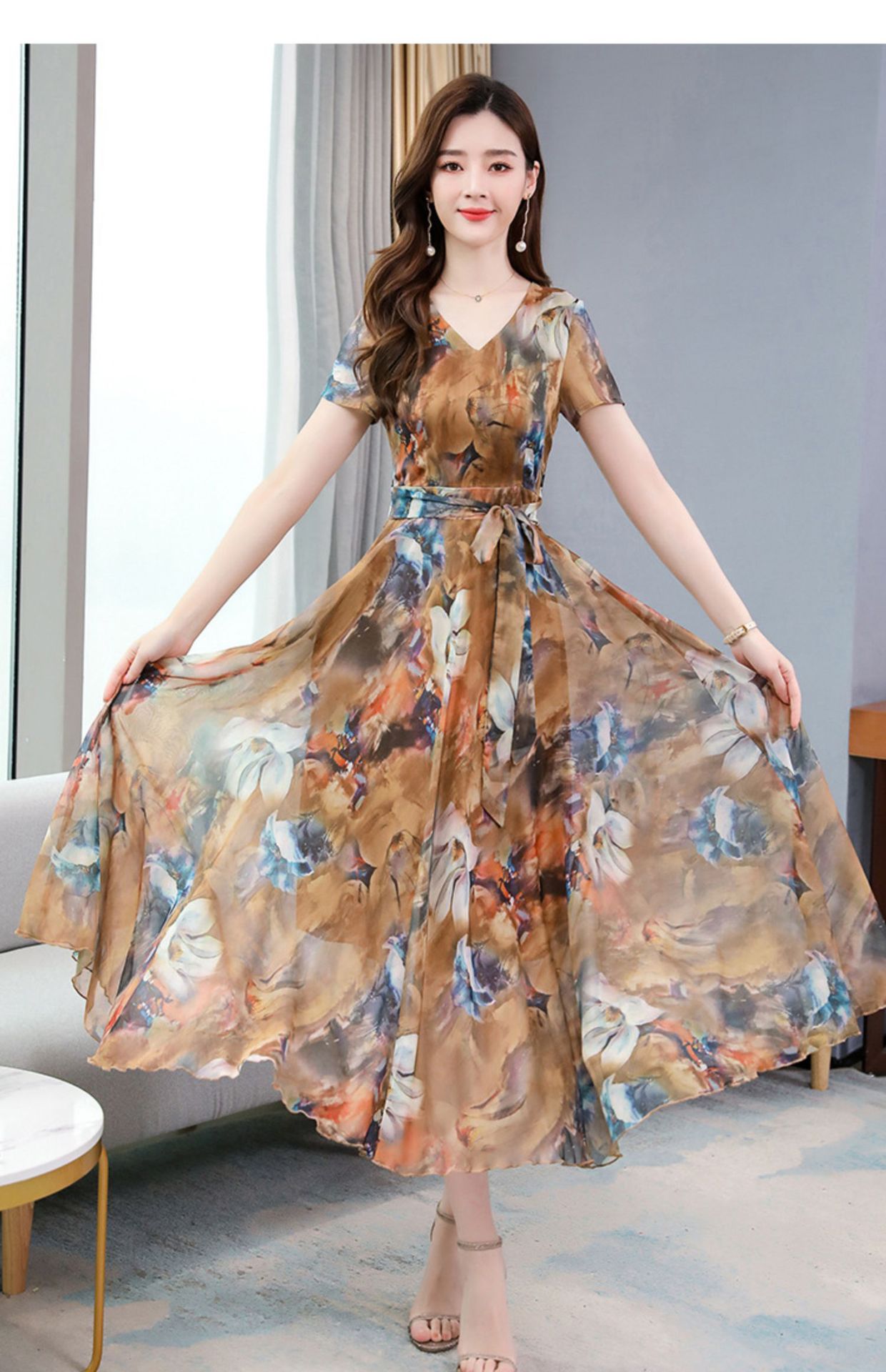 2024年新款夏天法式复古连衣裙夏显瘦碎花仿冰丝大摆沙滩长裙子潮