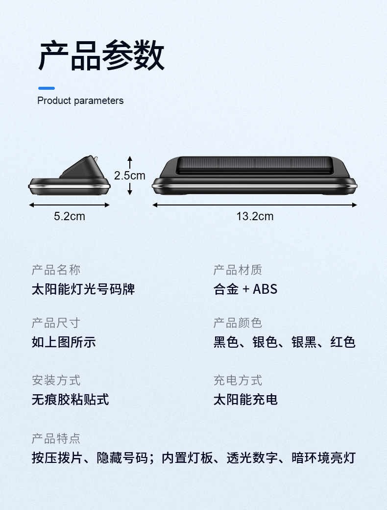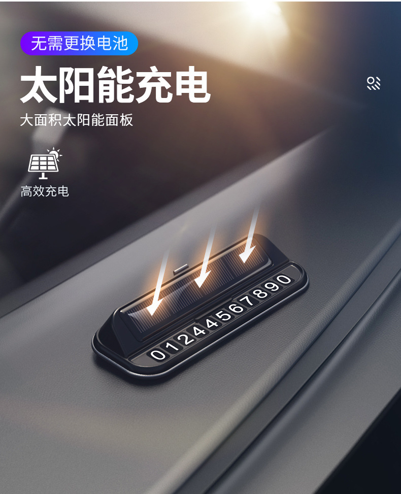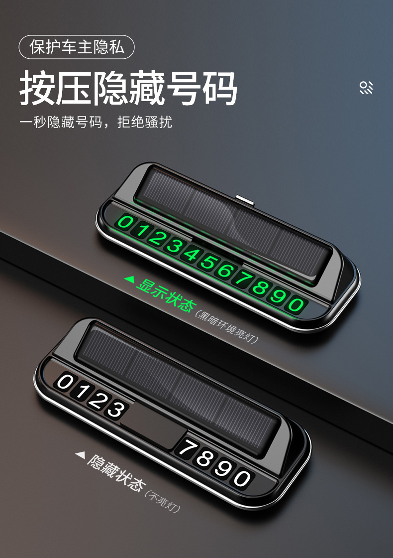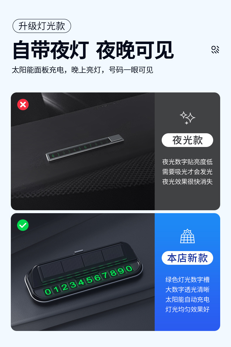 车载临时停车牌金属太阳能LED发光电话号码夜光挪车电话卡