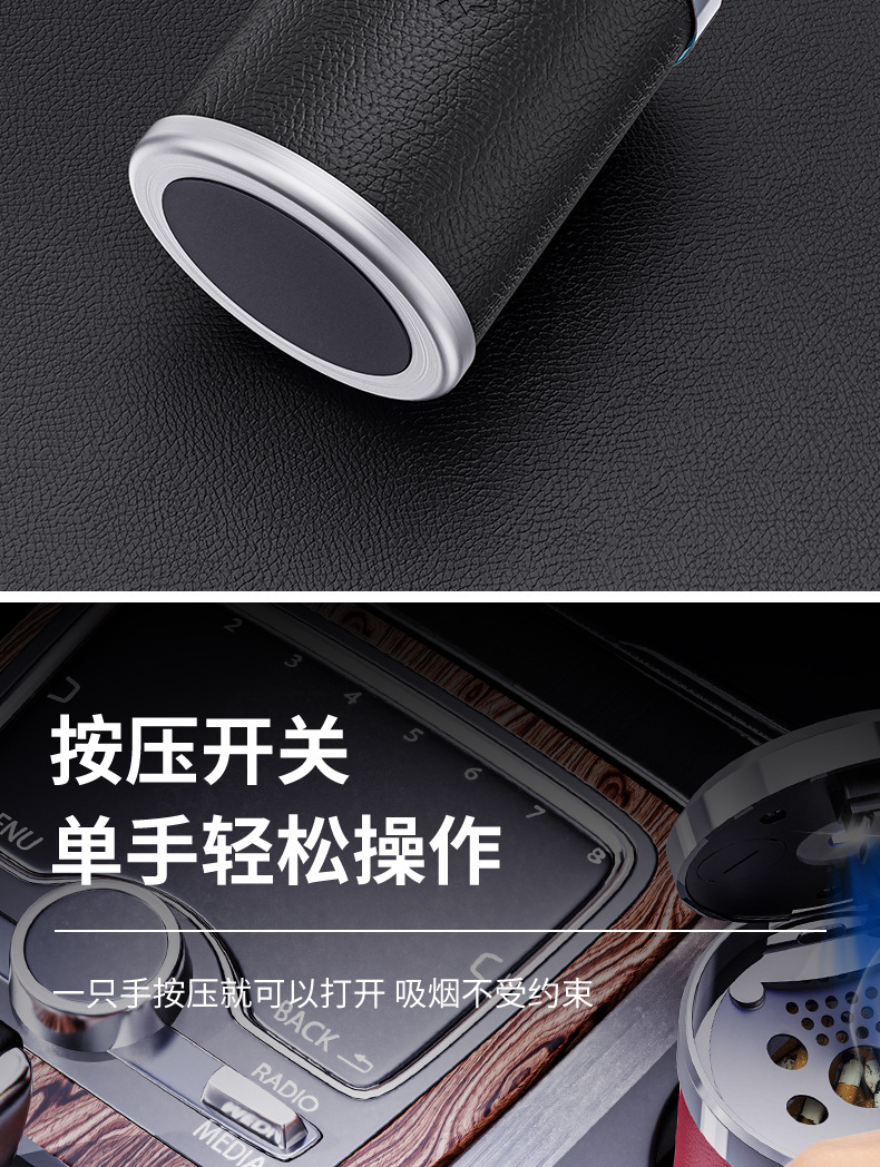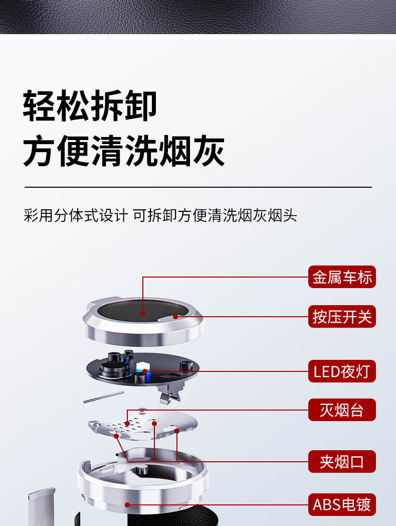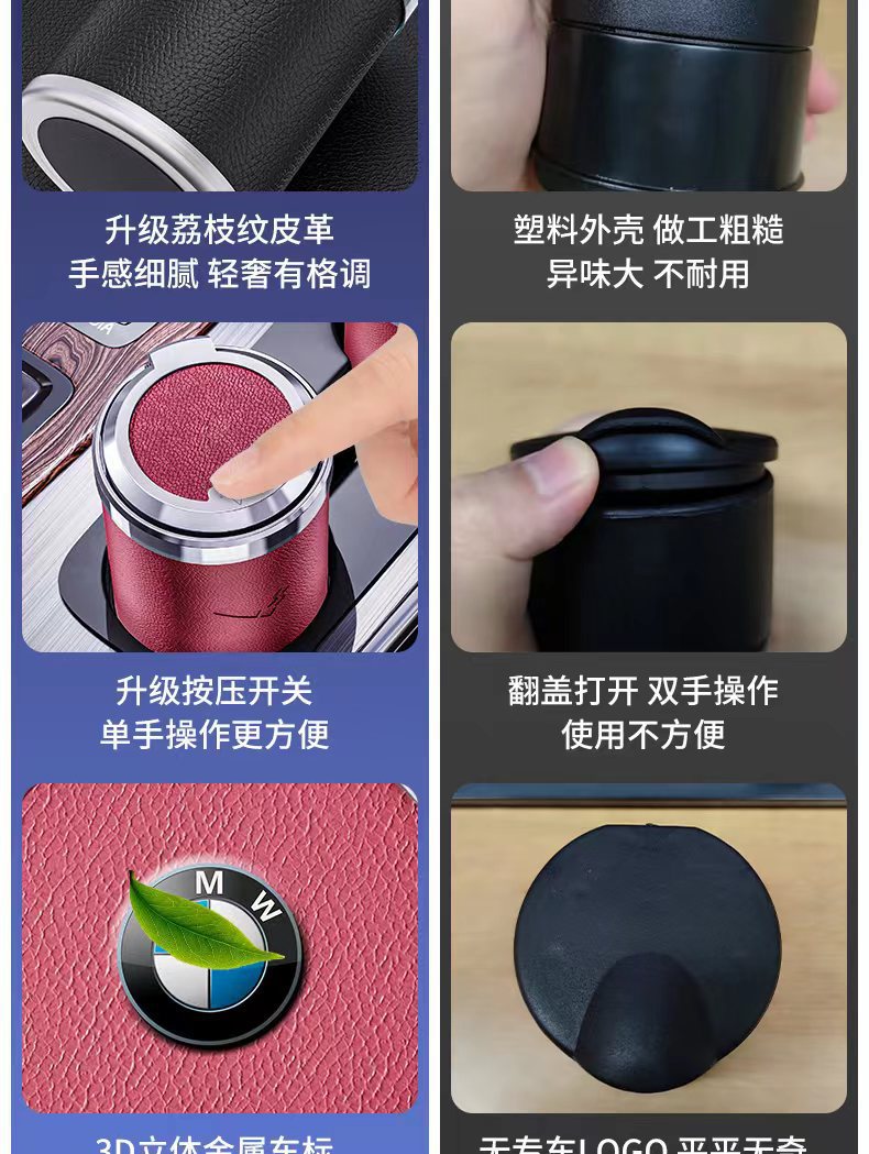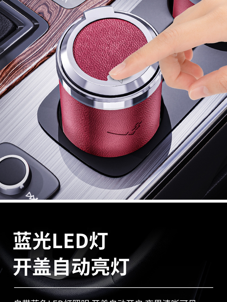 汽车烟灰缸创意车用烟灰缸按压夜灯智能车载烟灰缸3D立体金属车标