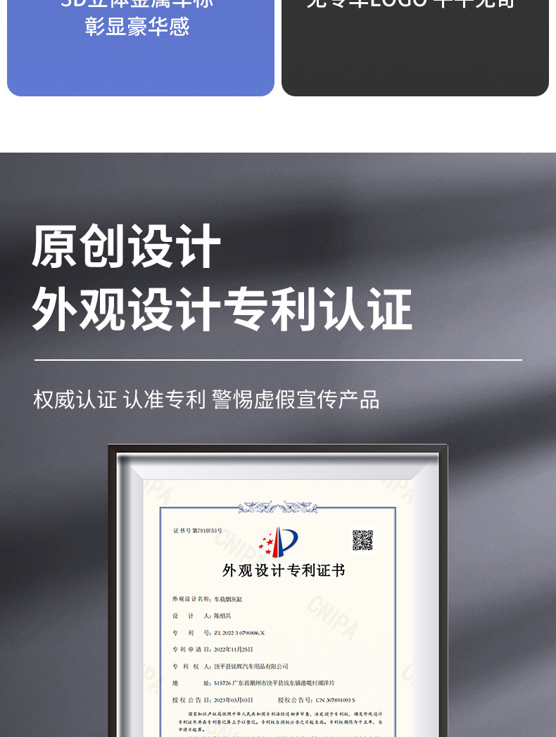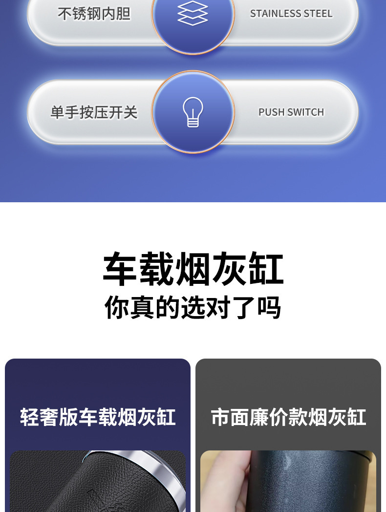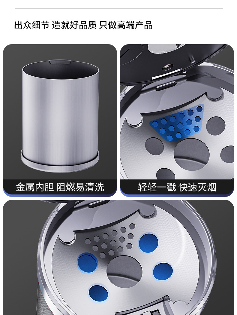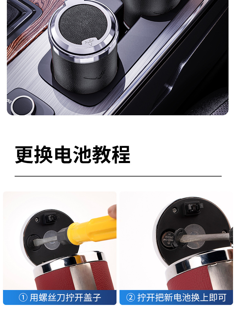 汽车烟灰缸创意车用烟灰缸按压夜灯智能车载烟灰缸3D立体金属车标