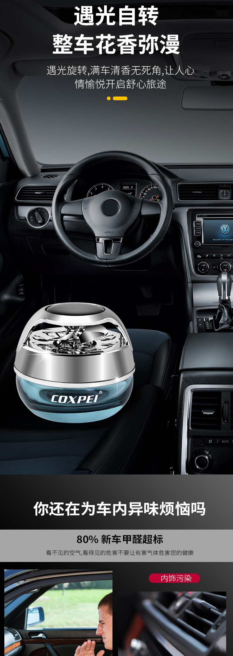 外贸新款车载香薰汽车内香水太阳能旋转摆件持久淡香氛高档男女士