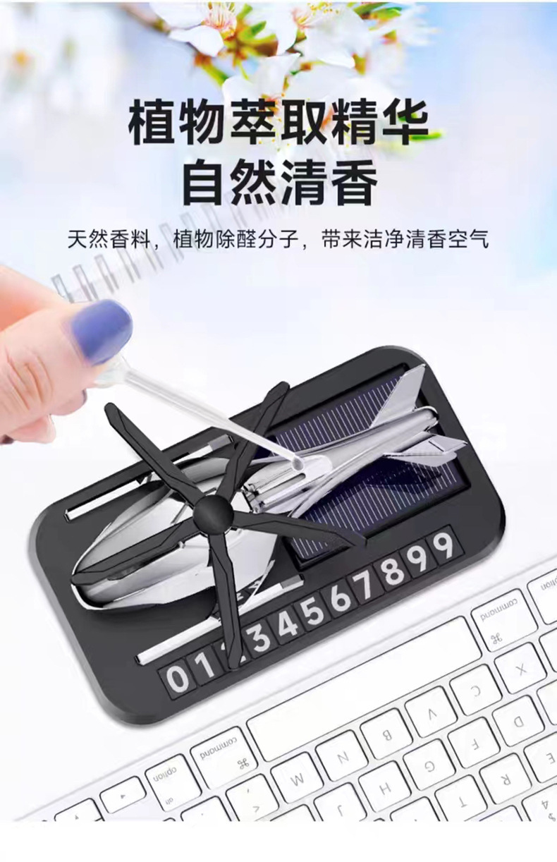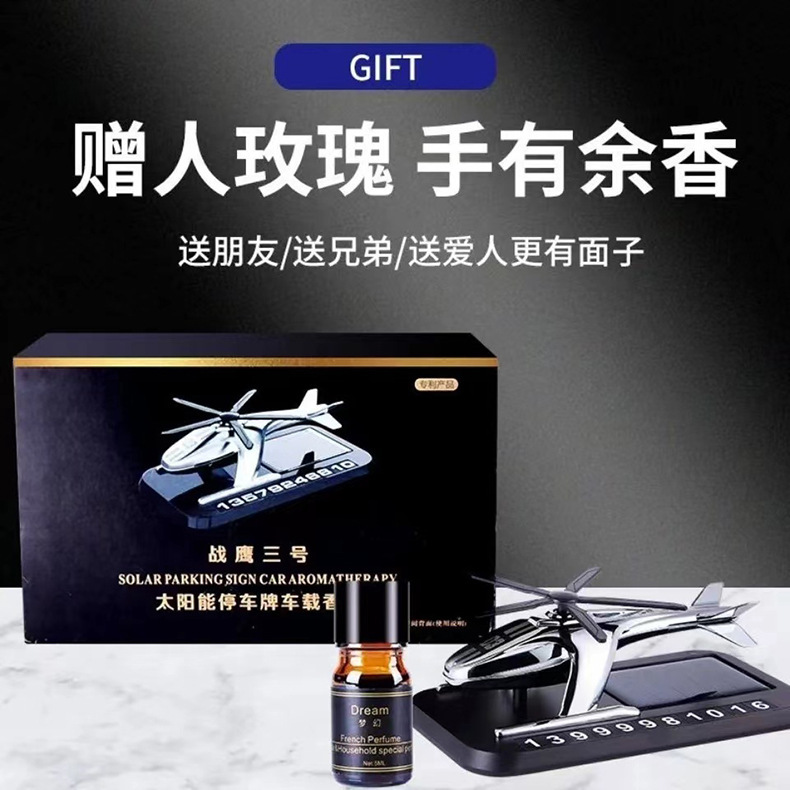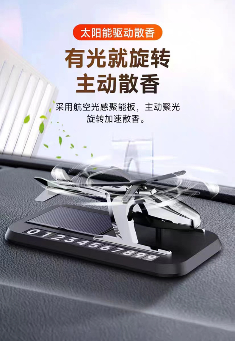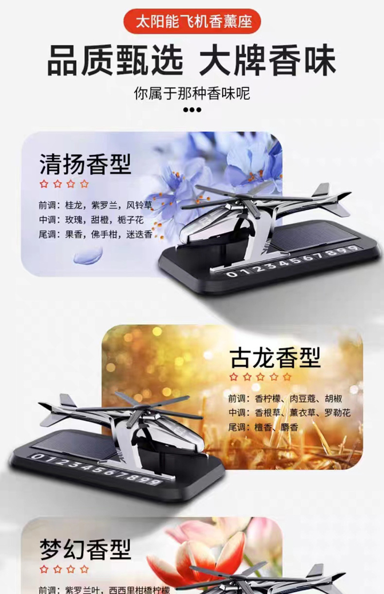 太阳能飞机车载香薰汽车香水摆件直升机创意停车牌挪车战斗机香氛