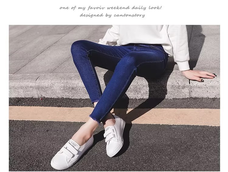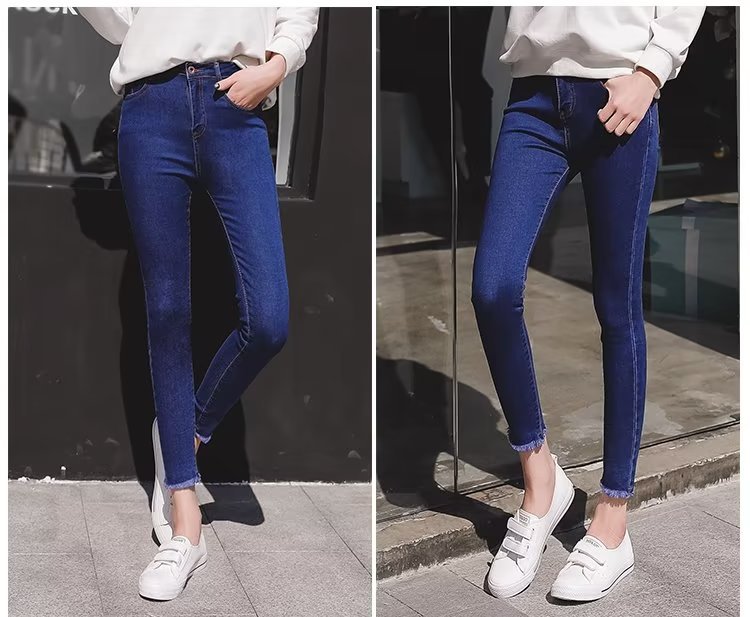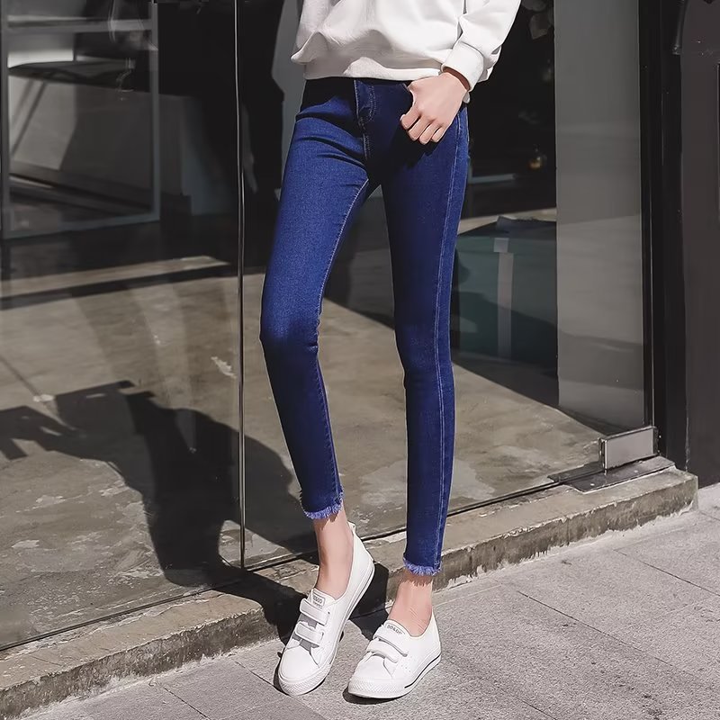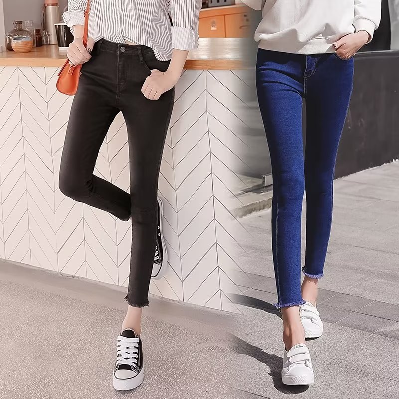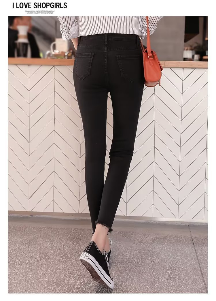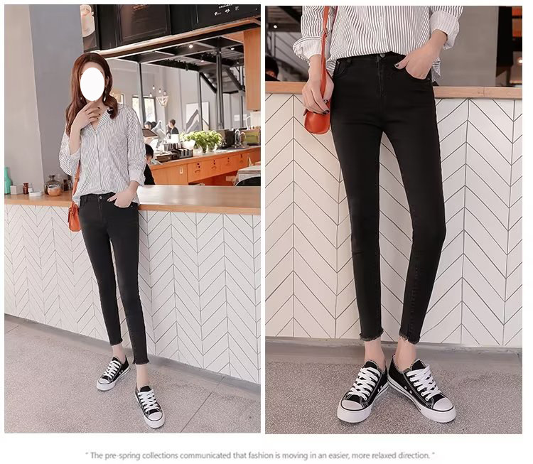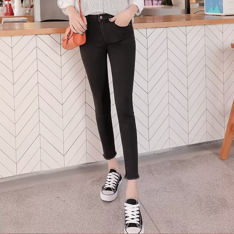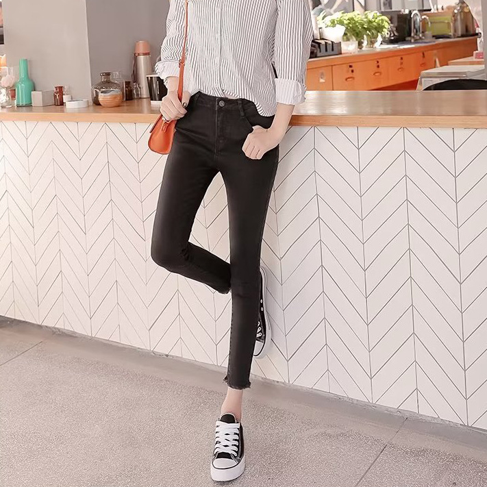韩版简约紧身牛仔裤裤女秋季外穿2023新款高腰小个子黑色铅笔小脚