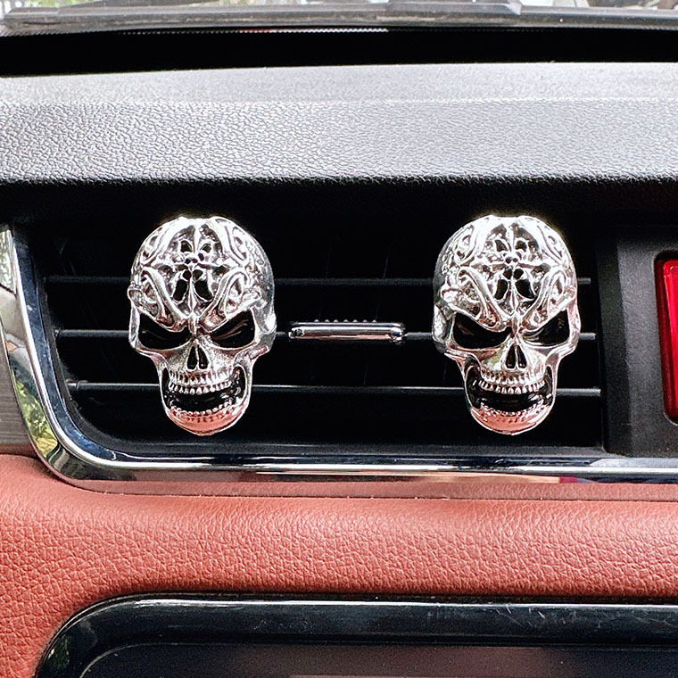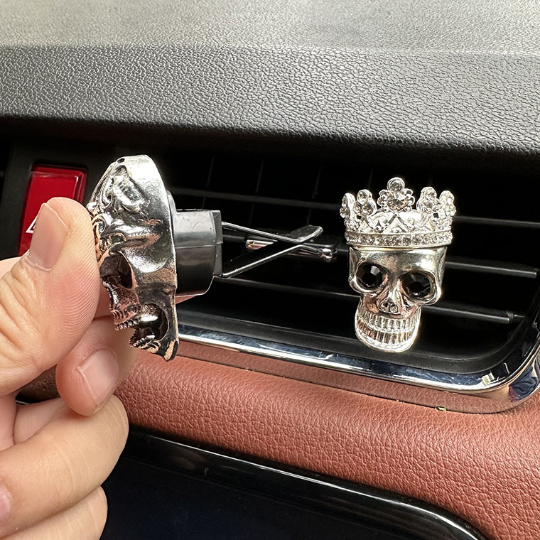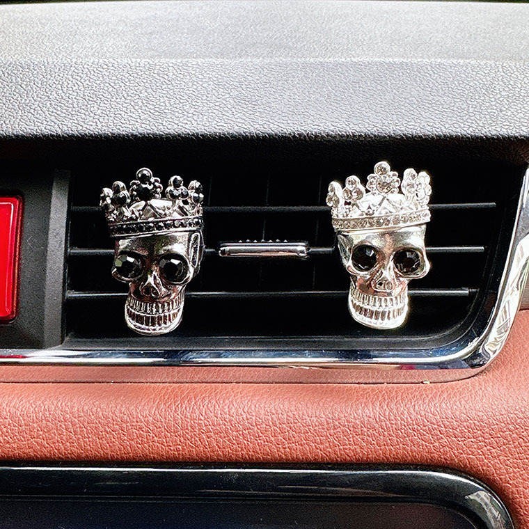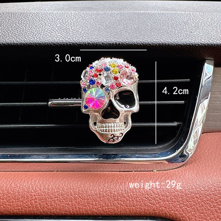 汽车出风口装饰品车载空调风口香水夹香氛可爱鬼头骷髅头滴油镶钻