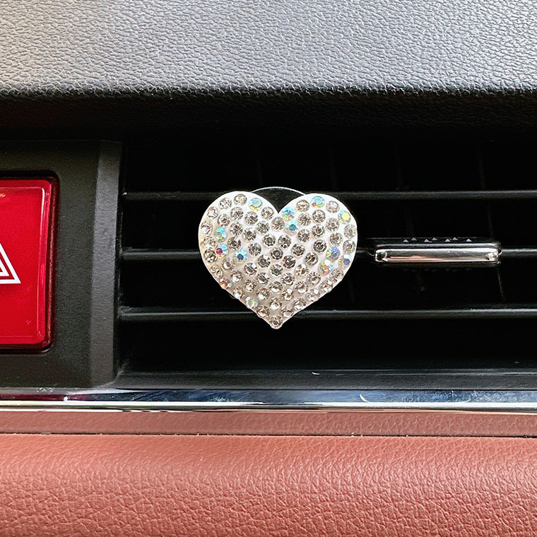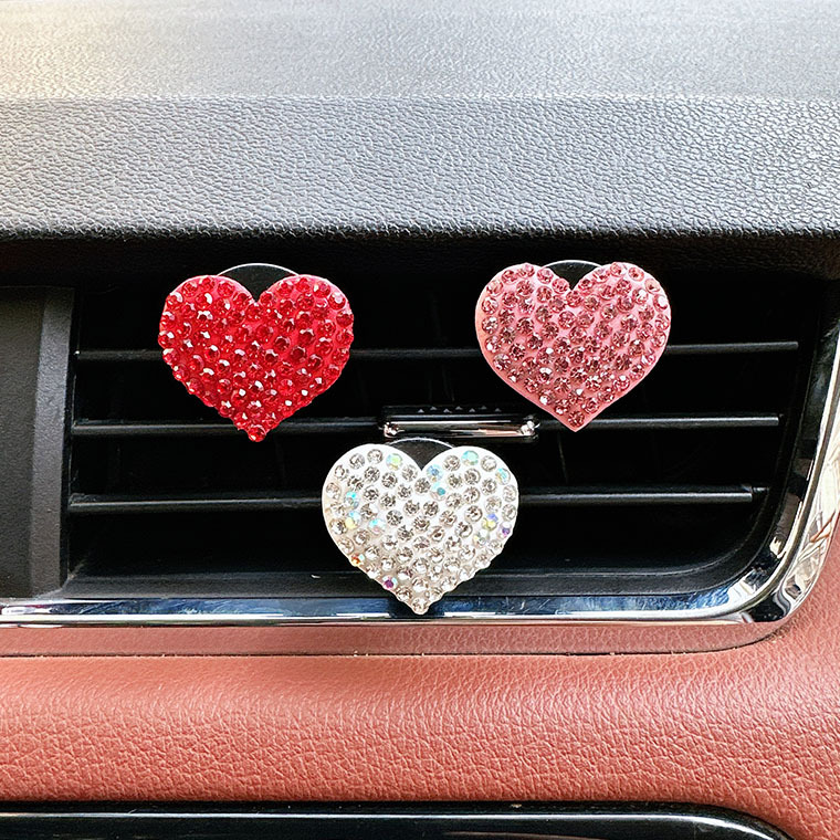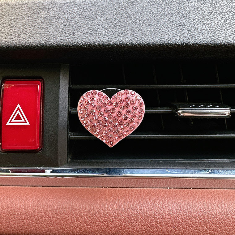爱心满钻可爱汽车出风口装饰品香水夹香薰夹树脂桃心欧美跨境贸易