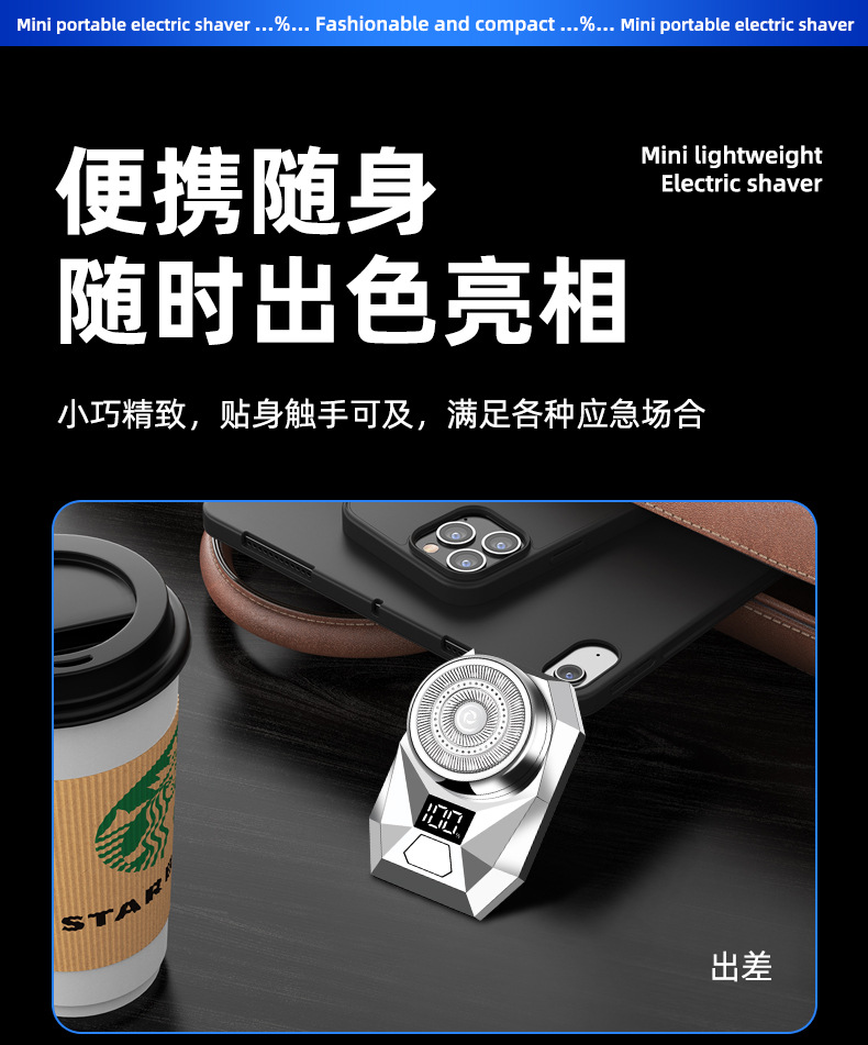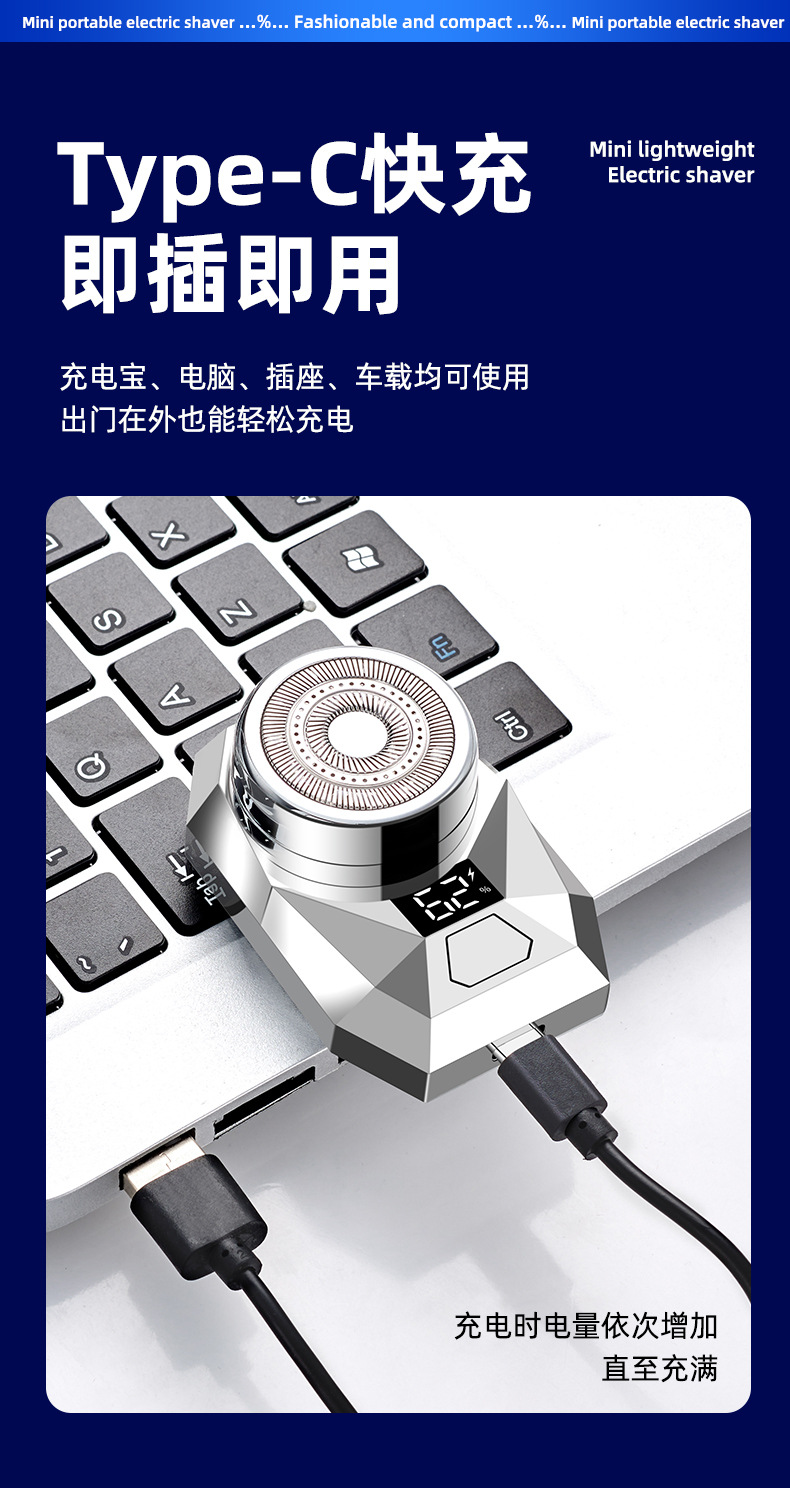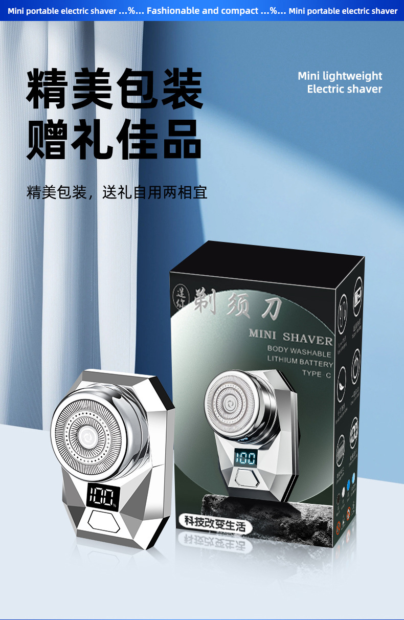 MINI剃须刀电量显示电动刮胡刀便携充电式男士旅行车载胡须刀送礼