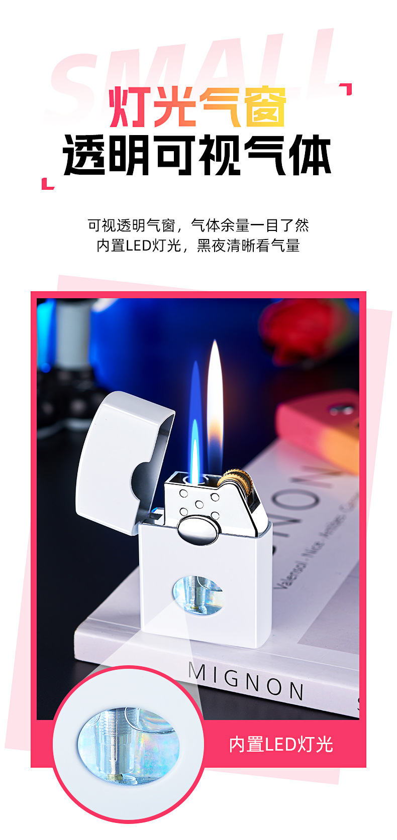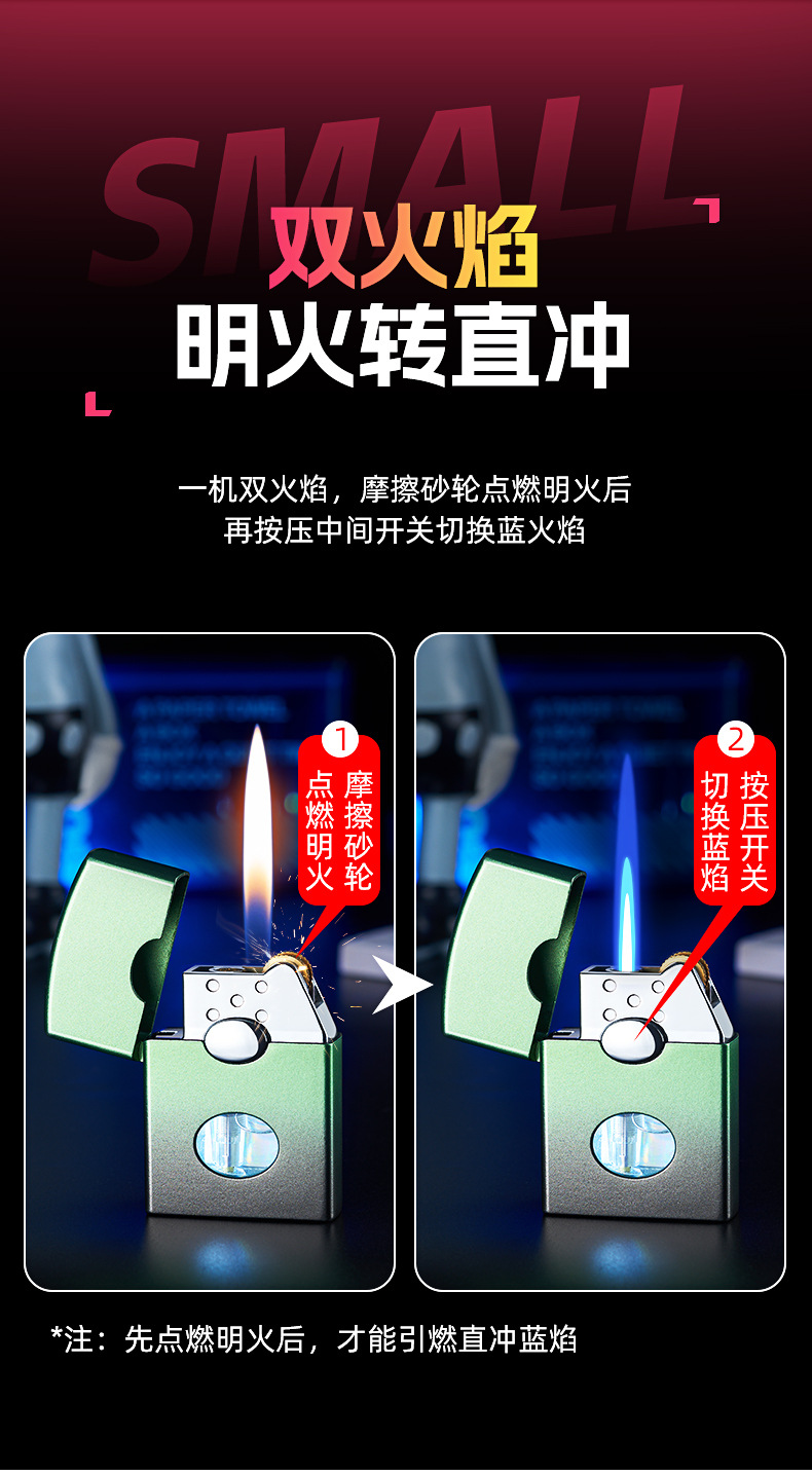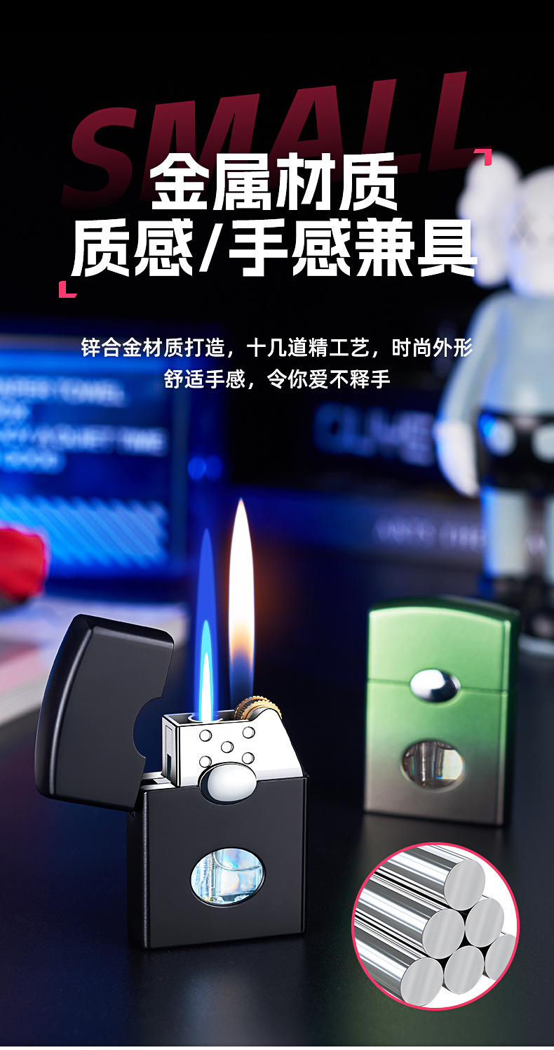 金属打火机批发直冲明火双火切换点火可视窗带灯刻字送男友礼盒