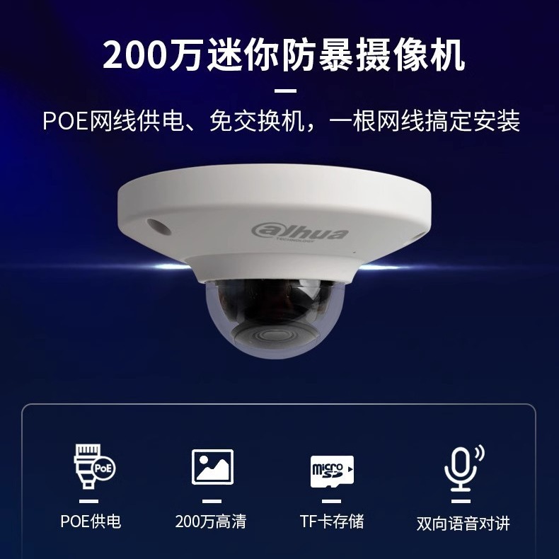 大华200万电梯监控飞碟半球网络高清摄像机语音广播HDP2230DC-ST