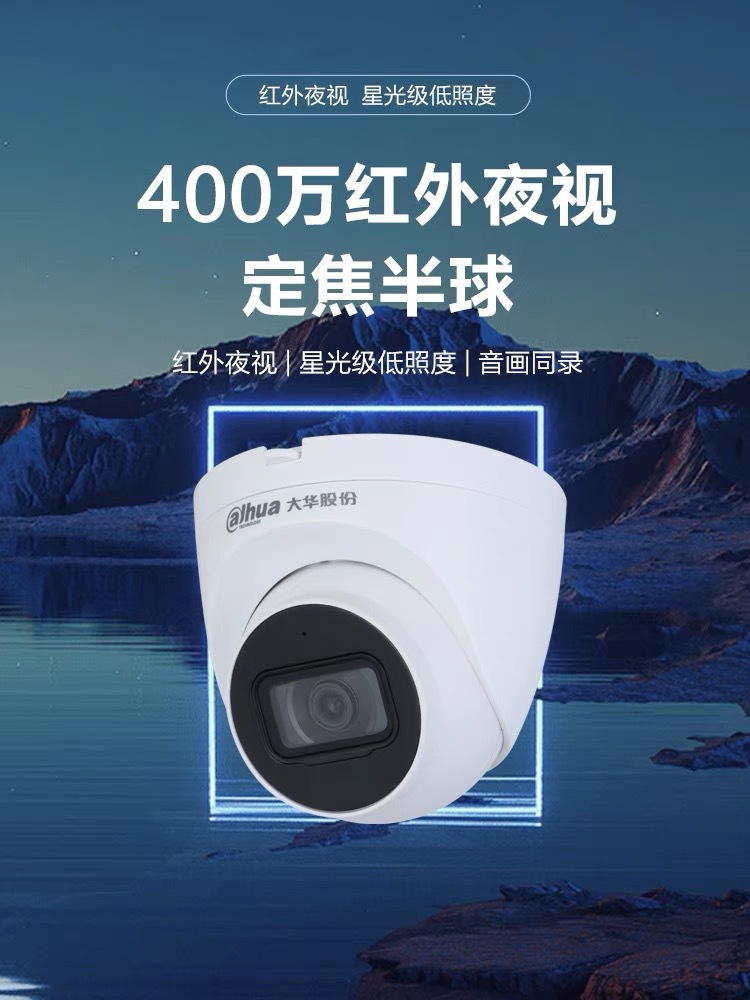 大华400万像素视频监控器星光红外定焦海螺网络摄像机HDW2433T