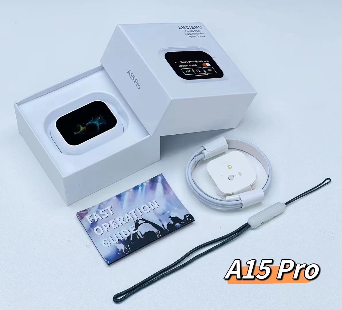 A15 Pro 跨境新款无线蓝牙耳机智能屏TWS降噪商务游戏通话入耳式