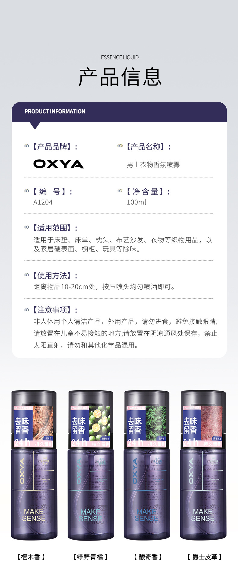 OXYA男士衣香喷雾除味淡香持久留香清新去除异味男士香水厂家代发