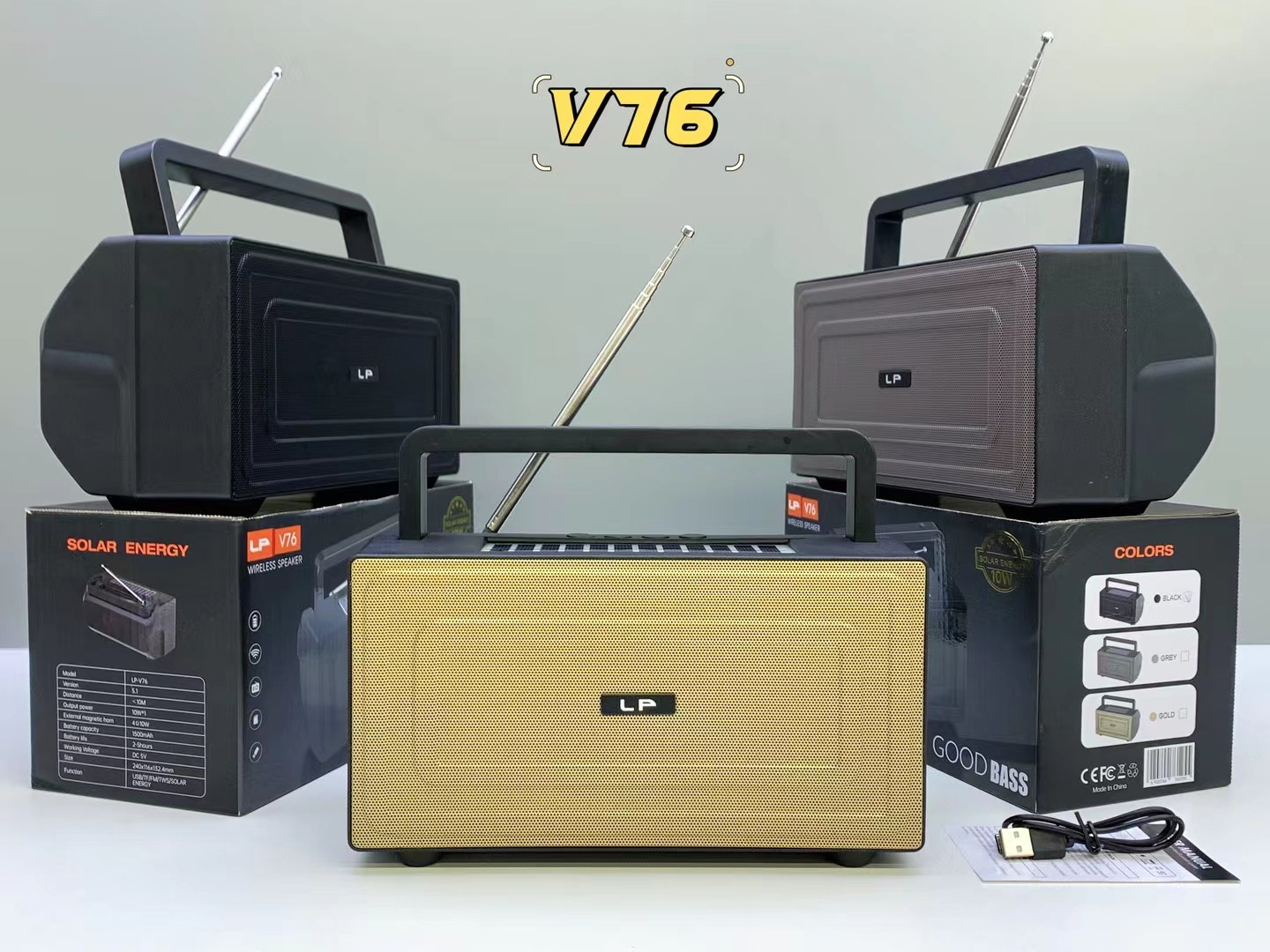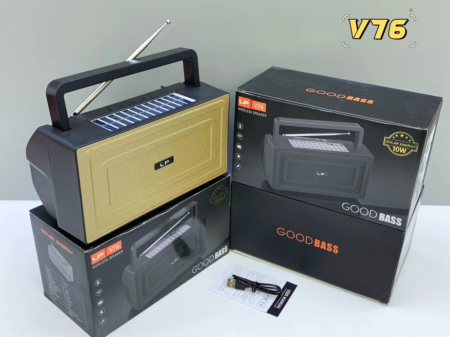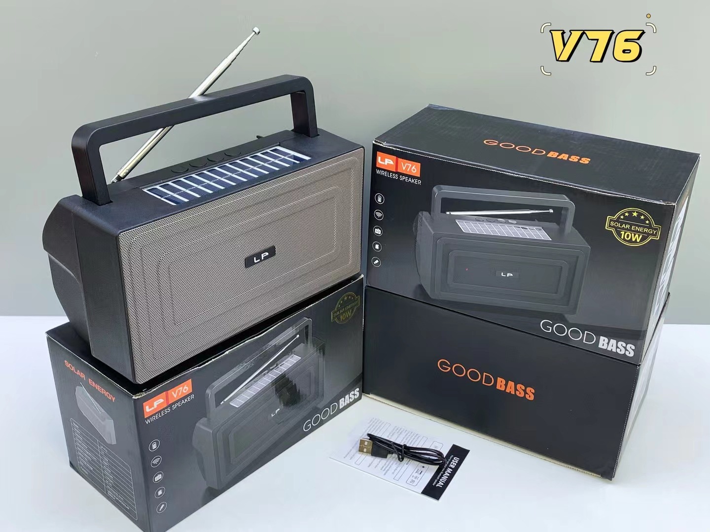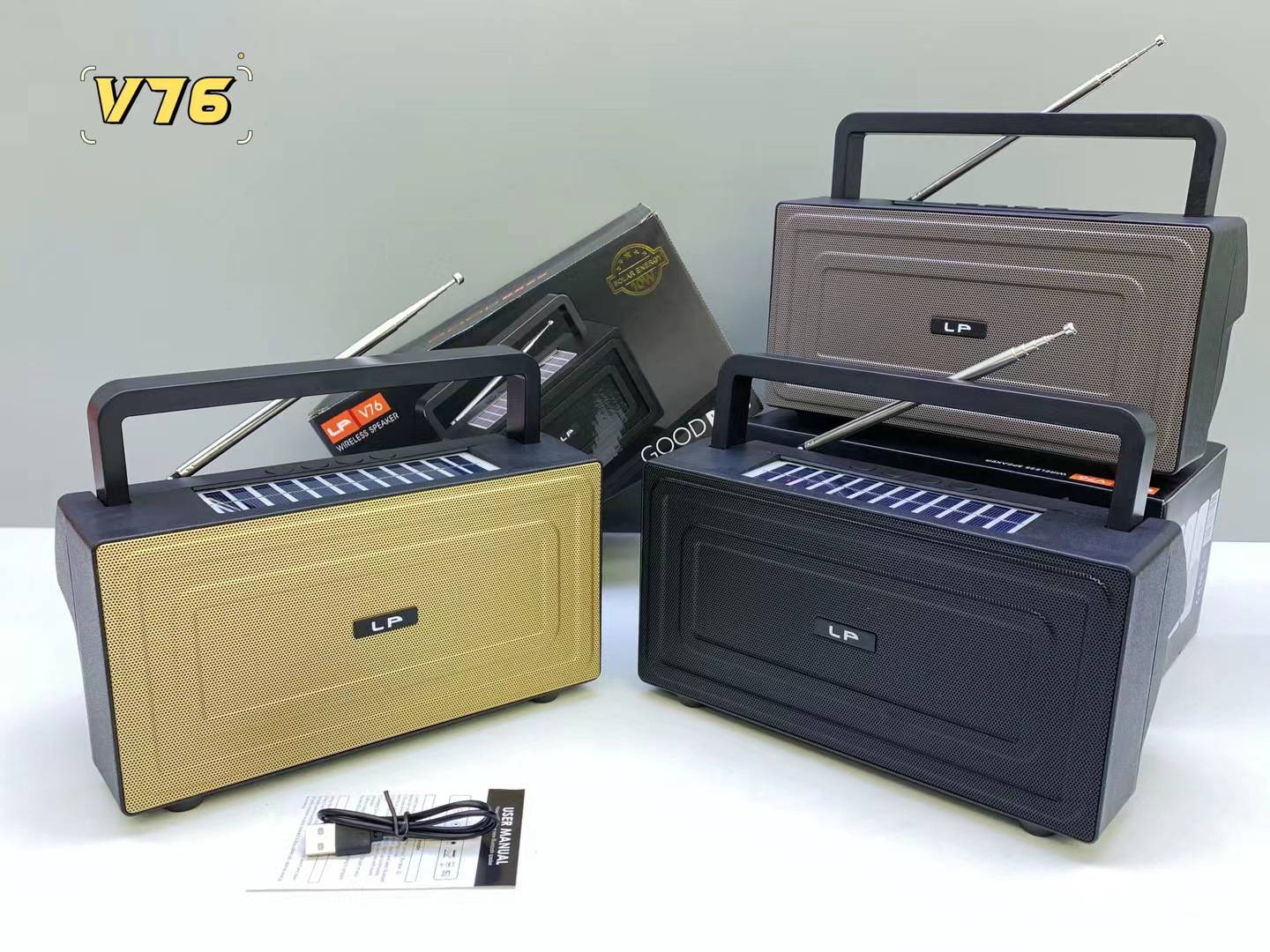 LP-V76跨境无线蓝牙音箱户外收音手提大功率重低音炮便携插卡音响