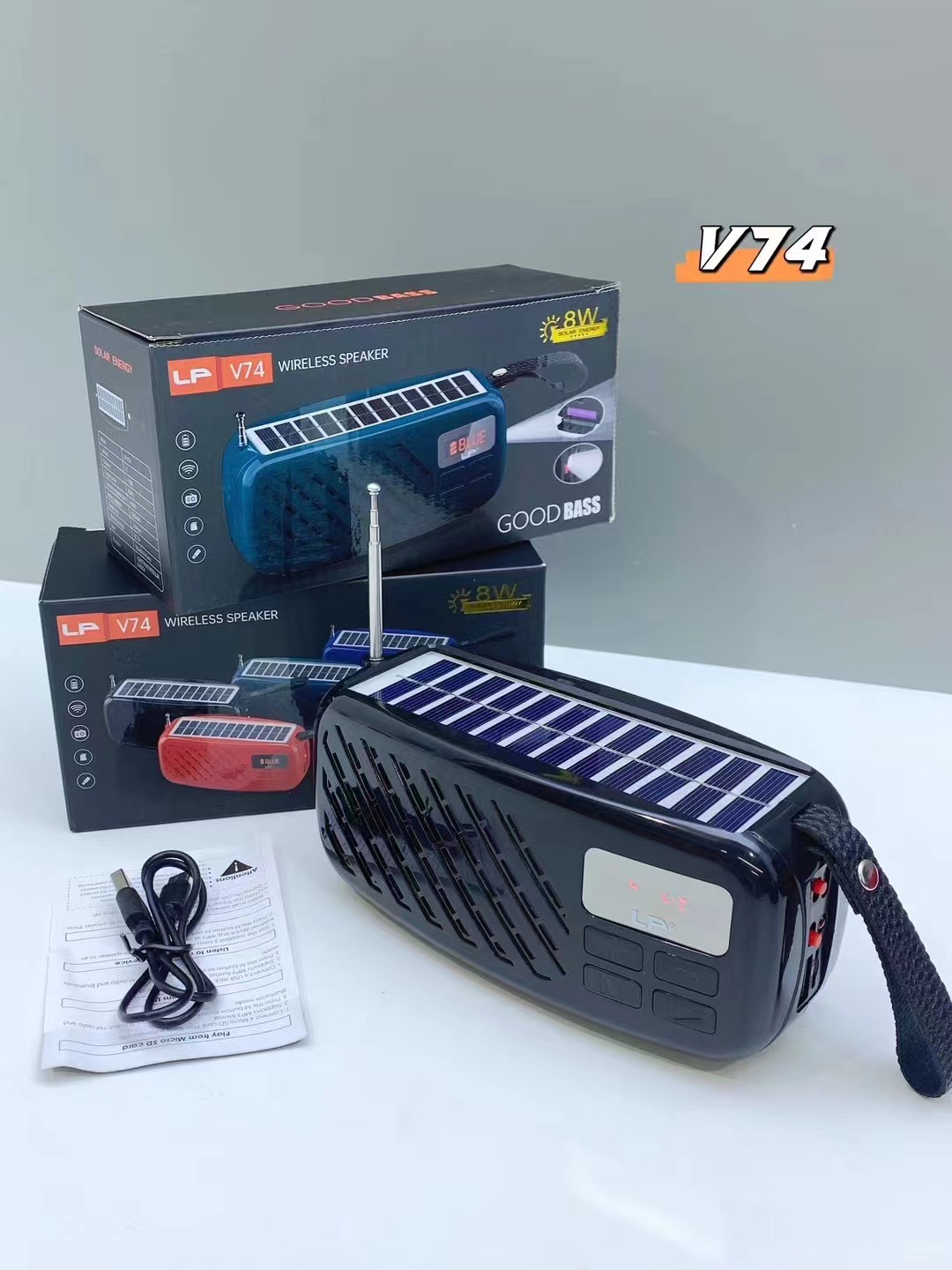 LP-V74 新款无线蓝牙音箱户外便携手提太阳能FM收音机插卡USB音响